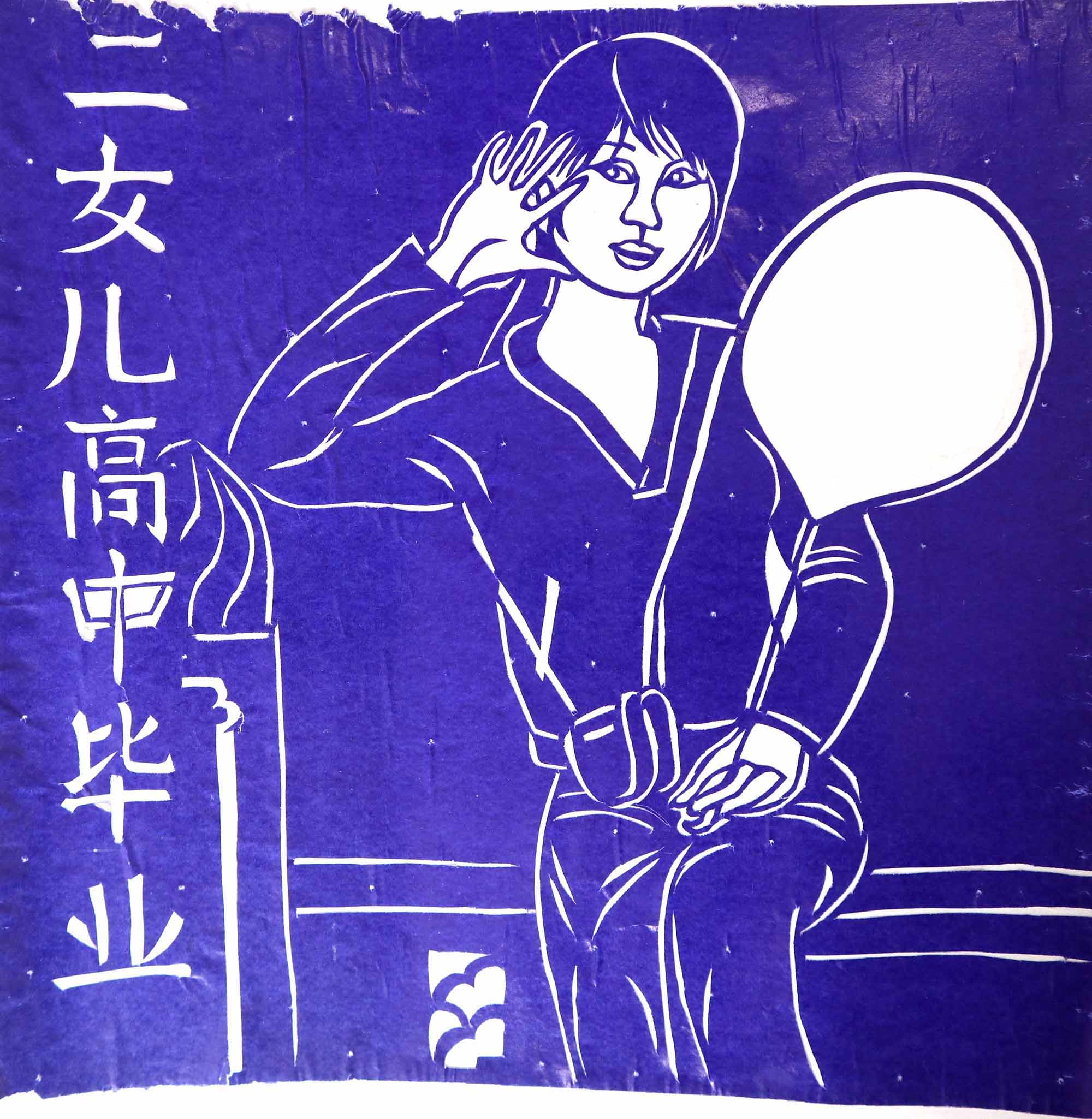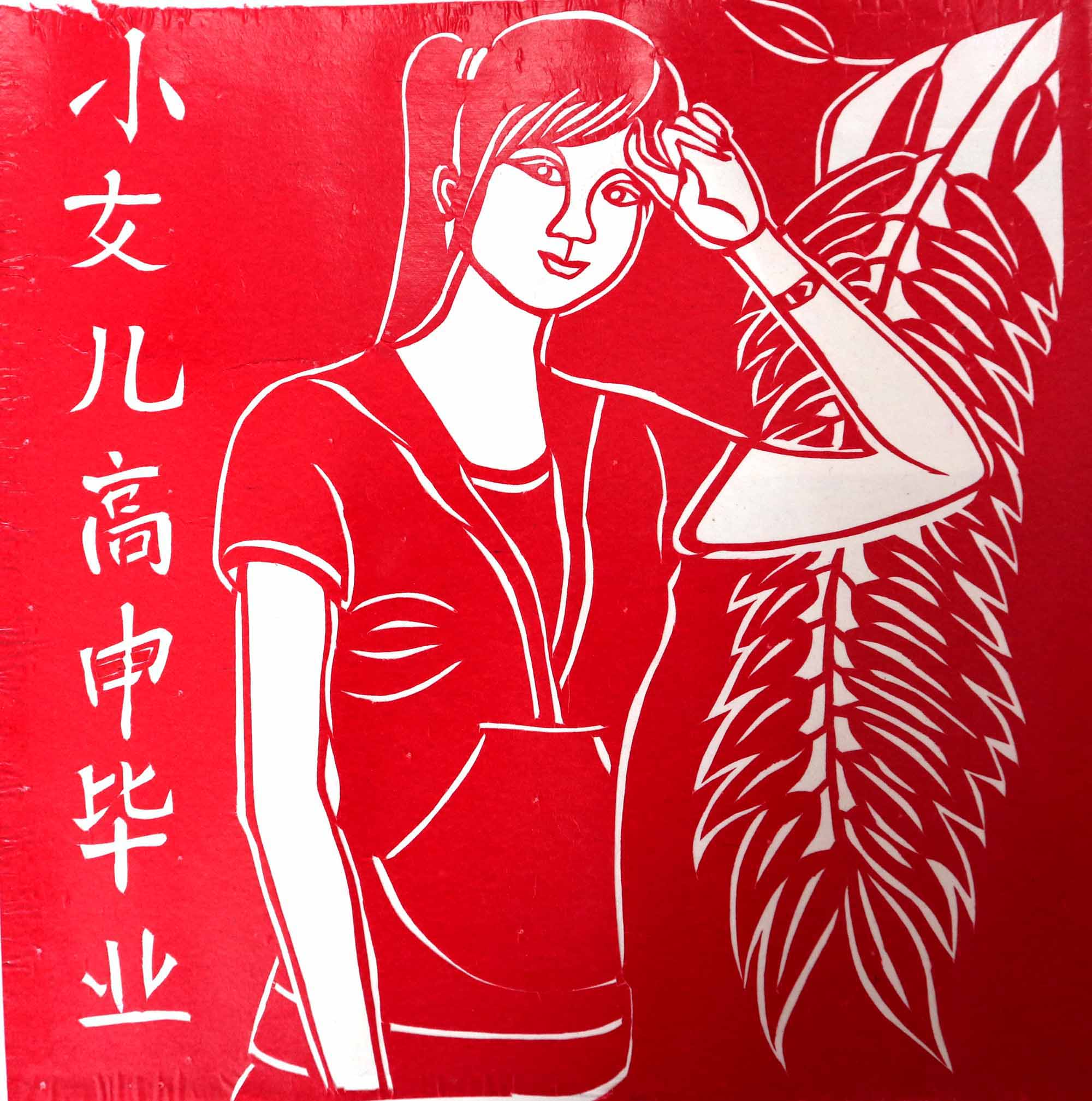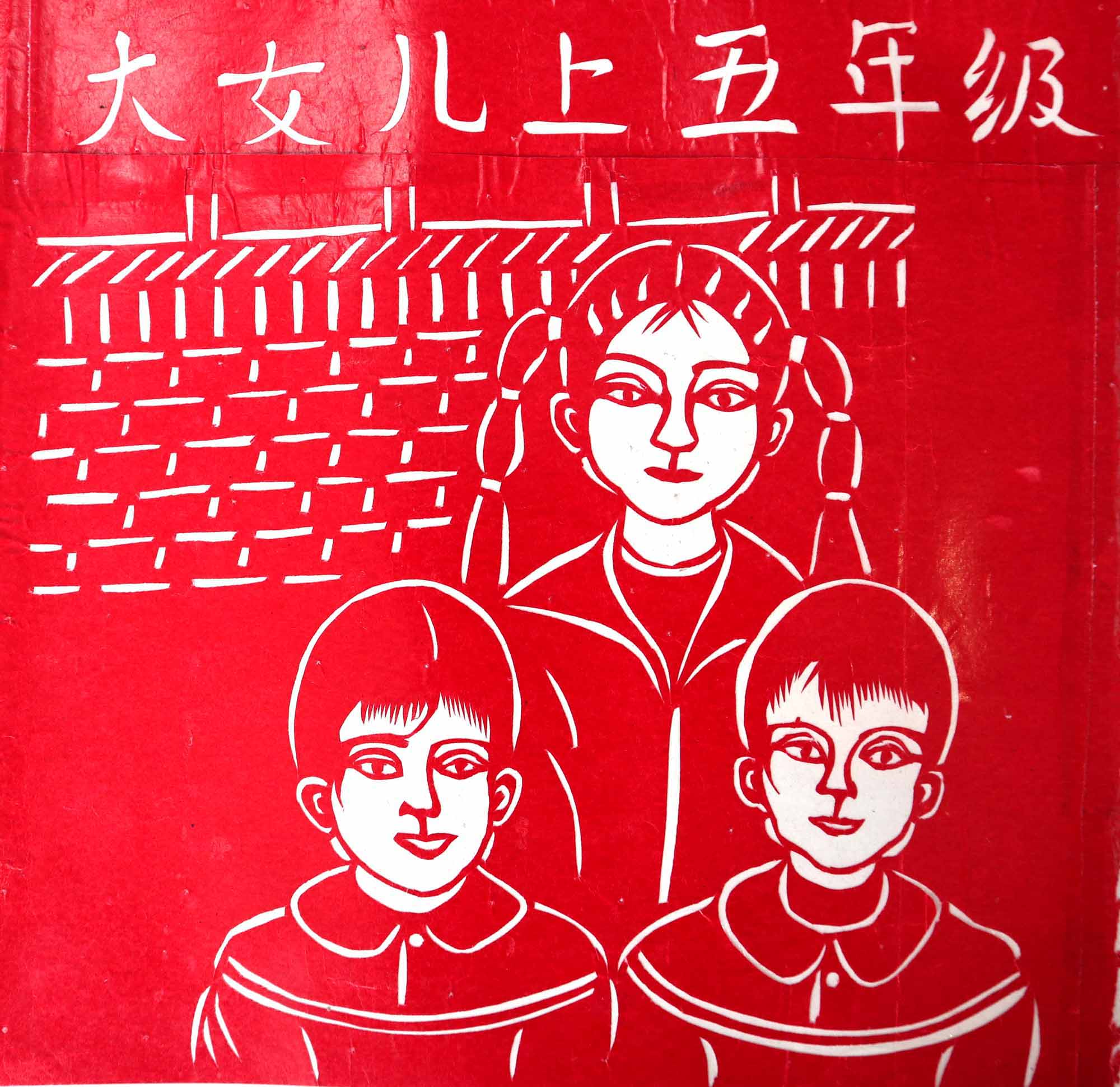 陆桂梅,女,1966年3月19日生,汉族,初中文化程度,农民。丈夫袁新亮喜爱书法摄影,春节期间常为村民写春联。陆桂梅从小看见母亲剪花,比较喜欢,但她觉得母亲剪得较传统,不像书中画的那么具像。而她喜欢剪形似的,见母亲剪的太传统,就想着给母亲改,改得要像真花真叶。刚开始学习剪窗花是拓着样子剪,用灯熏样,用纸钉订在一起照着剜。陆桂梅在学校喜爱画画,常在作业本子上画同学的背影、画蝴蝶、花草等。初中时学校都知道她能画能剪,上学期间学校办黑板报、学习专栏就让她剪花边、画报头。到后来学会了画枕顶花样,村中的嫂嫂媳妇儿都来找她画,还有十几里外的姑娘找她画。初中毕业时,堂哥结婚用的顶棚花、角花都是她剪的。从这以后她在村里小有名气,村里要结婚的人家都找她剪喜花,一剪就是半夜。那时家里穷,没有多余钱买纸,父亲不太支持,说剪花没有用,耽误时间和学习。但她依然乐于助人,常常在晚上父母休息后才开始剪花。