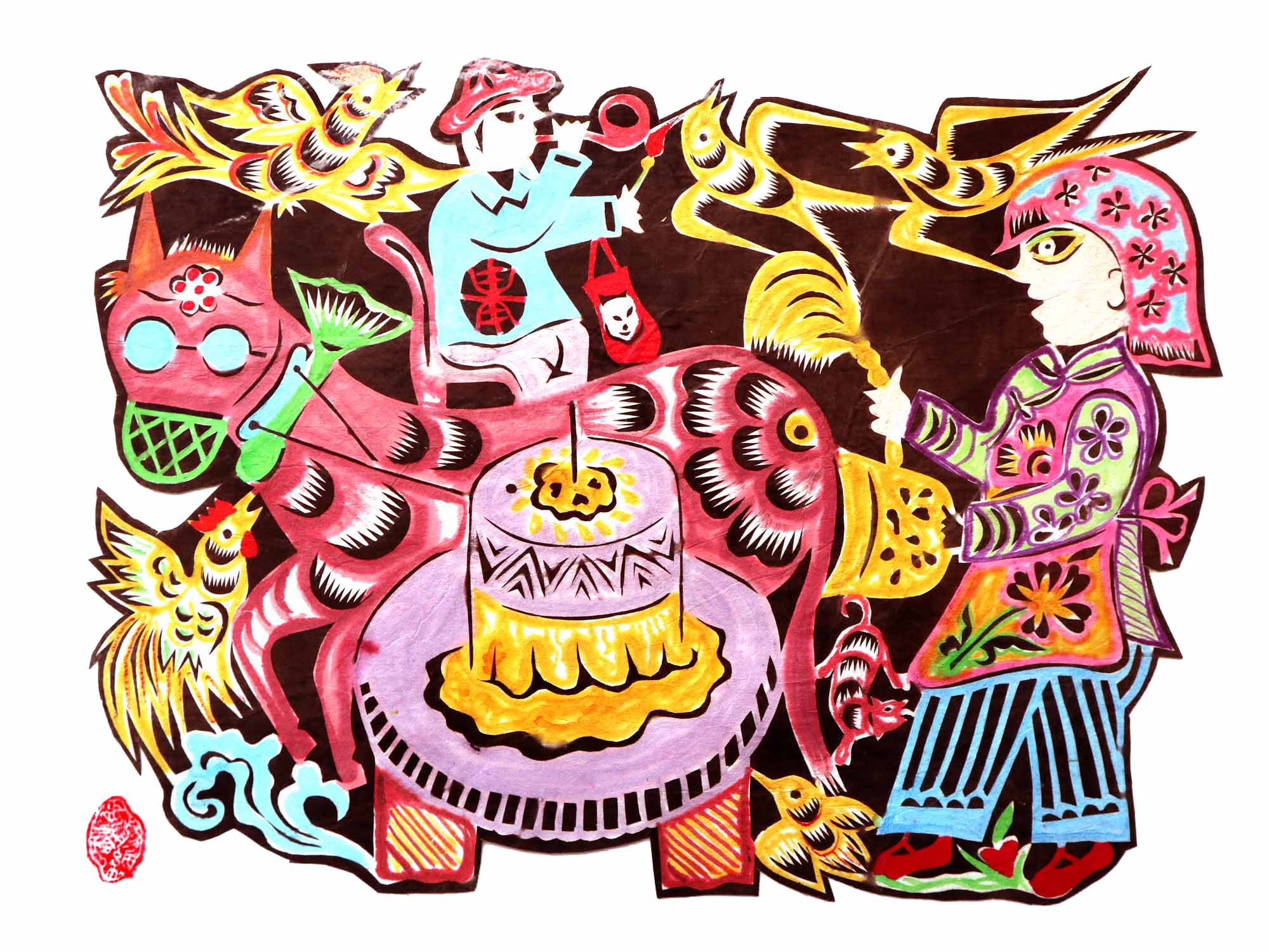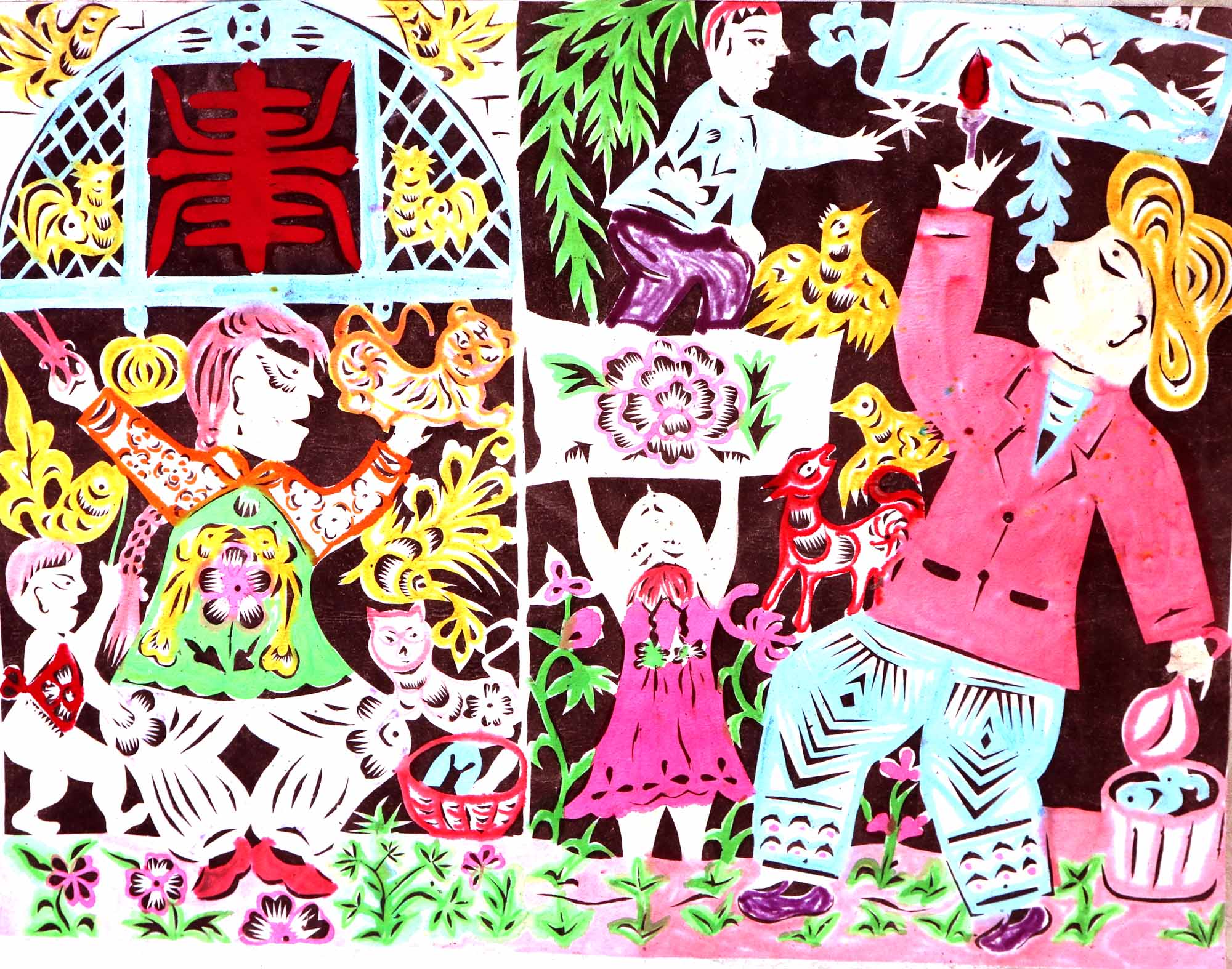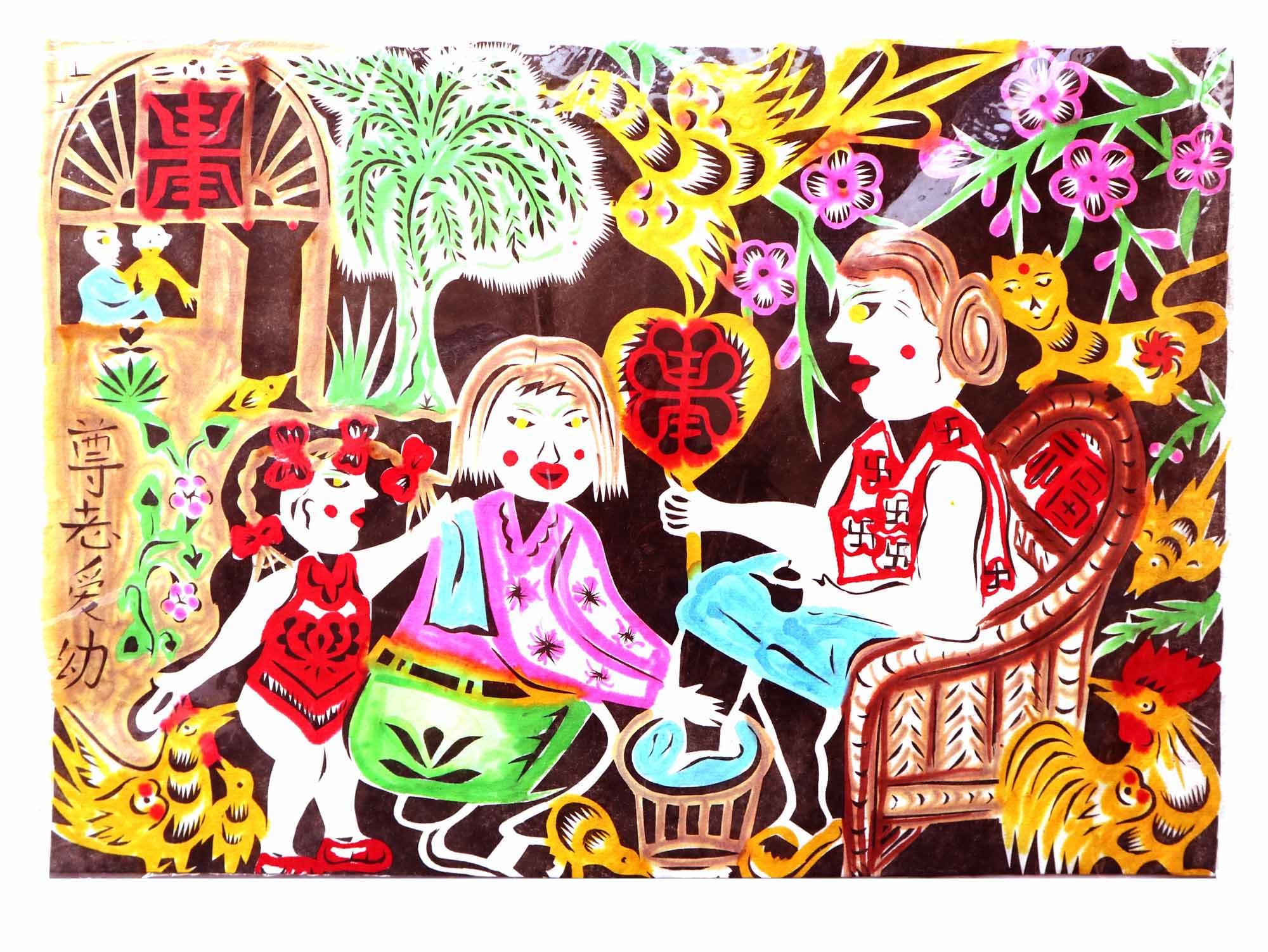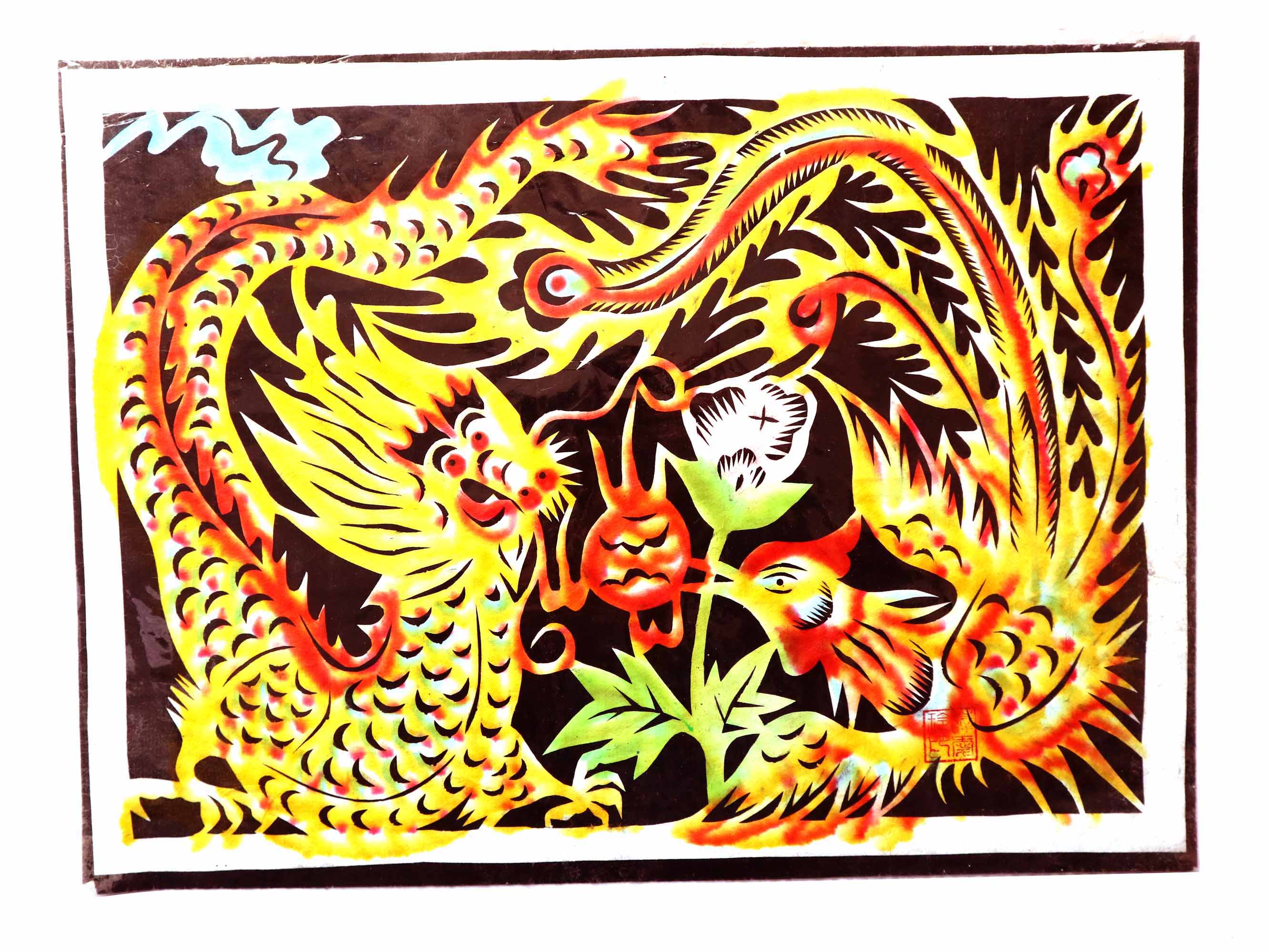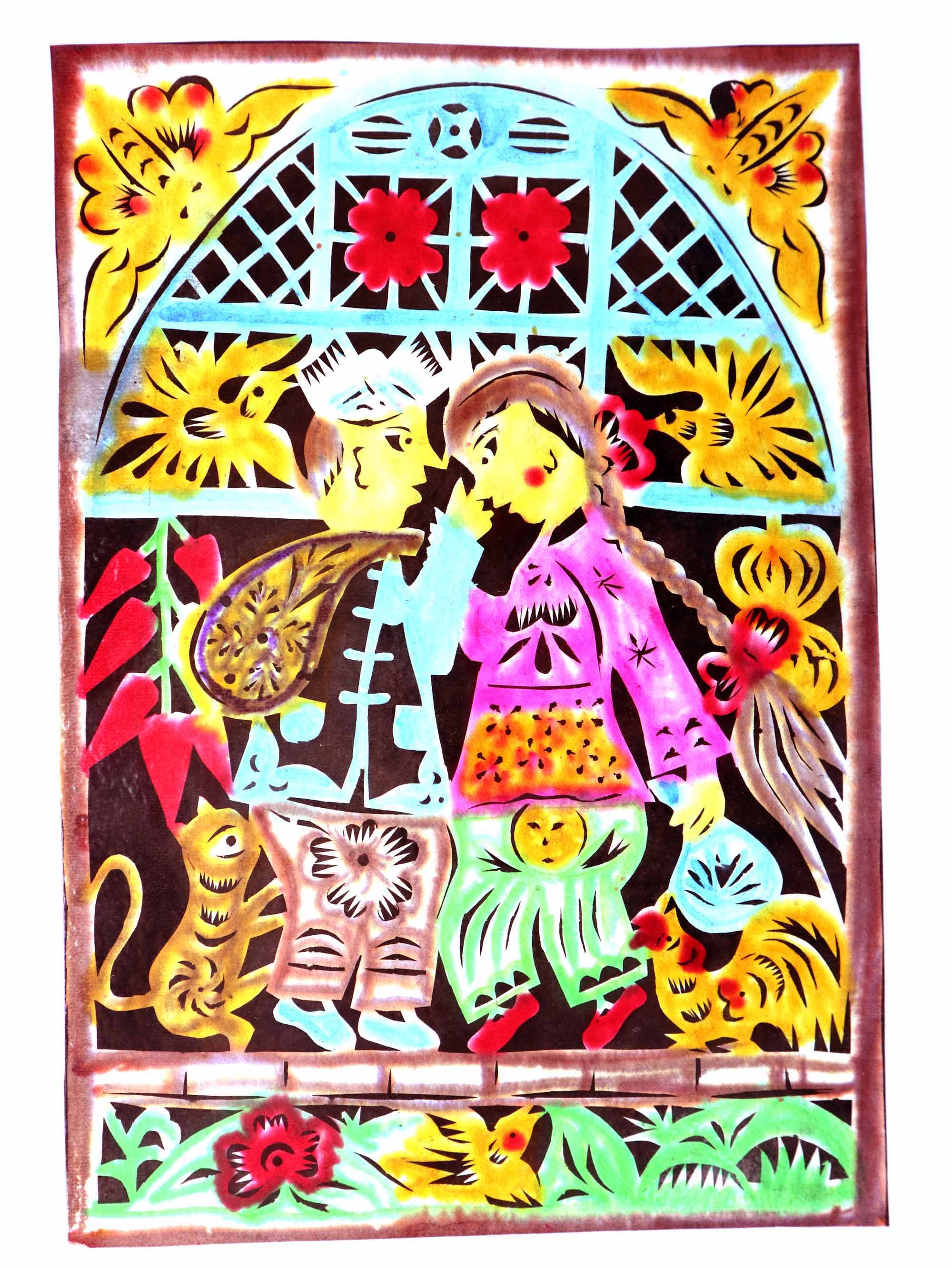除单色剪纸外,也擅长彩色剪纸。