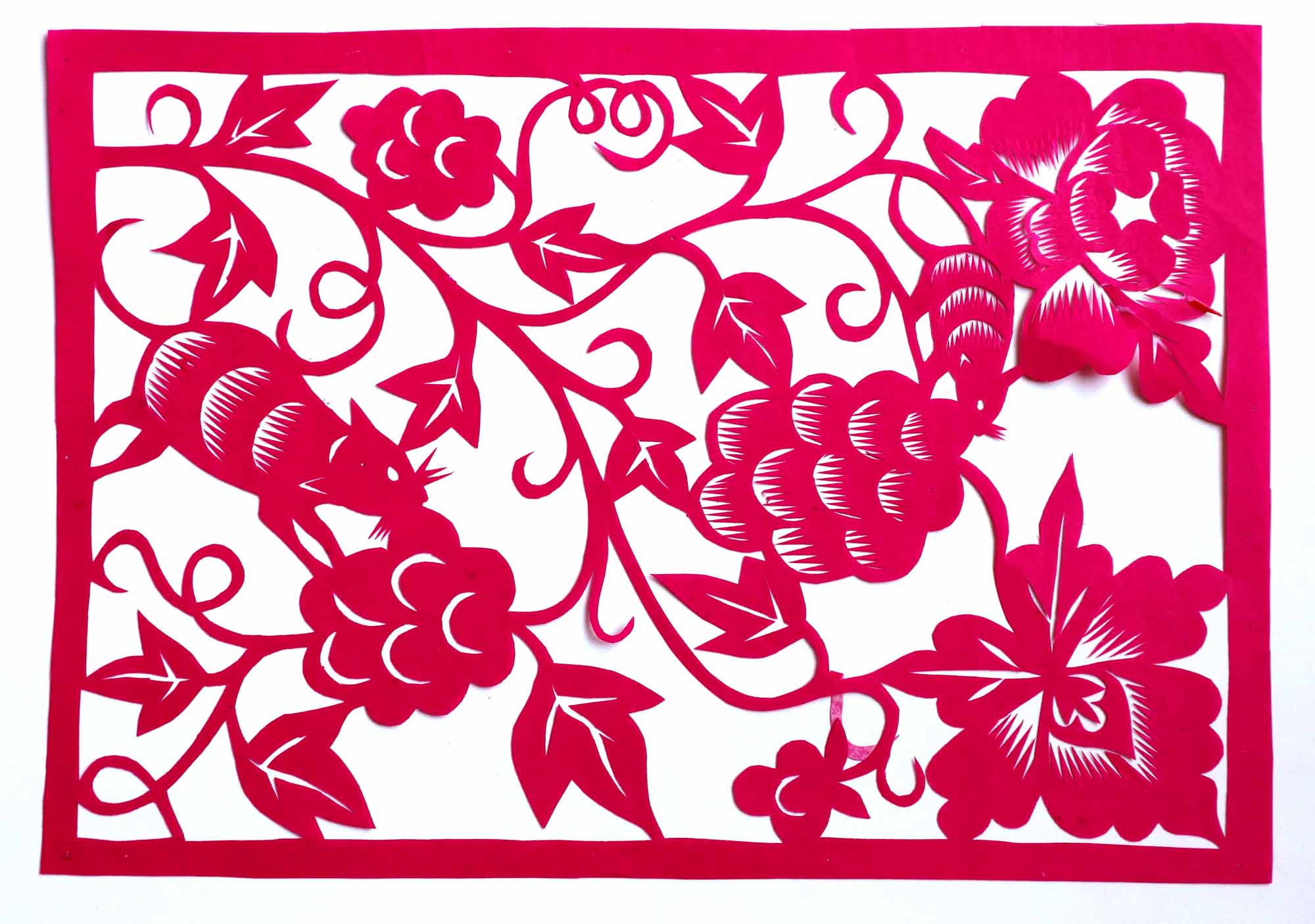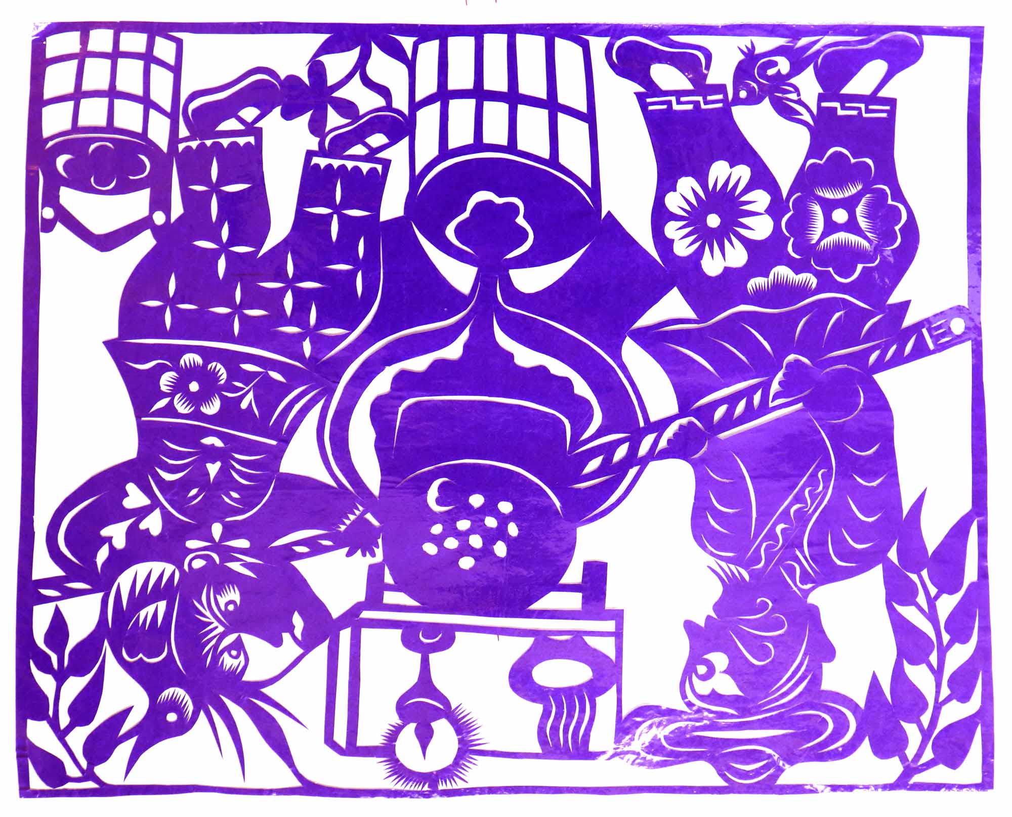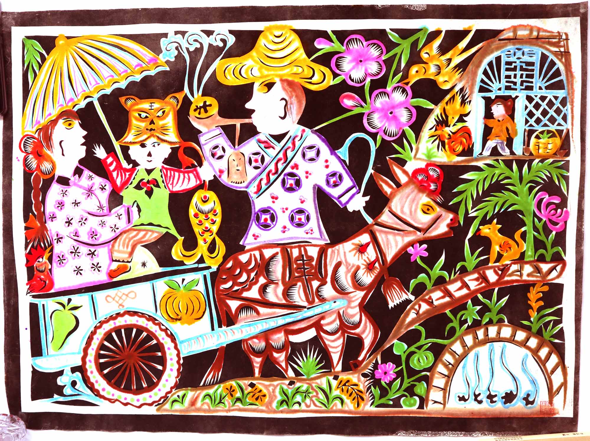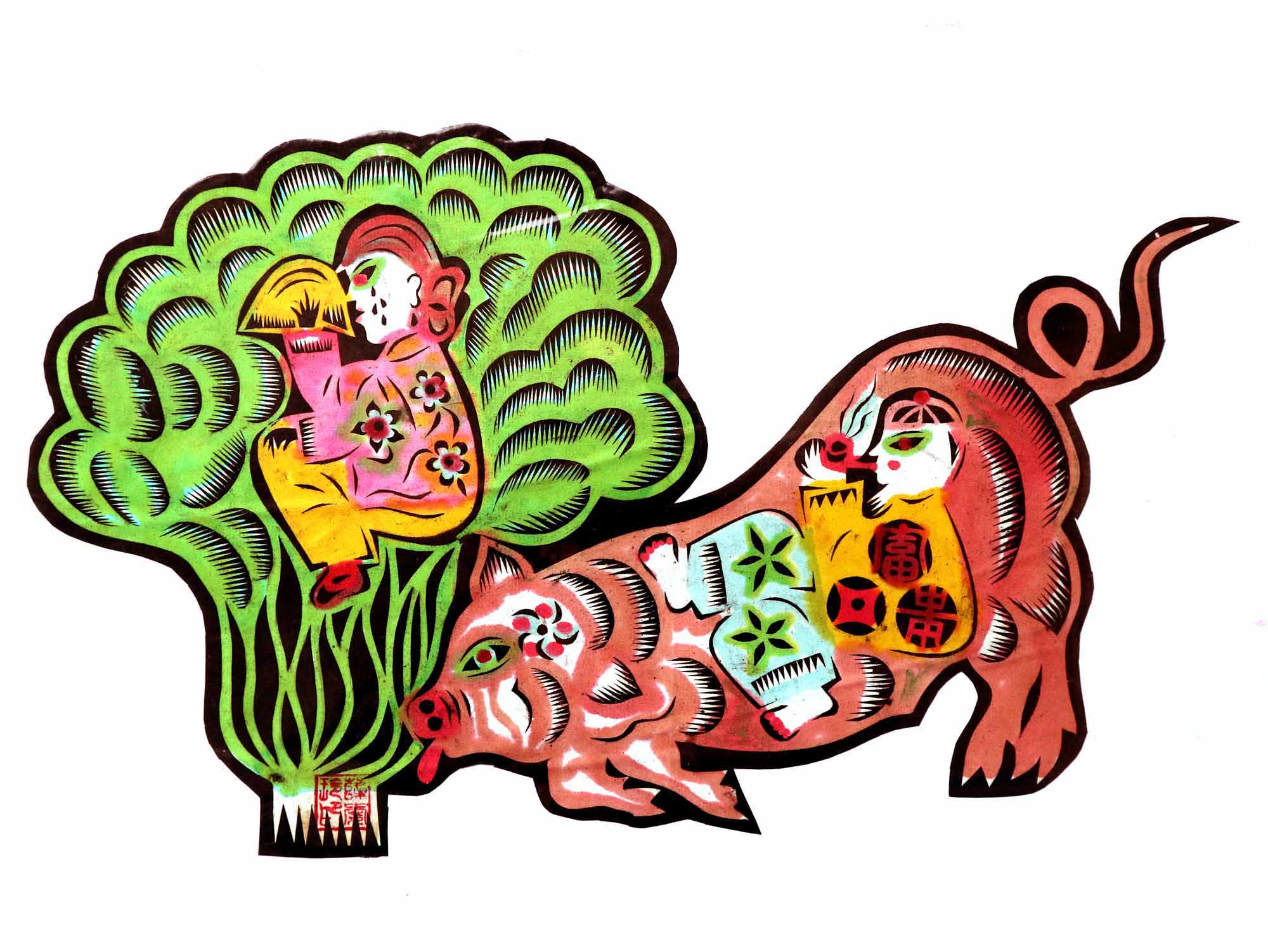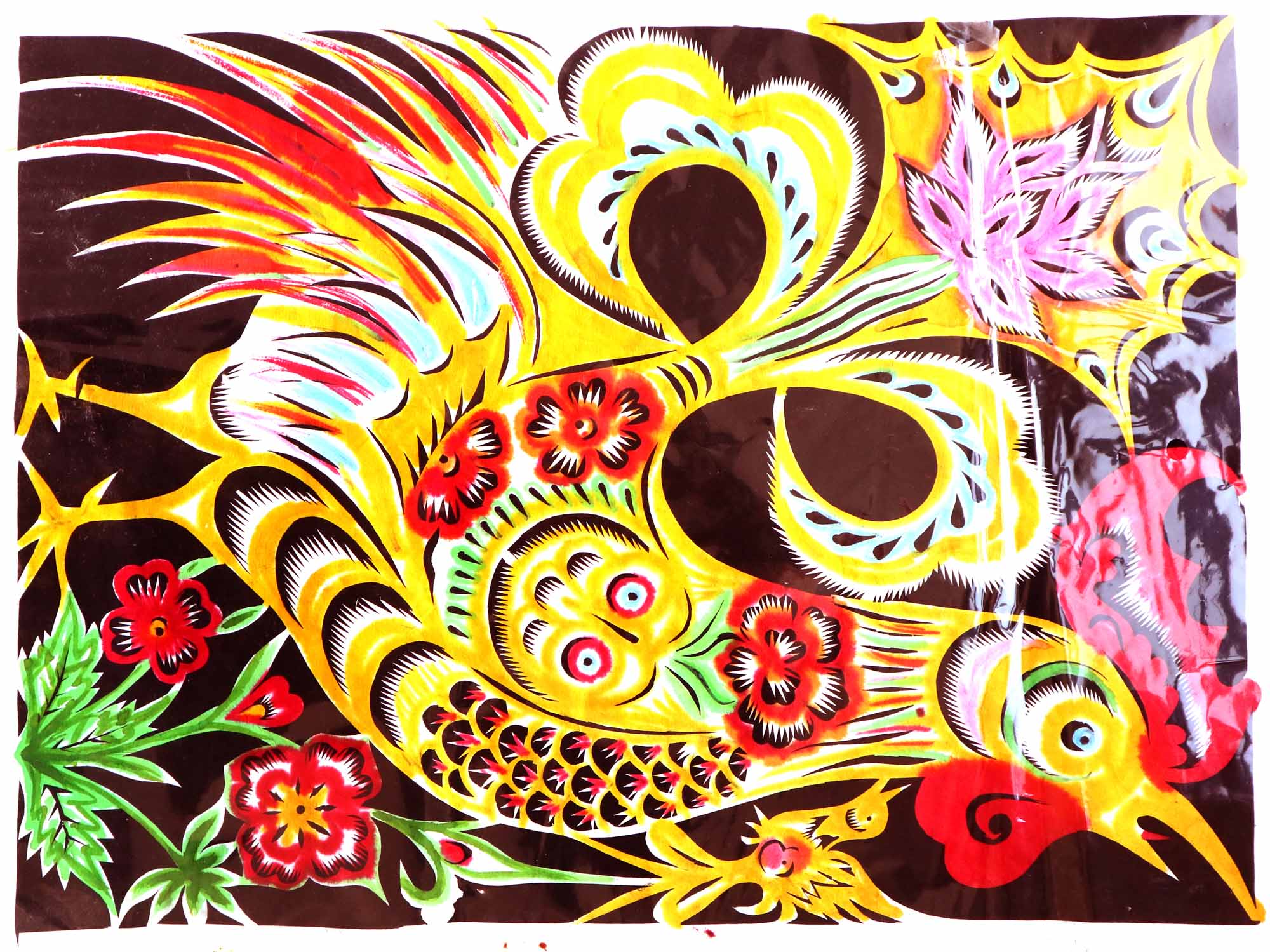 除单色剪纸外,也擅长彩色剪纸。