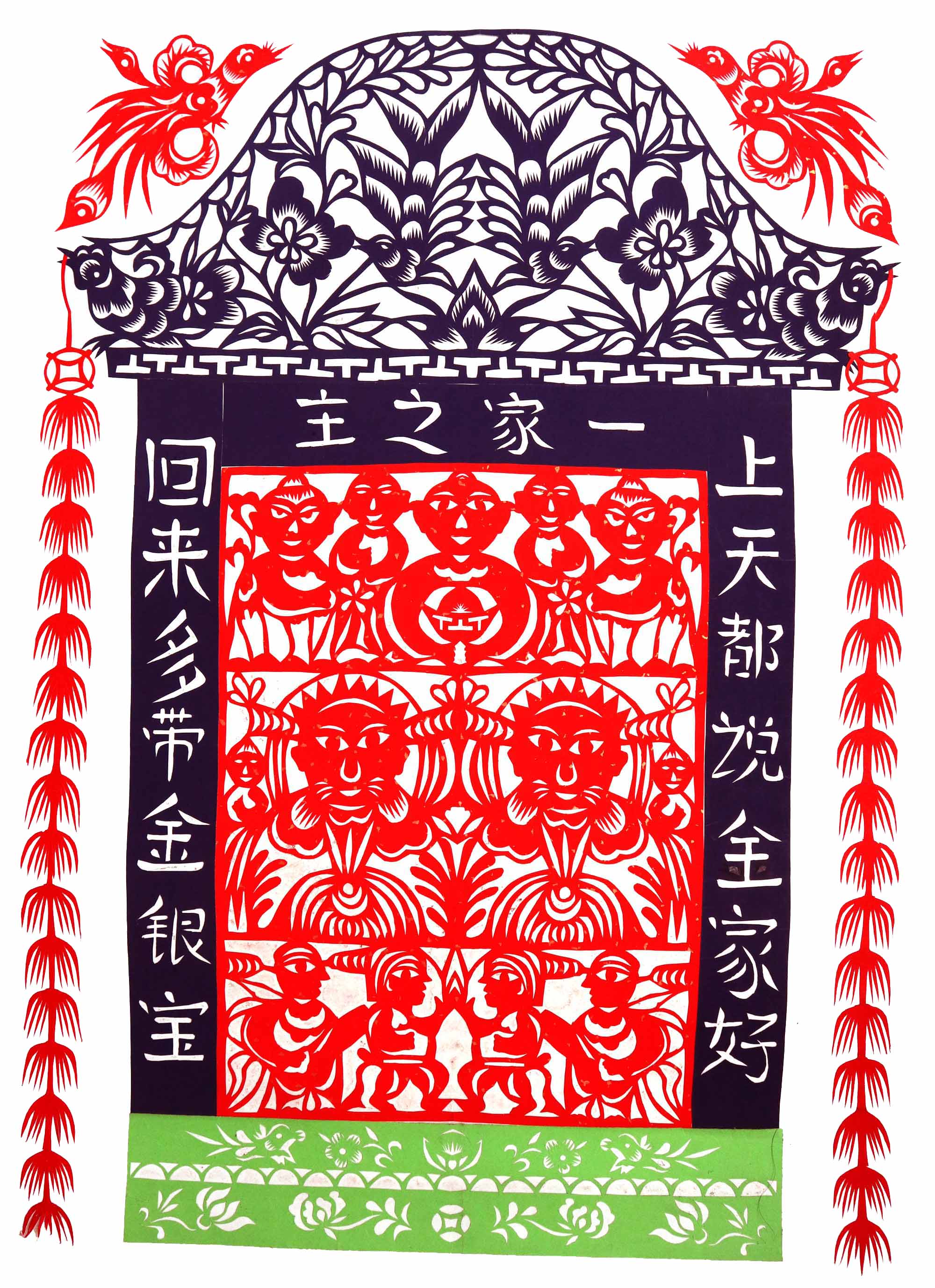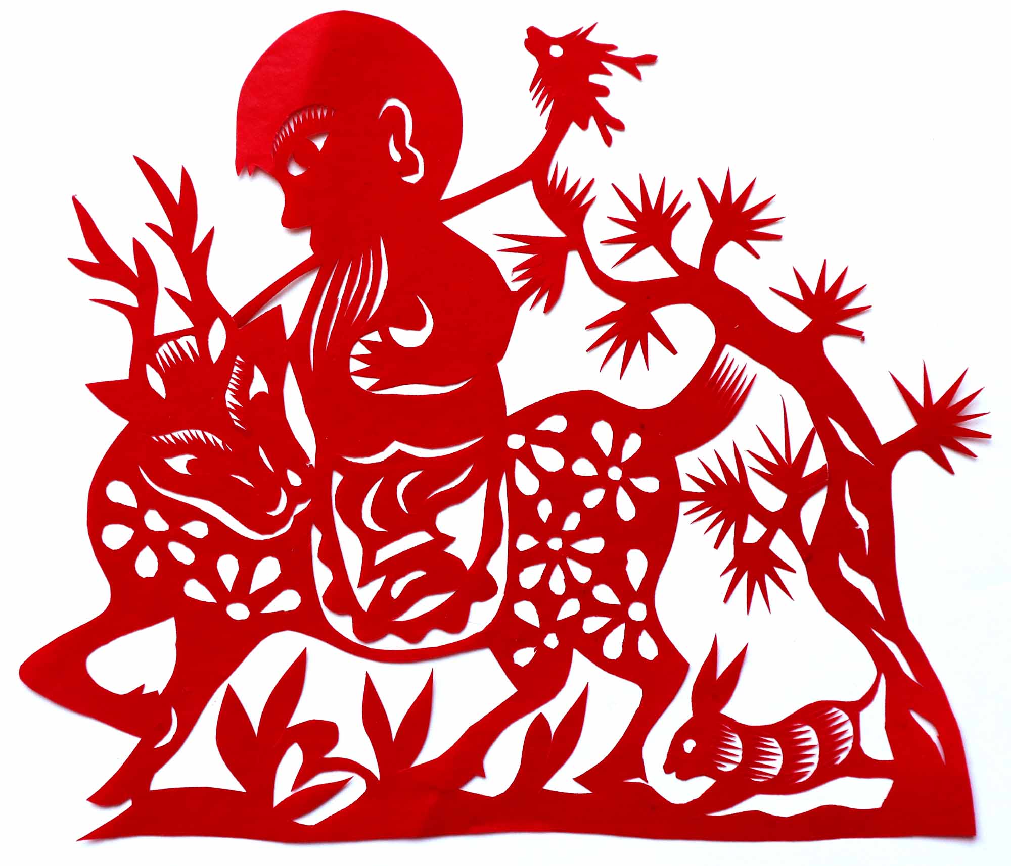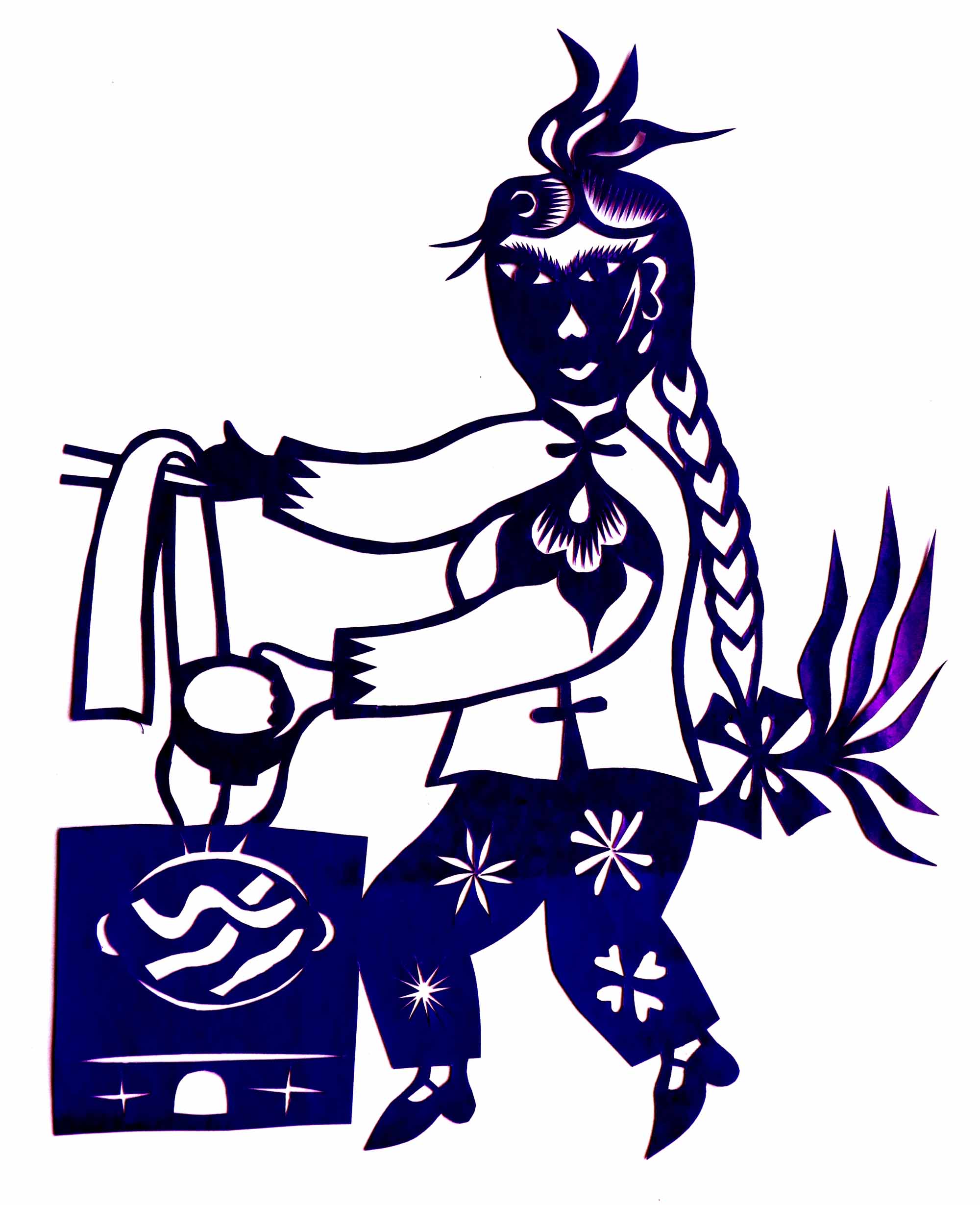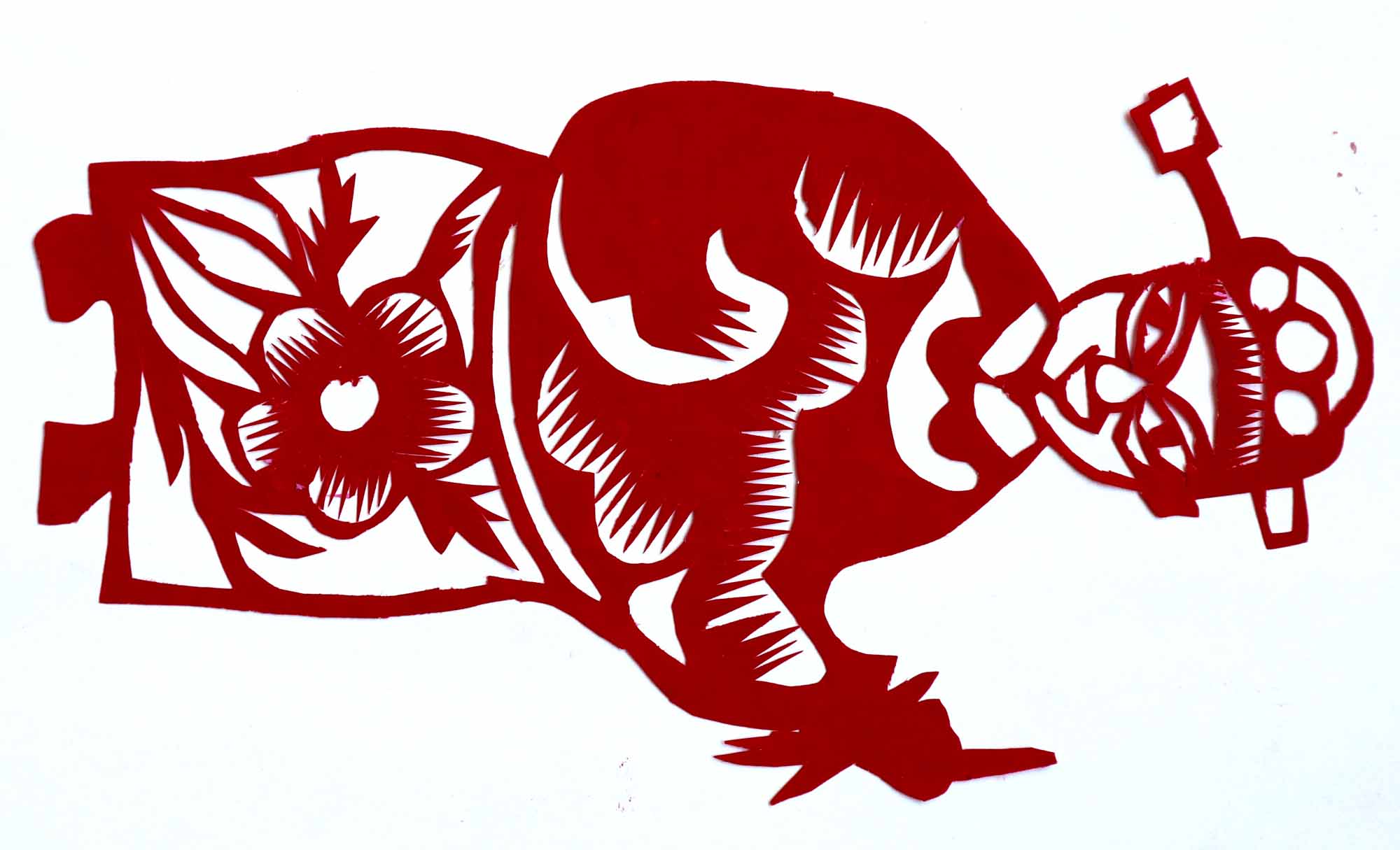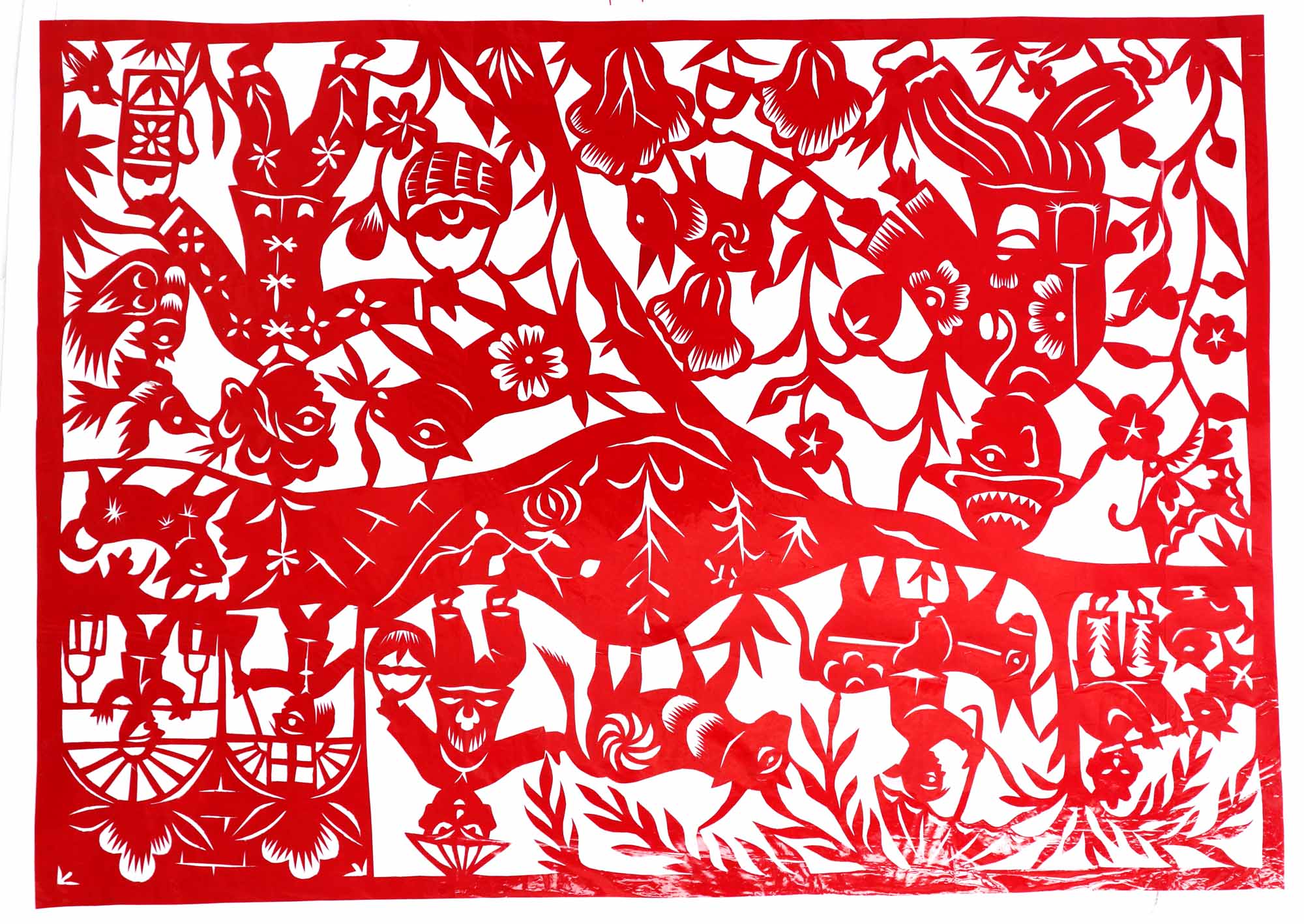 除单色剪纸外,也擅长彩色剪纸。