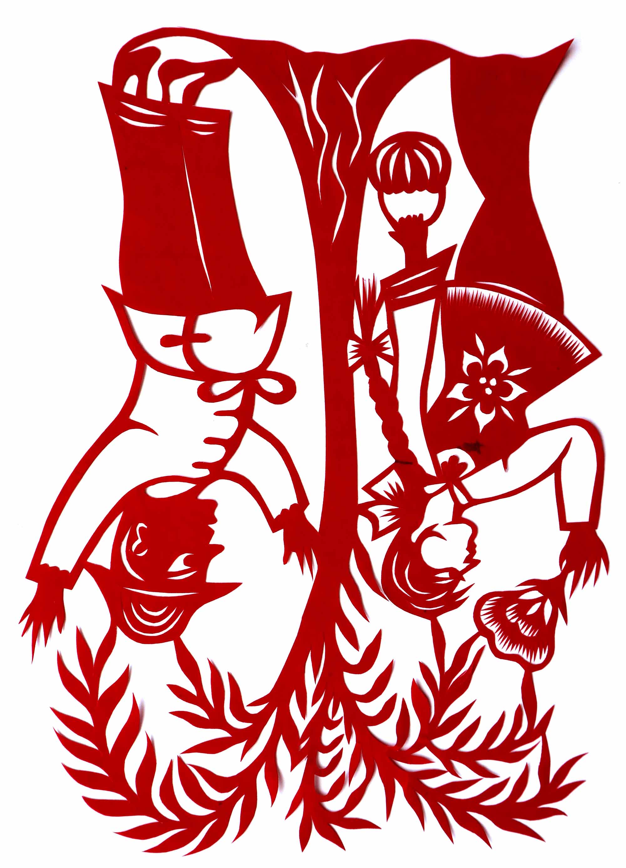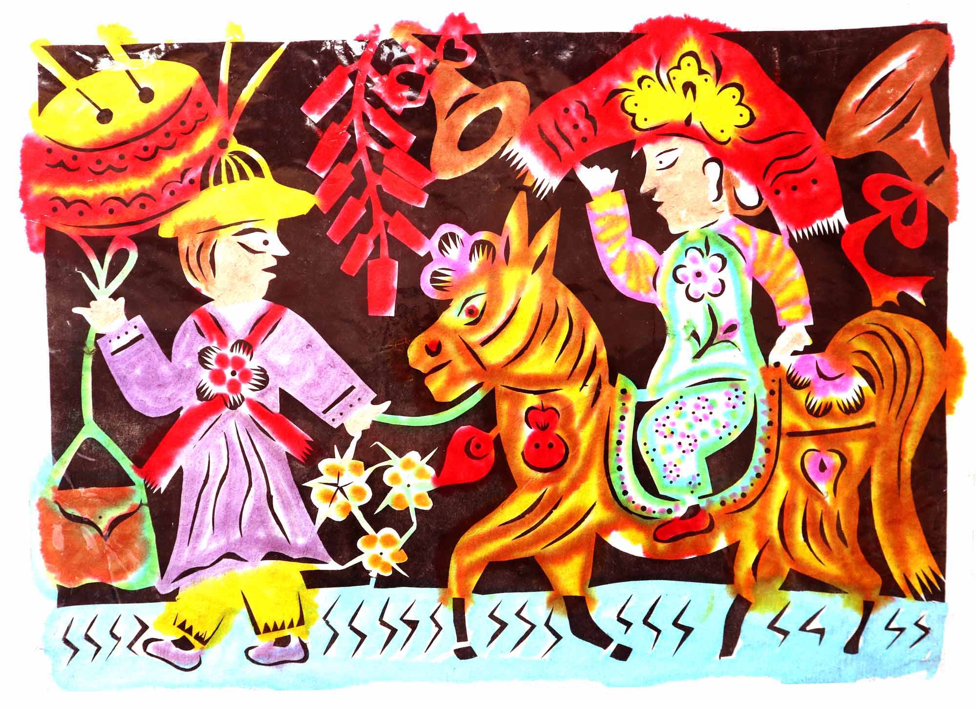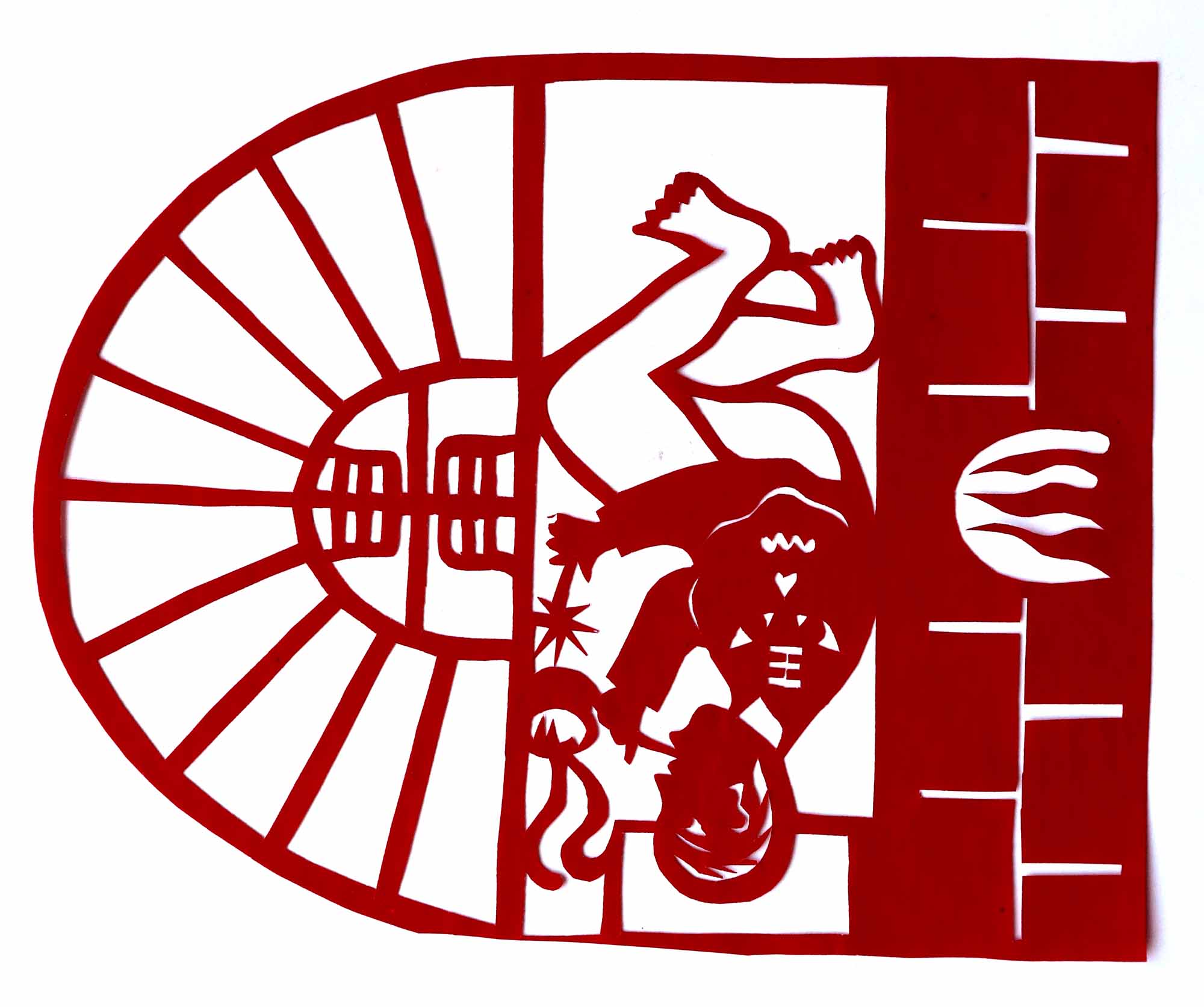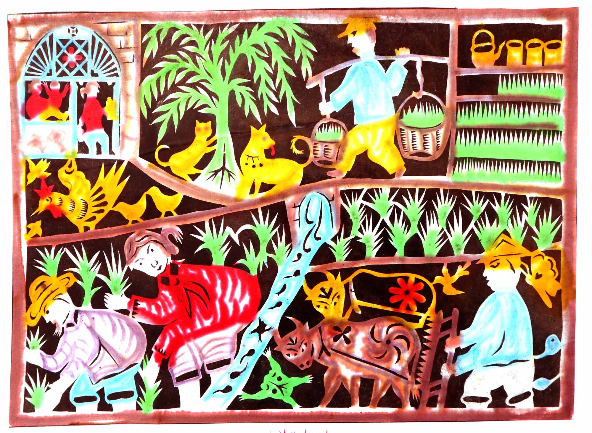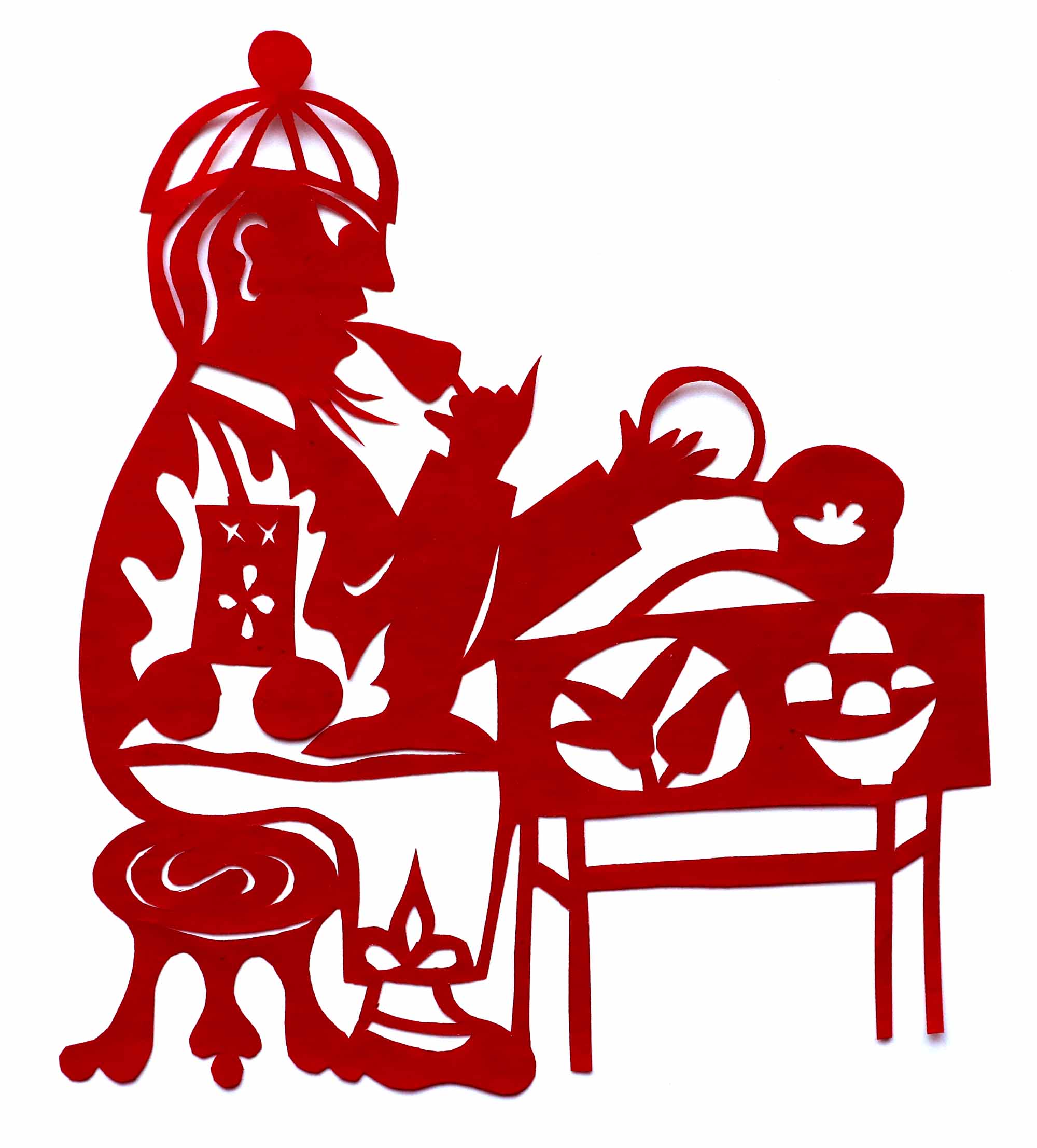 除单色剪纸外,也擅长彩色剪纸。