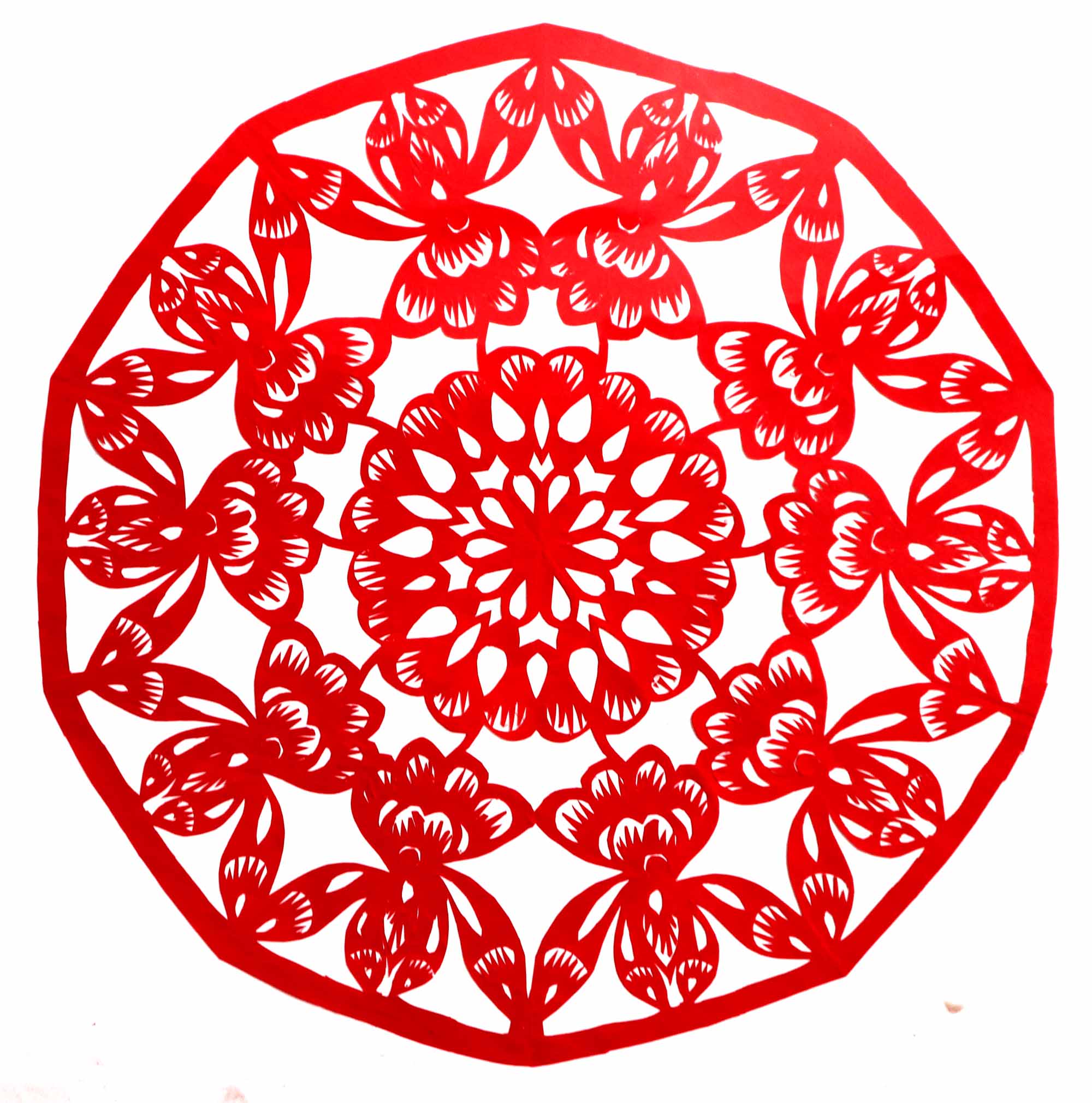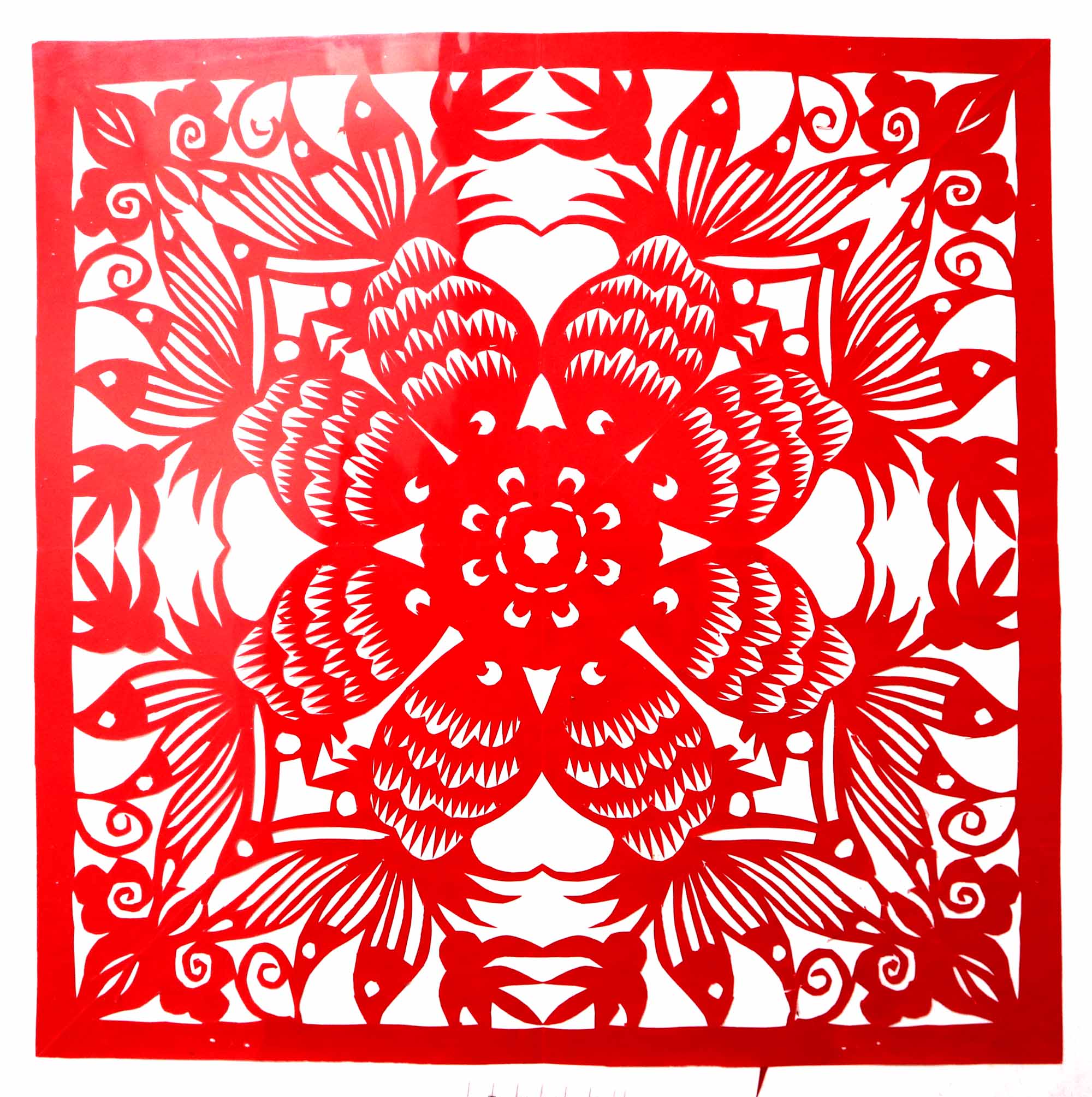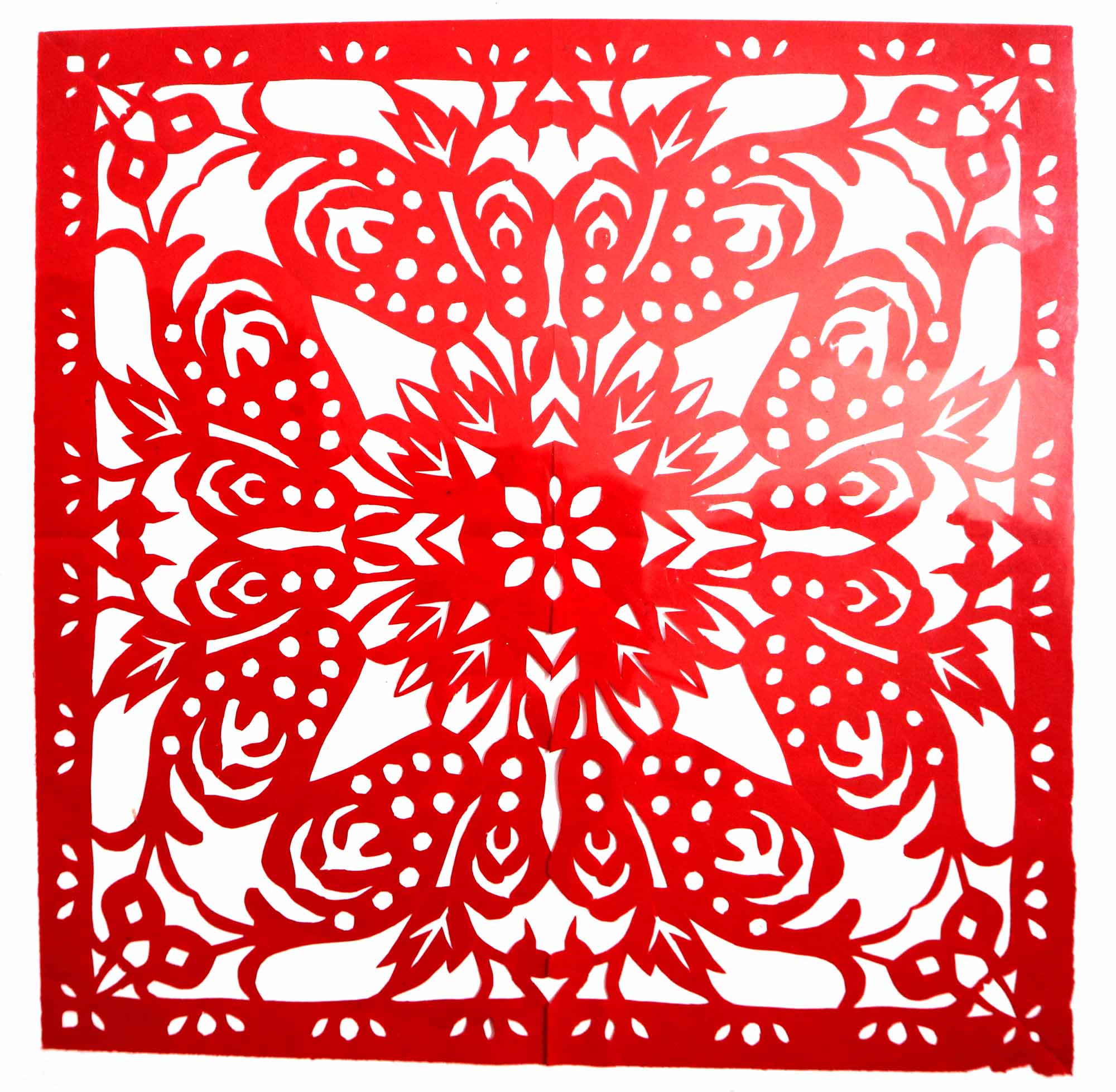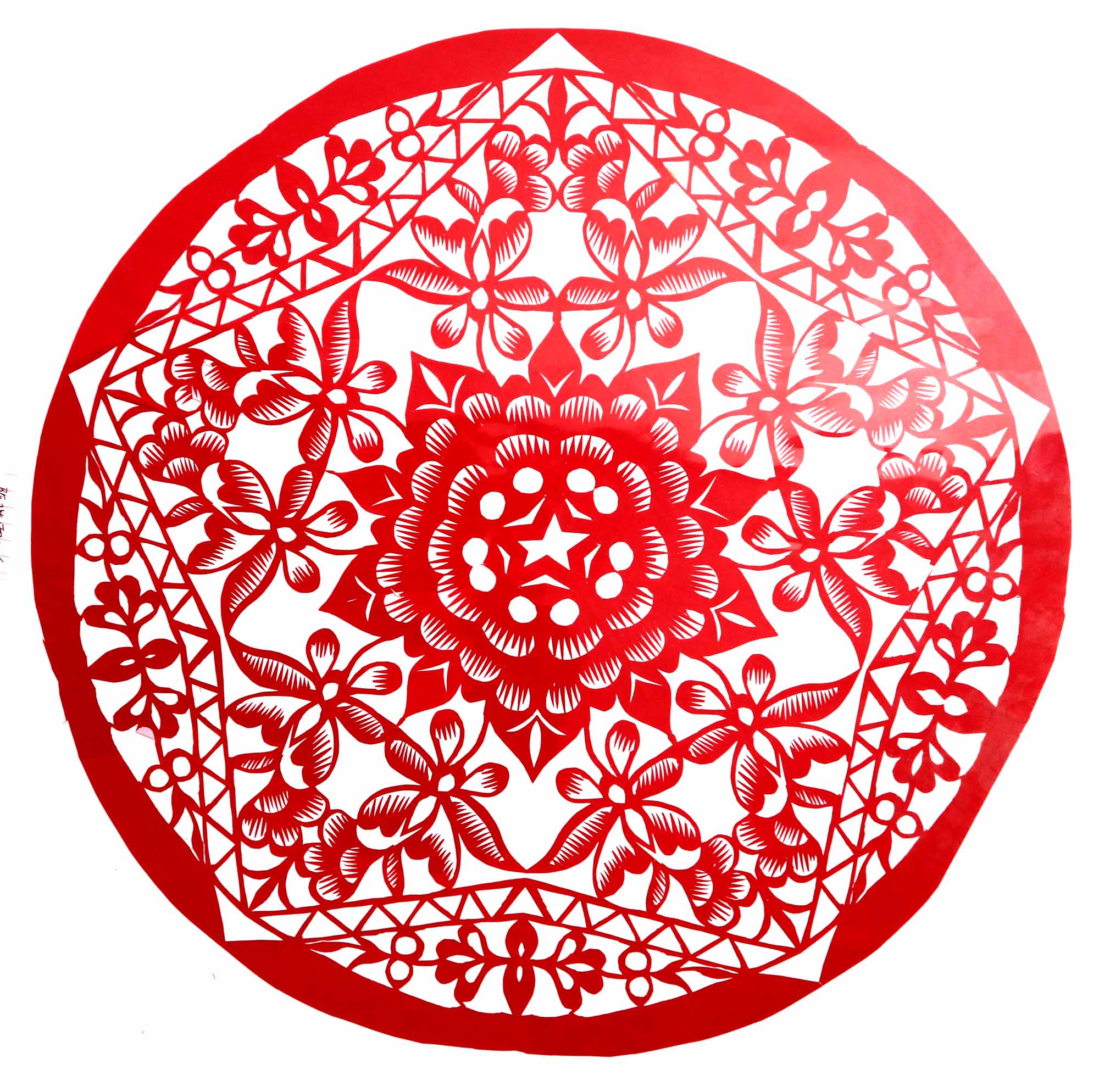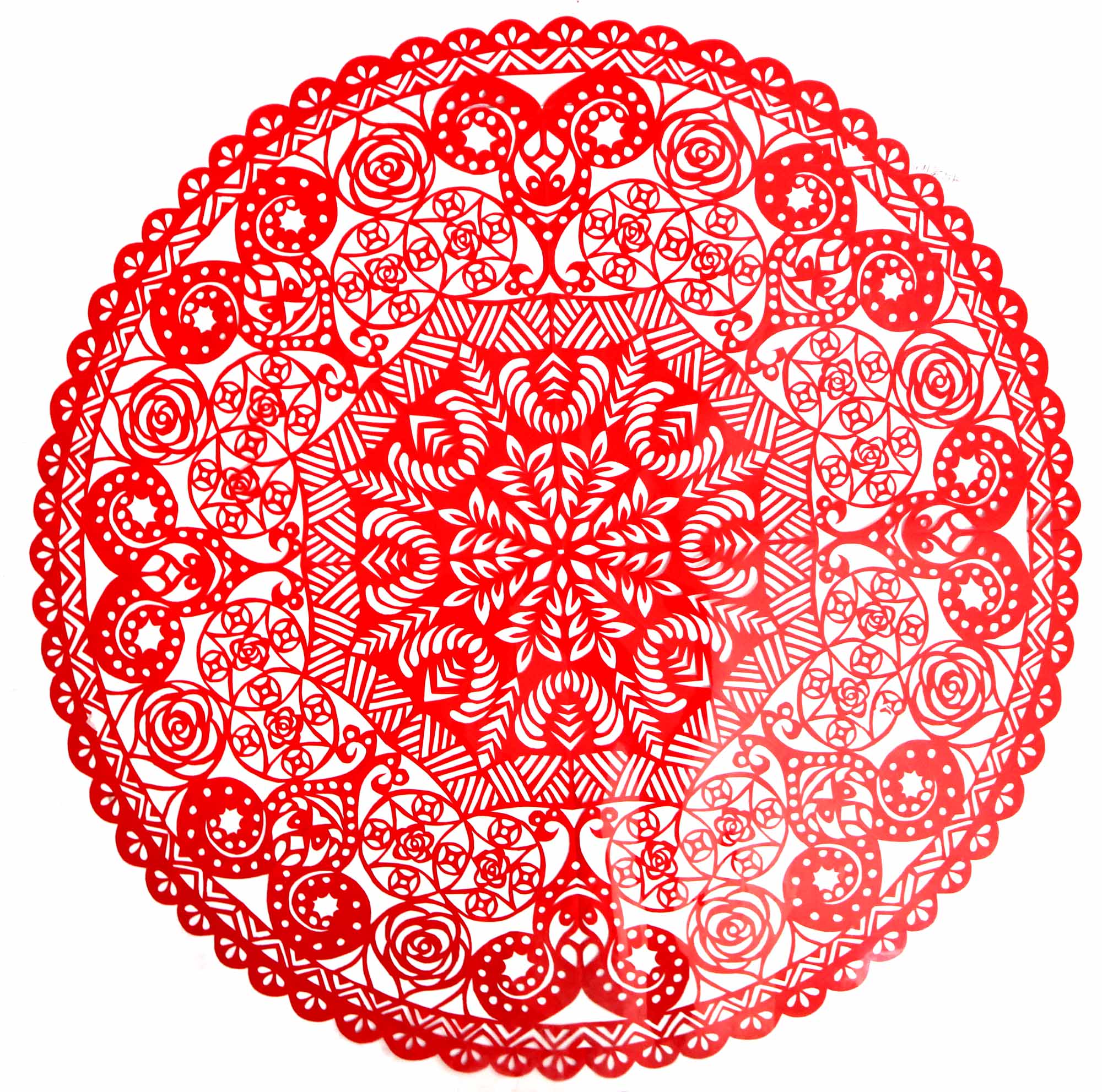 2018年,村里的干妈学习剪纸,陈晓霞在家人的支持下也跟着干妈学习剪纸。开始找了很多复印样子,拓着样子剪纸,学会了基本的剪纸技能。2019年7月,甘泉县就业局举办就业技能培训,陈晓霞报名参加了培训。后来又参加了全县的剪纸培训班。培训班高凤英任辅导老师,她是延安市剪纸传承人,因陈晓霞与人交流困难,高老师对她格外照顾。有什么想法看法,都是写在纸上或用手机敲出来,两人互相交流,手把手地修改剪纸。陈晓霞学习剪纸也很认真刻苦,把大量的时间都用在了剪纸上,进步很快。一年时间创作剪纸作品100多幅。