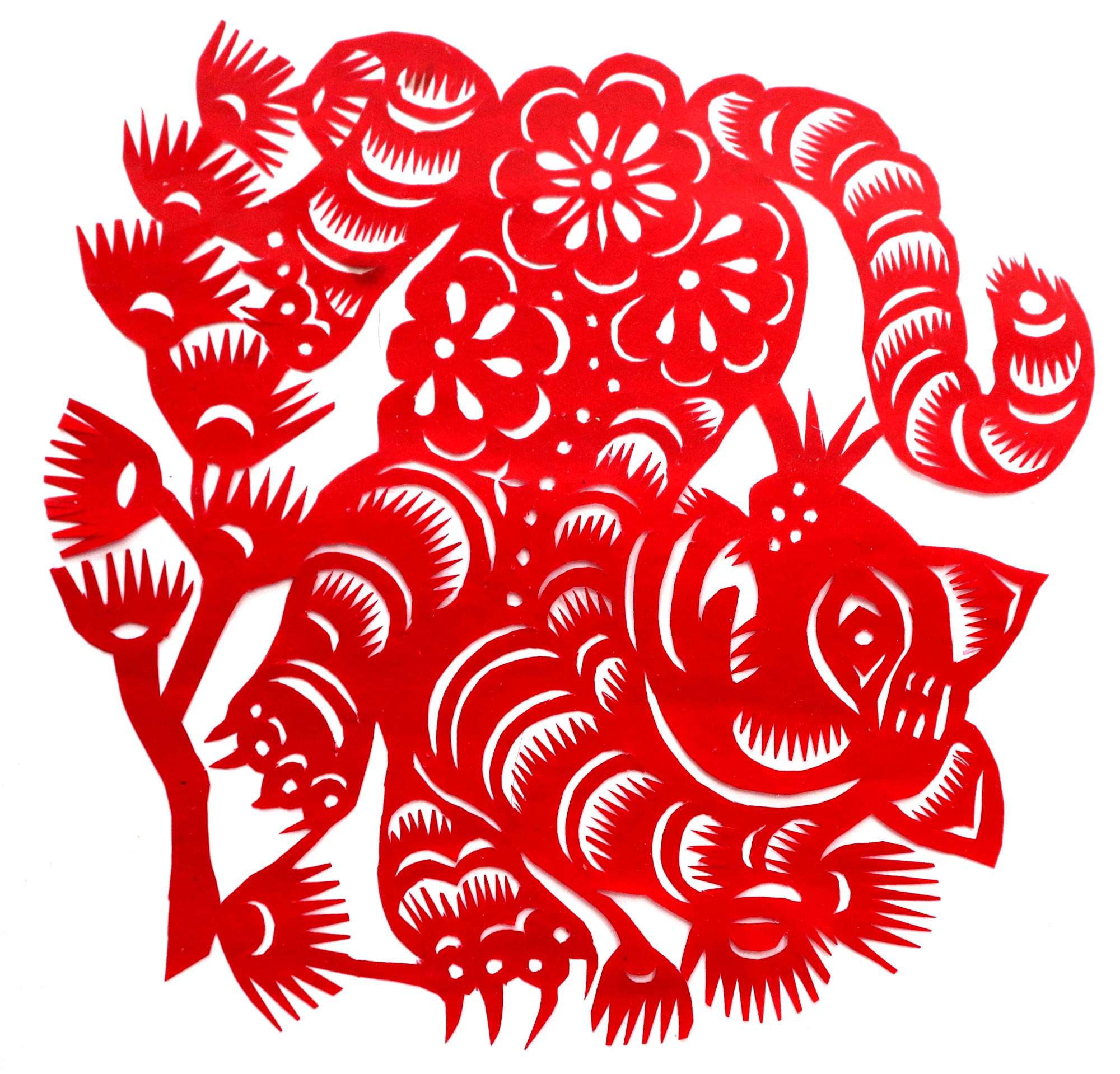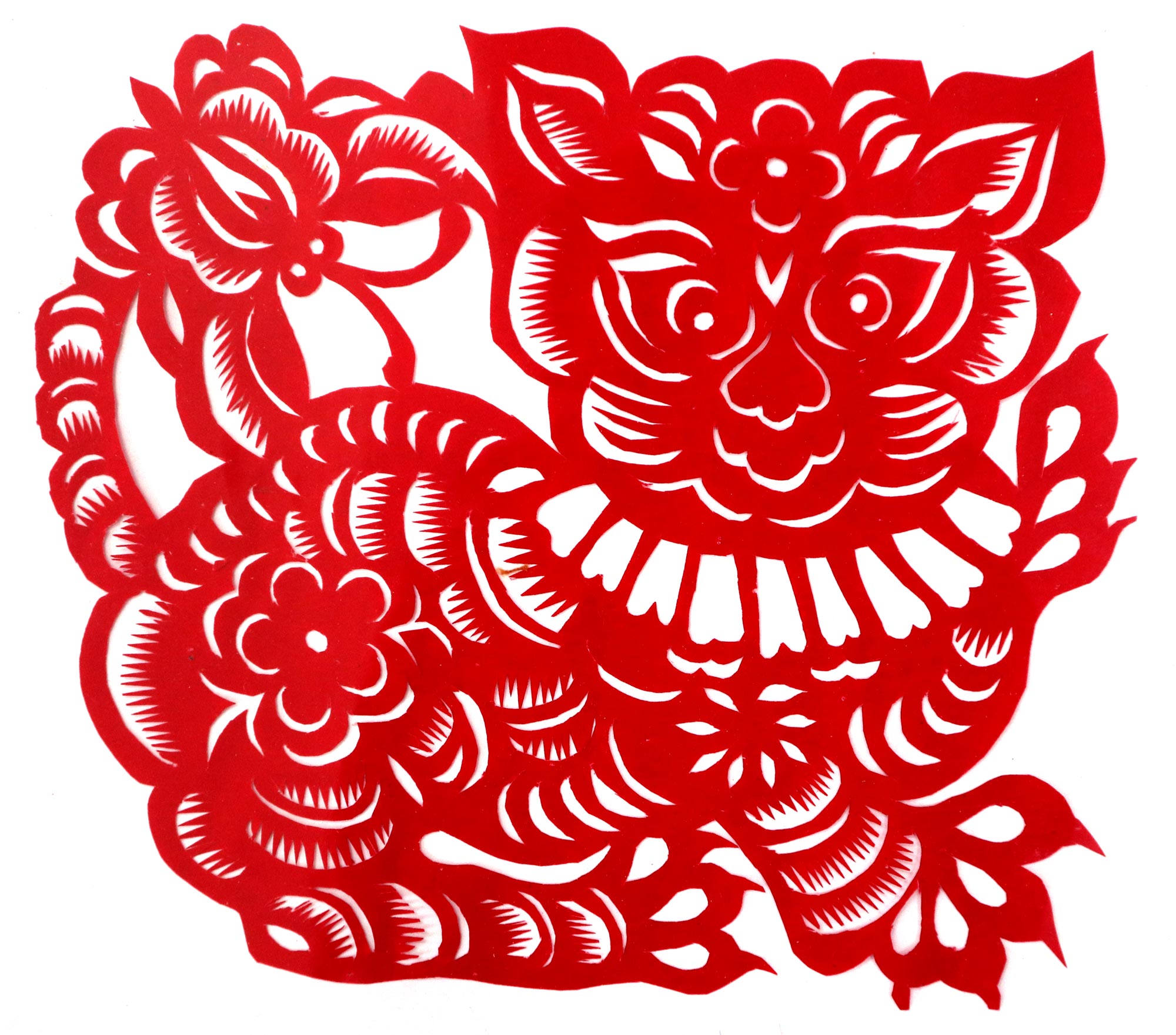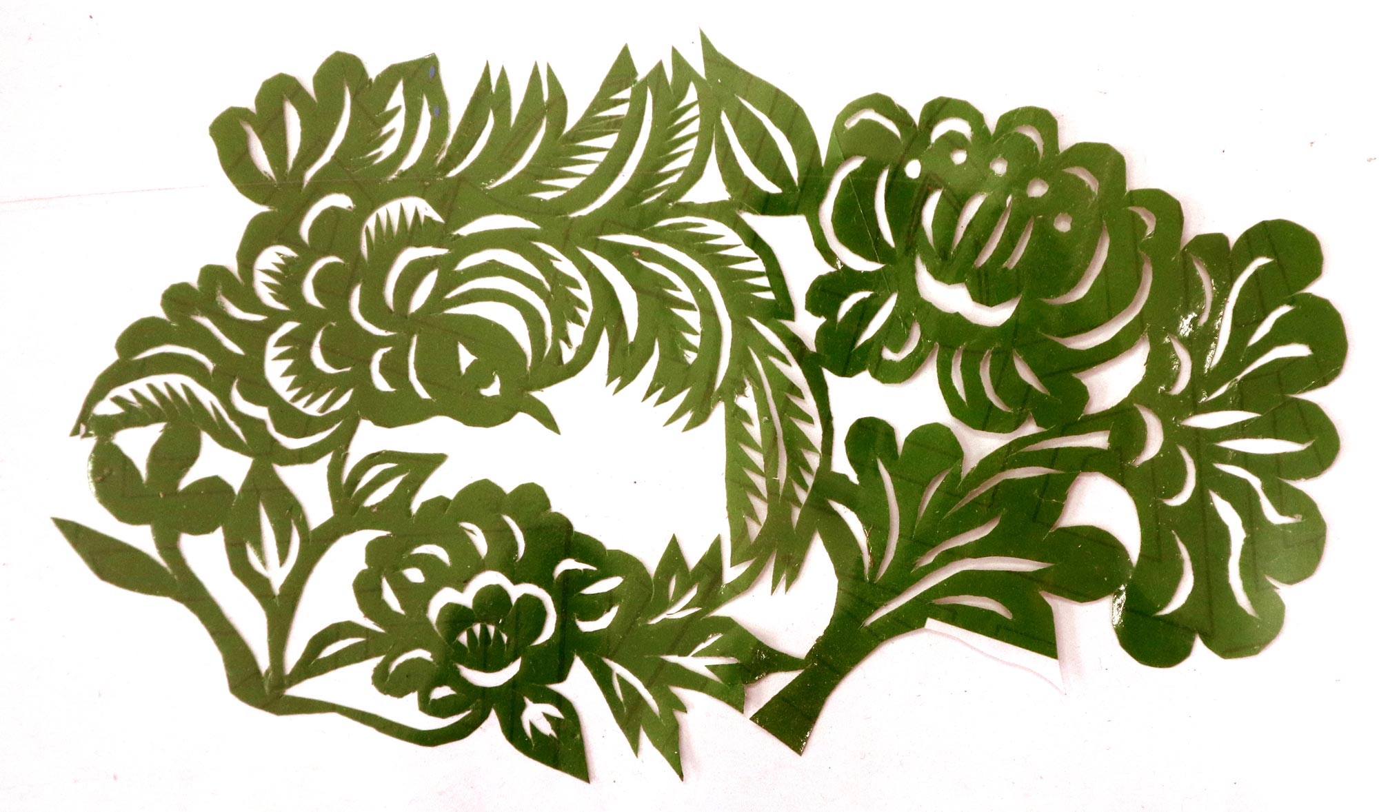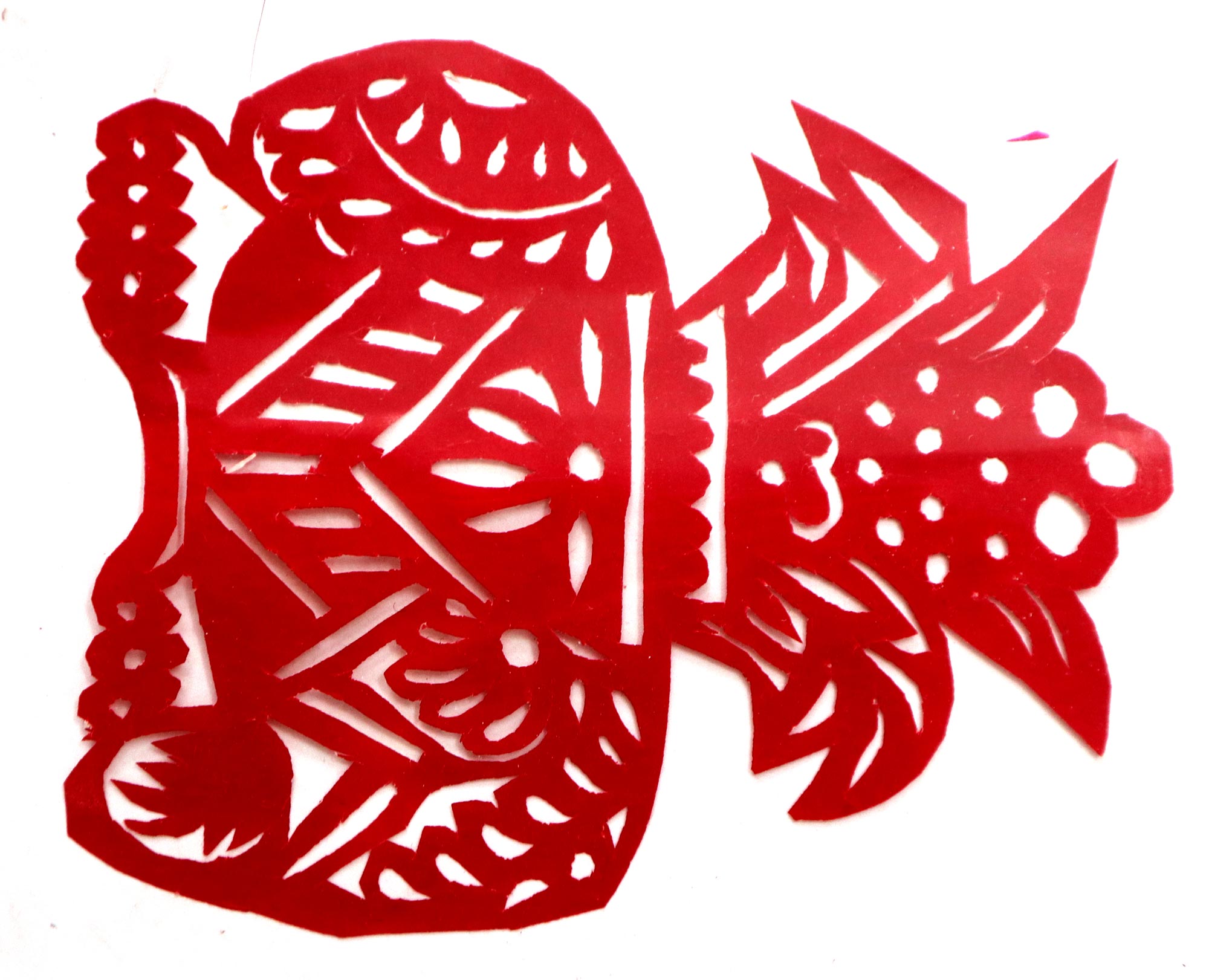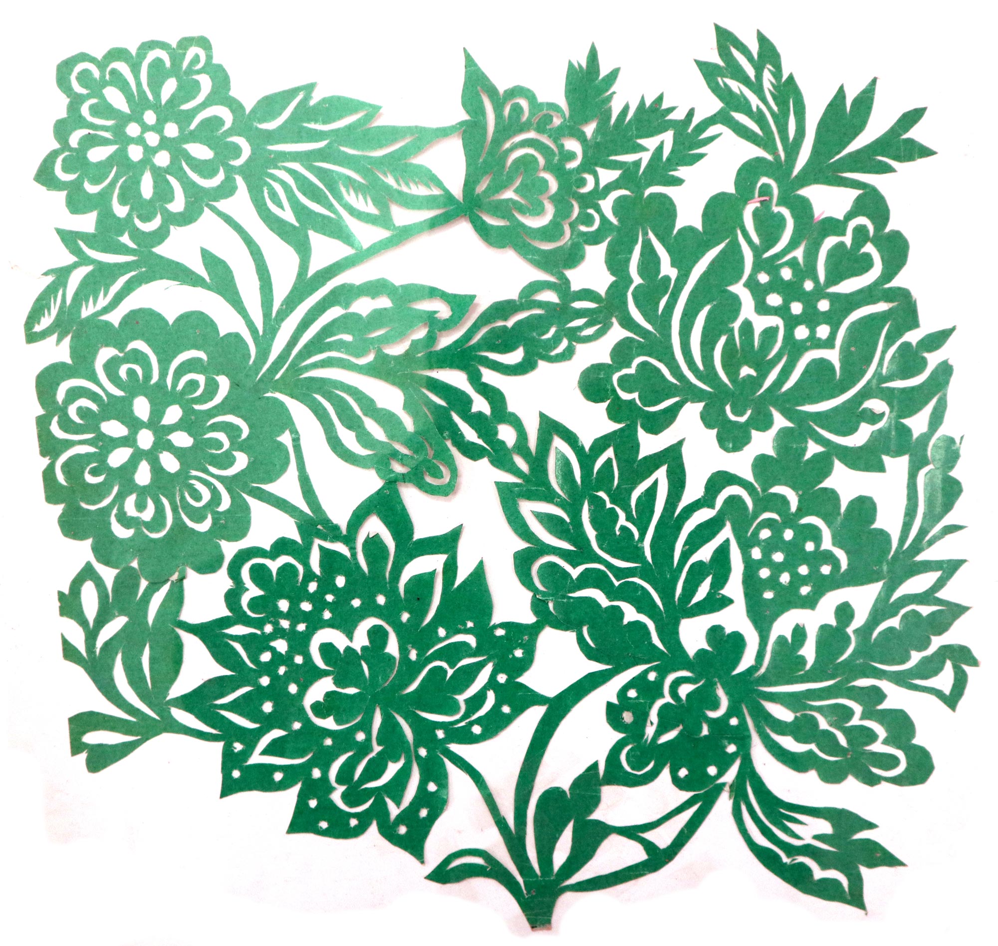 黄凤娥,女,1945年生,汉族,小学四年级文化程度,农民。父亲黄文金,当过老师,有木工的手艺,靠种地为生,平时喜欢书法,写的字在当地很有影响。母亲任桂香,不识字,不会剪花,也不会绣花,针线活做得一般。三妈是当地的剪纸高手。三妈是当地的剪纸高手,最擅长剪老虎、狮子、凤凰等。黄凤娥7岁时用三妈给的剪刀和熏样,拓着样子练习。有时把被面上的图案画下来剪,还看人家枕头顶上的花、钱夹上的花,觉得好就细细的看,看后回到家里想着剪出来,也就学会了剪花草。学剪纸父母都非常支持,并说:“小娃娃能把花剪好,活灵活现不容易,好好学”。过年的窗花都是她来剪,没有样子就自己画。看见个鸟雀,就画出来剪出来,见门前路过个骆驼,就剪个骆驼,不管剪得像不像,母亲都说剪的好。除学剪纸外,她还学会了绣花,做衣服,做鞋等。