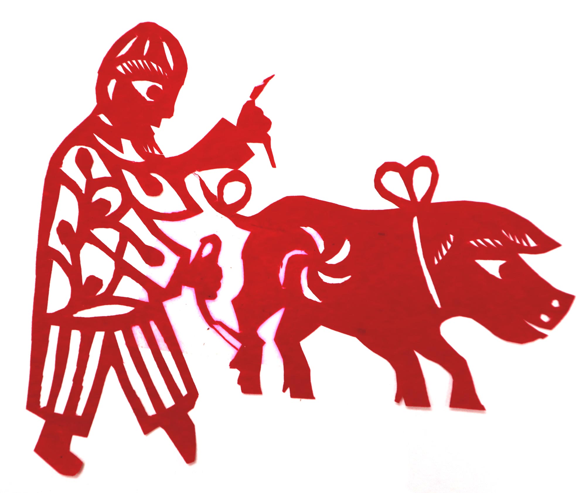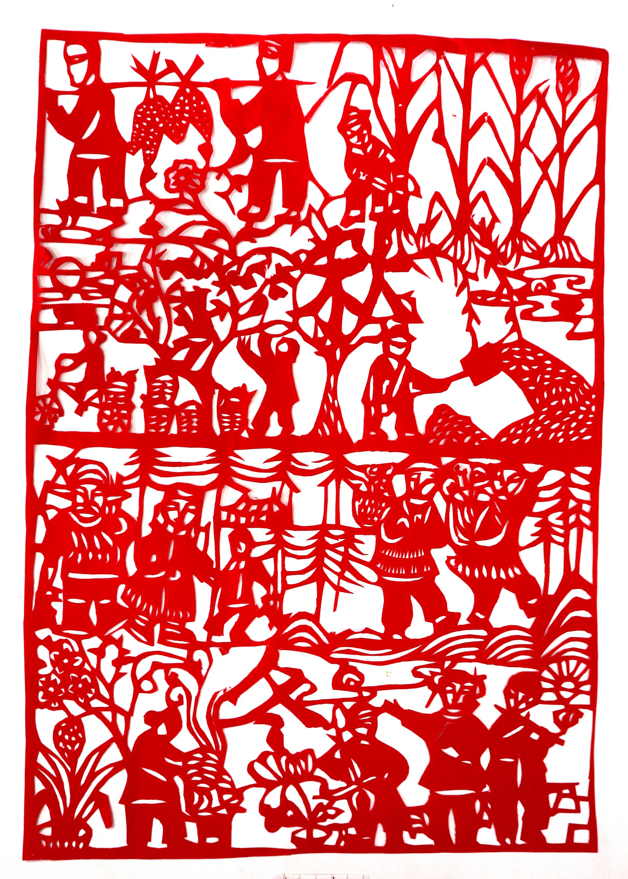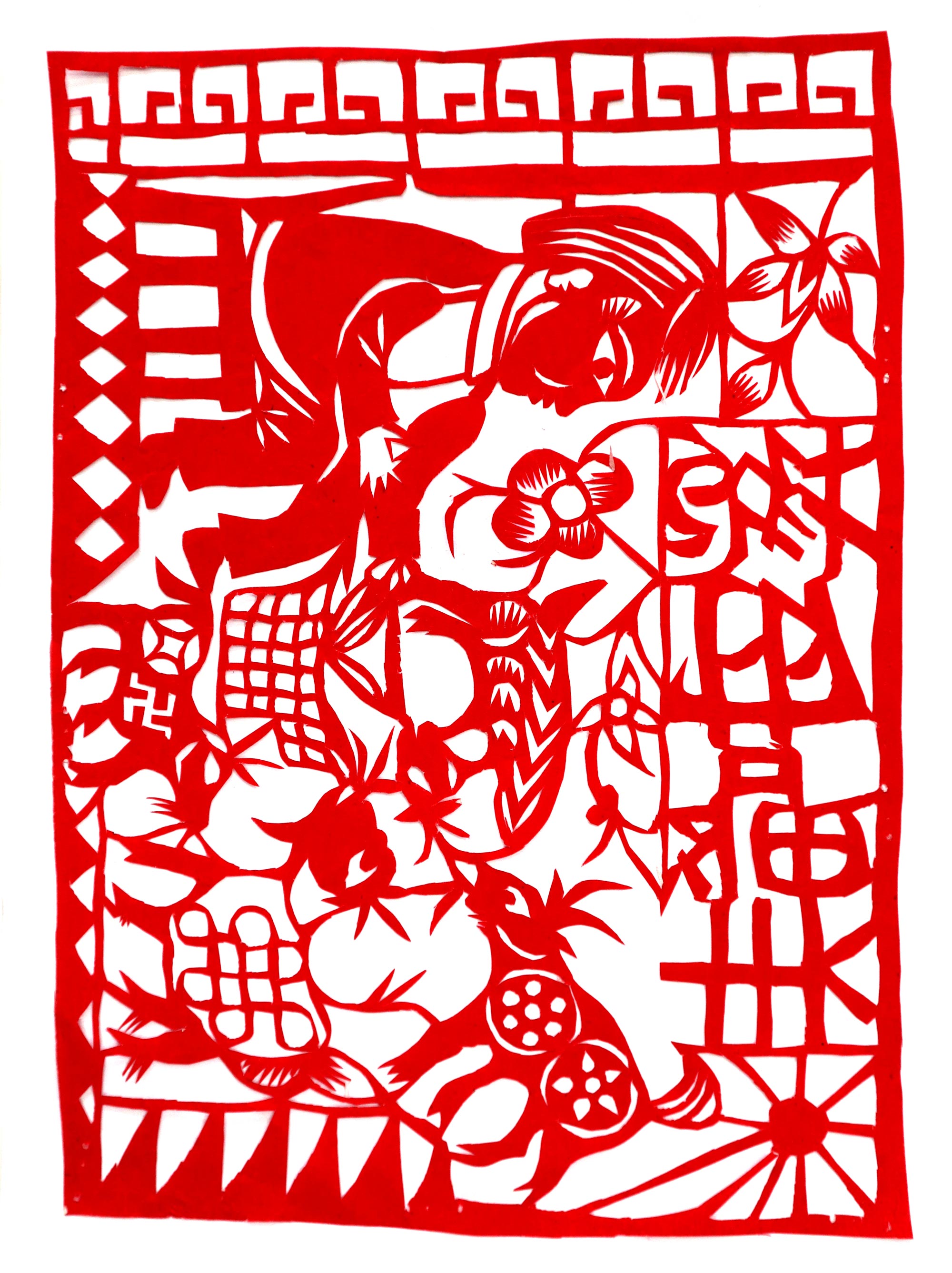 吉春莲,女,1962年生,汉族。母亲喜欢剪纸、画画、绣花、缝纫。丈夫高中文化程度,是当地有名的好木匠。受母亲的影响,吉春莲也爱剪爱画,常受到老师的表扬。每年腊月二十九晚上都要加班剪,有时剪一夜,赶天亮要把窗花贴到窗子上。吉春莲在班上学习好,考试成绩一直名列前茅,后来被城关镇西沟小学聘为教师,教语文、数学和美术课。