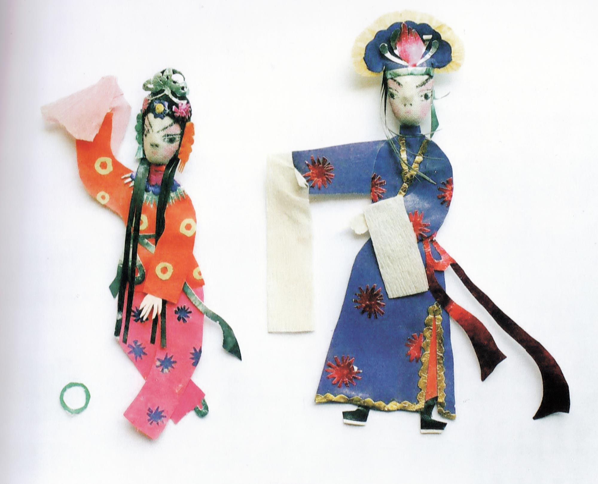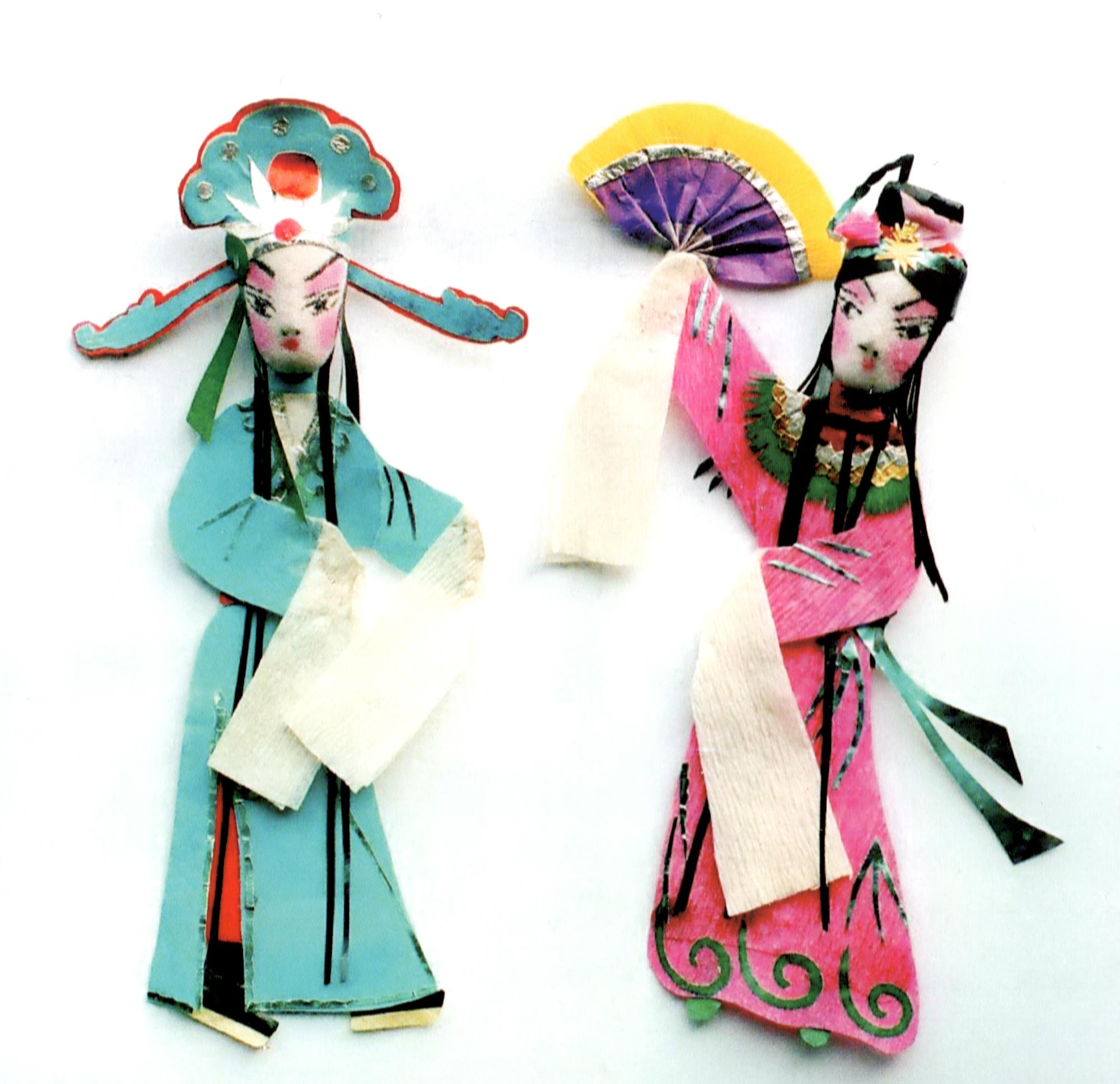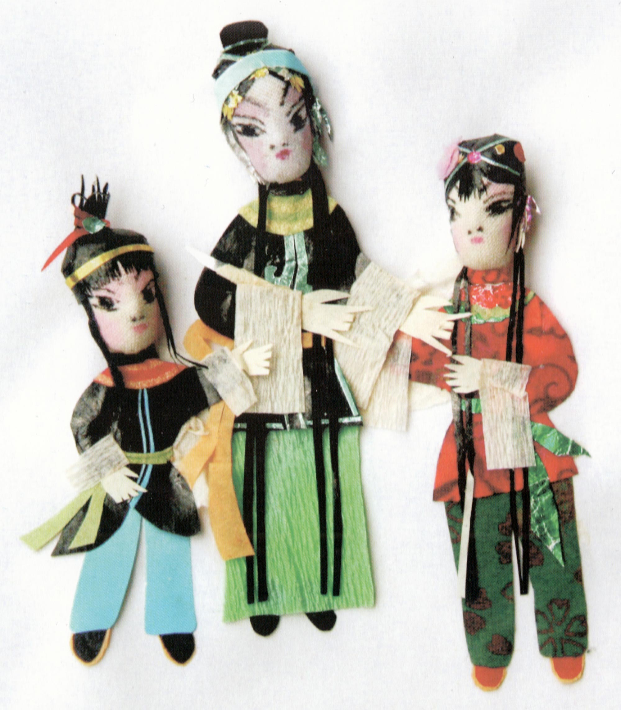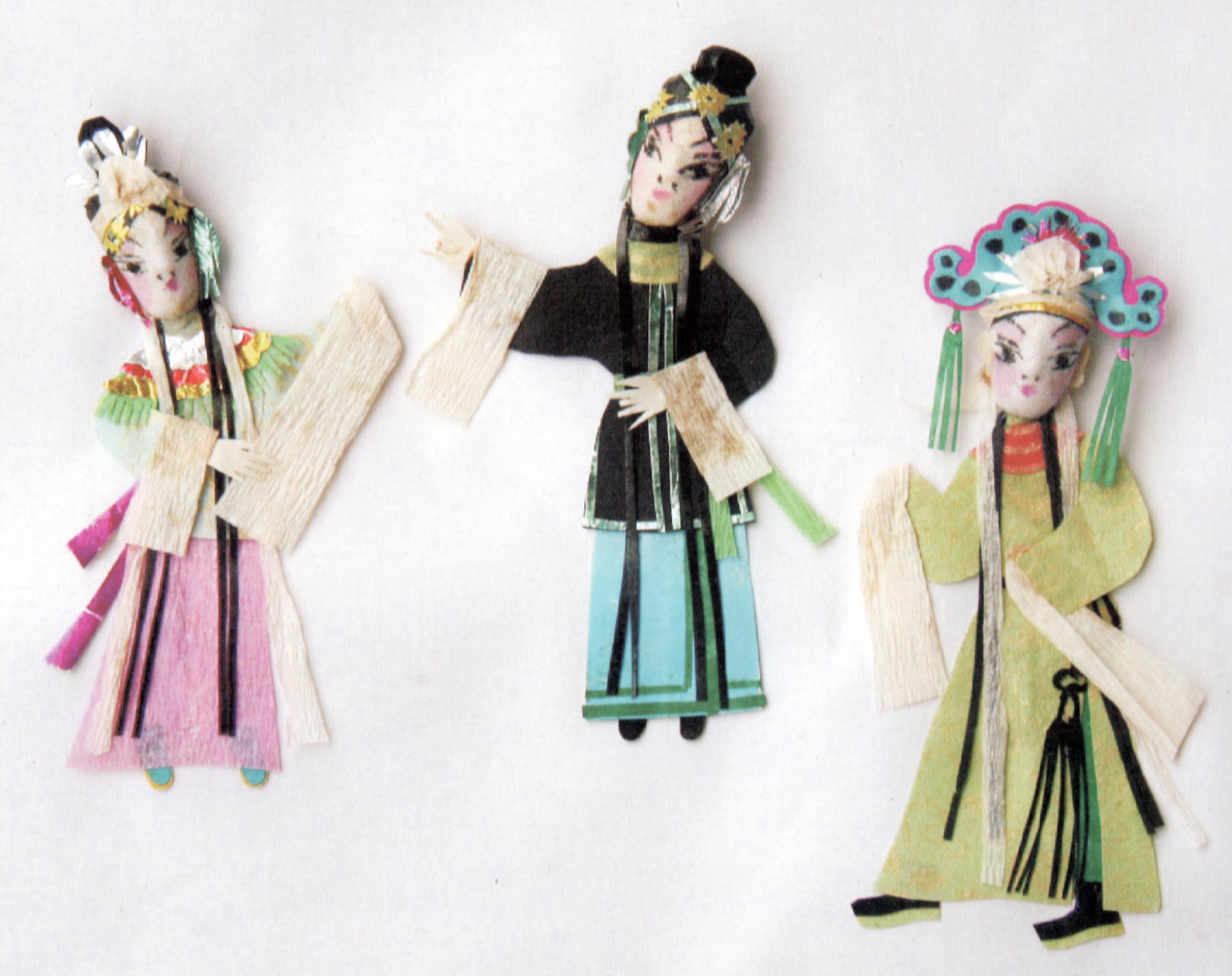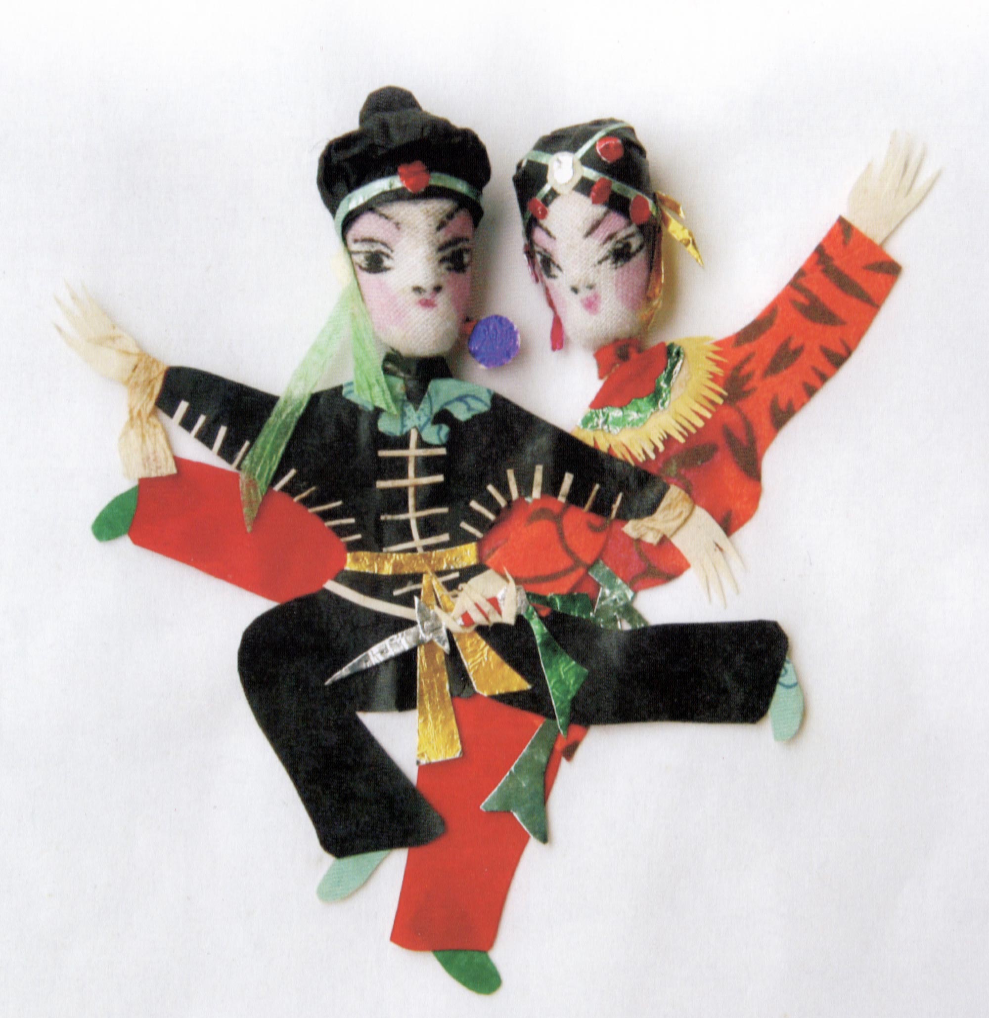 合阳新池乡的纸塑窗花,多采用各种色彩、金银箔、棉花、布片等材质进行局部剪贴、包扎、点染,然后再进行摞贴和衬色,组合成一幅完整的剪纸。因其贴在窗纸上呈现浮雕状,所以在民间又称为“出花”,意思是突出纸面的窗花,它的内容多为戏文人物,由此一些地方也叫“人厢”。