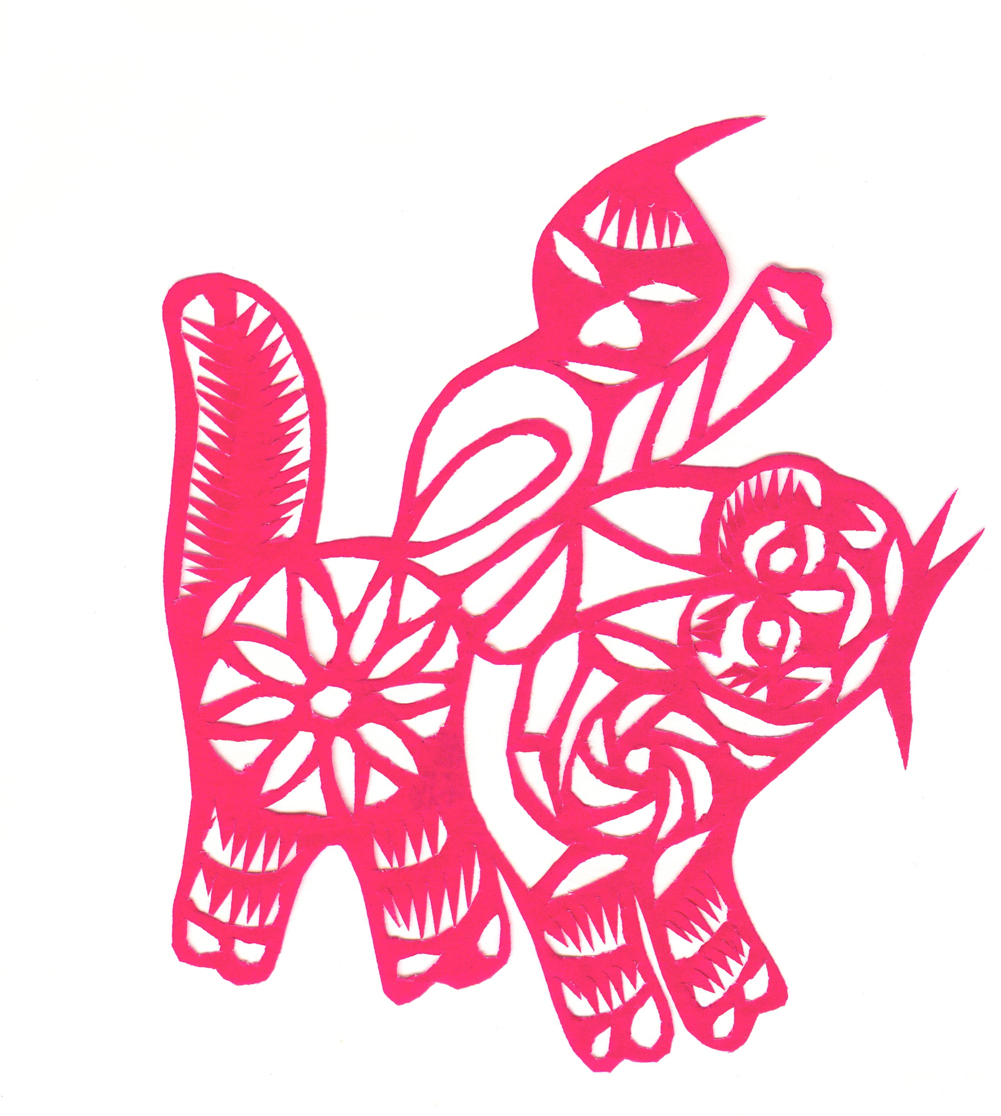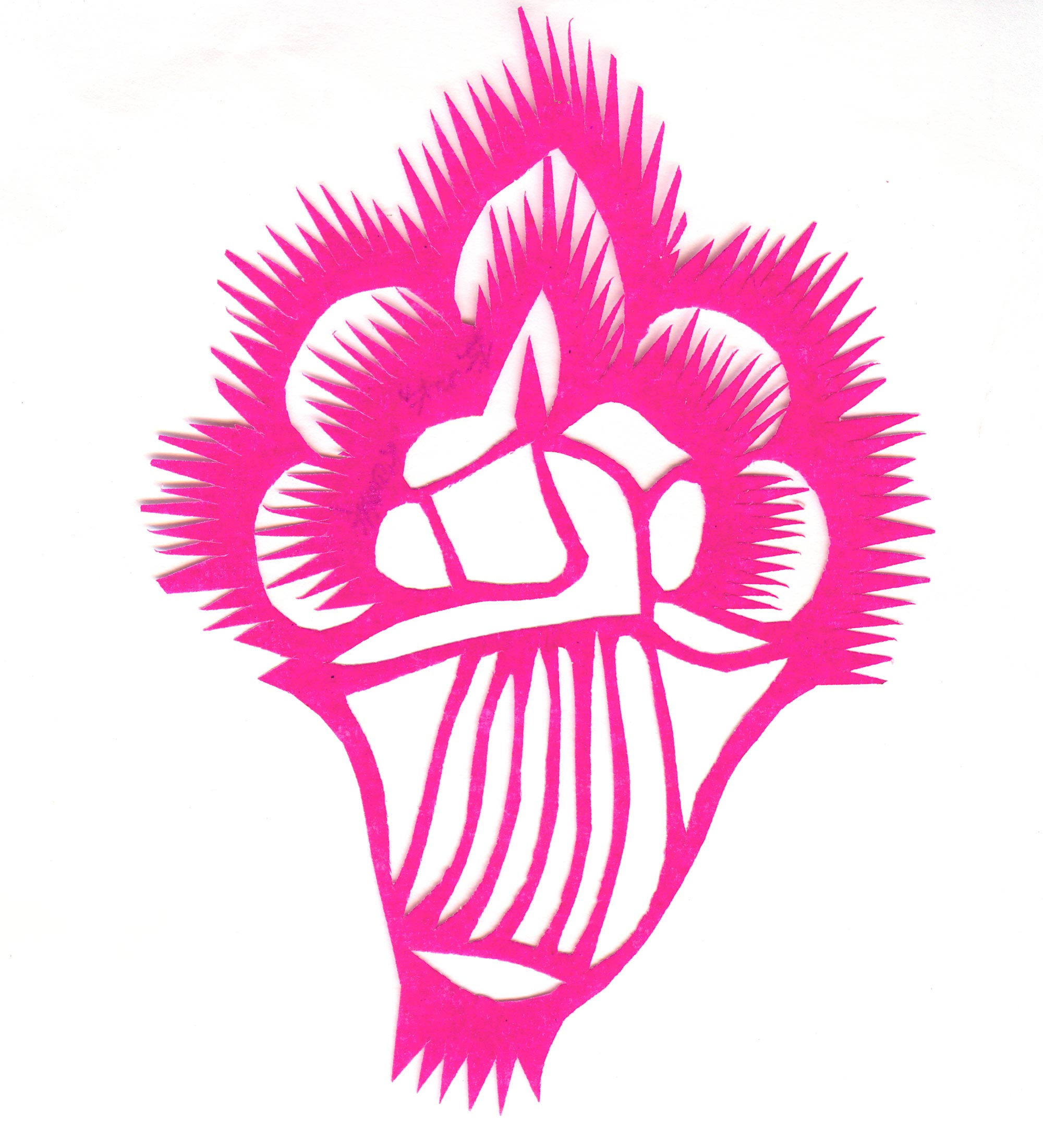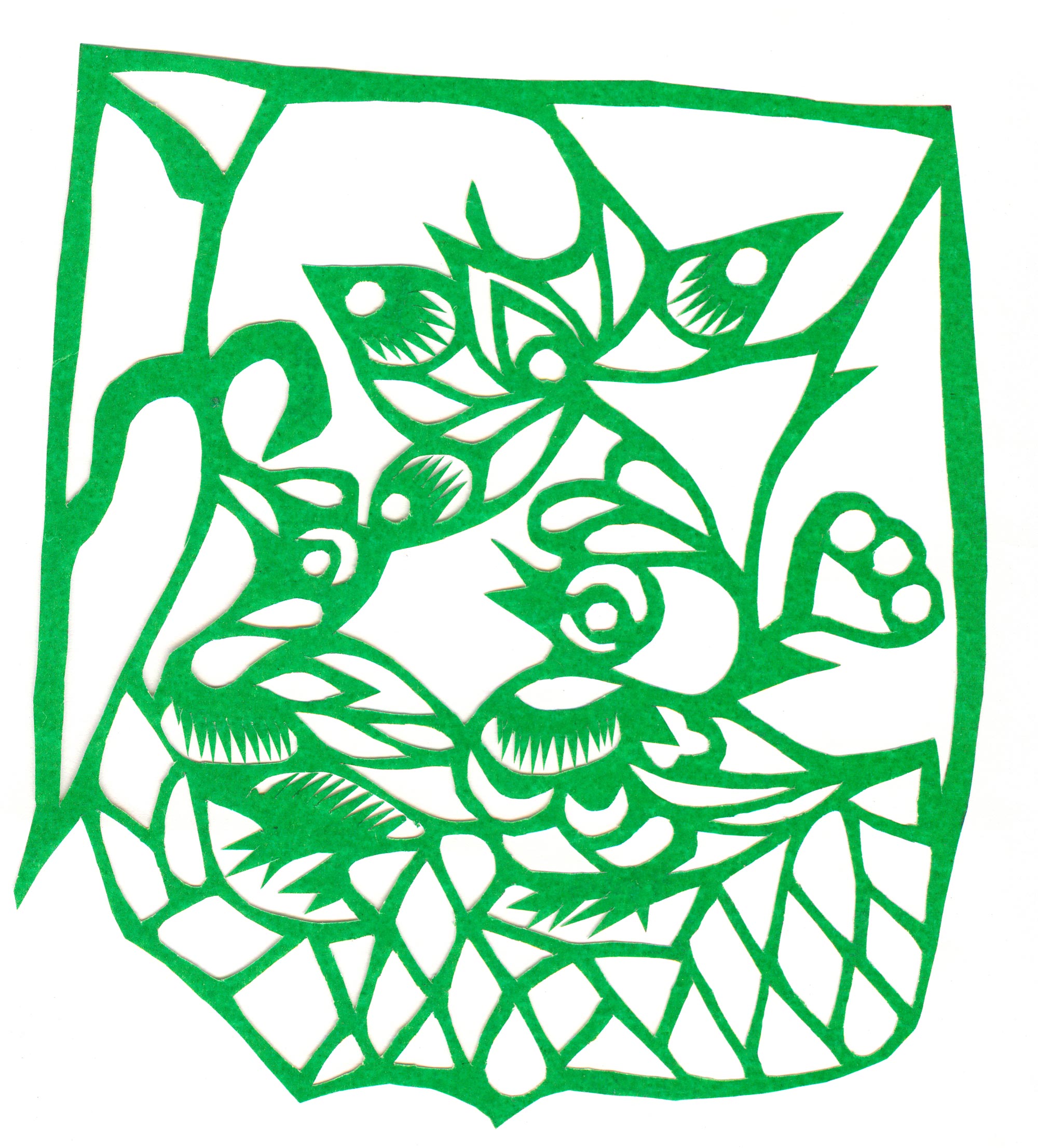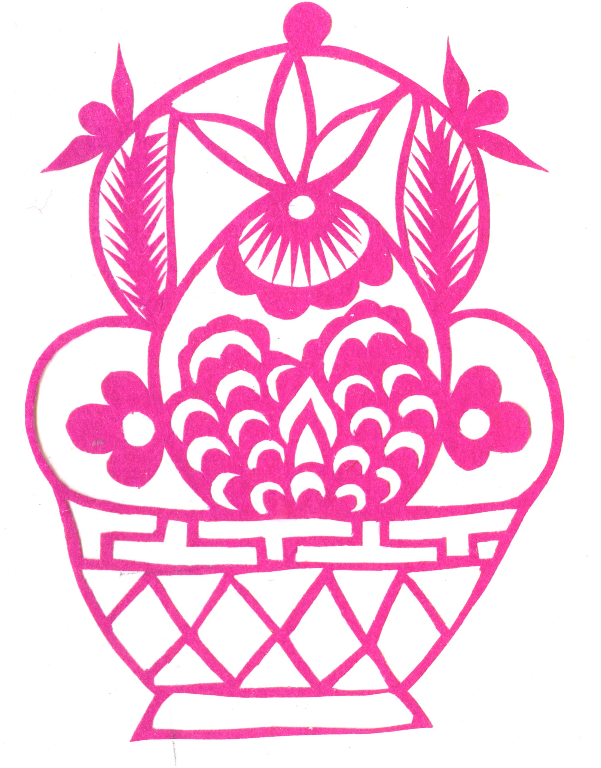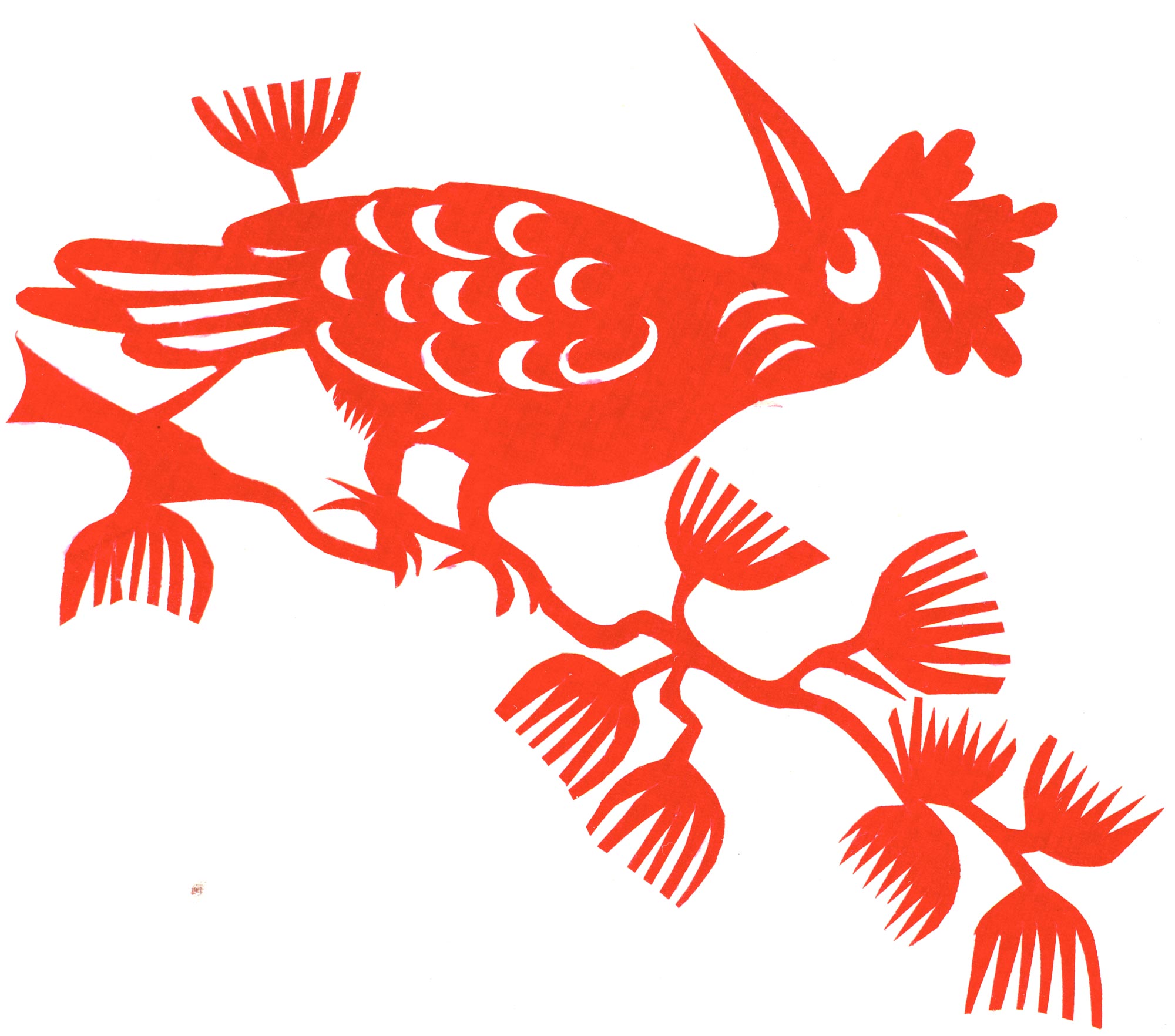 突出艺术特色:远看整体大方,绚丽多姿,近看形象生动,栩栩如生,有春意盎然,鸟语花香之感。程玉花的剪纸较好地传承了黄陵剪纸工巧细腻的地域特点,内容多为花草、鸟禽,造型夸张秀美,刀工娴熟严谨。