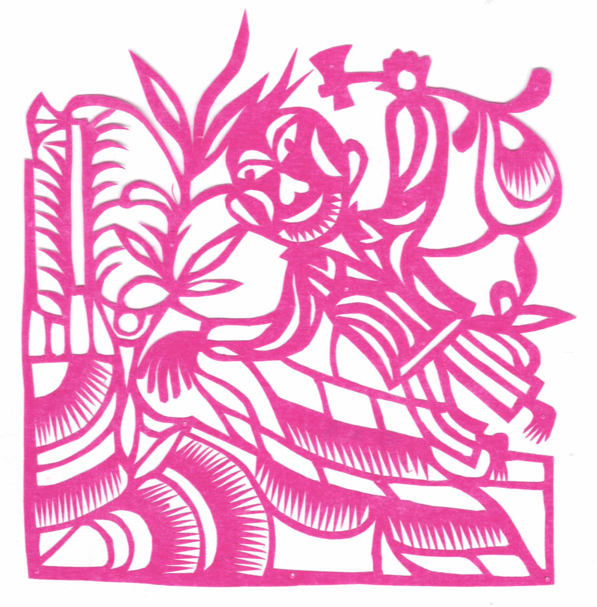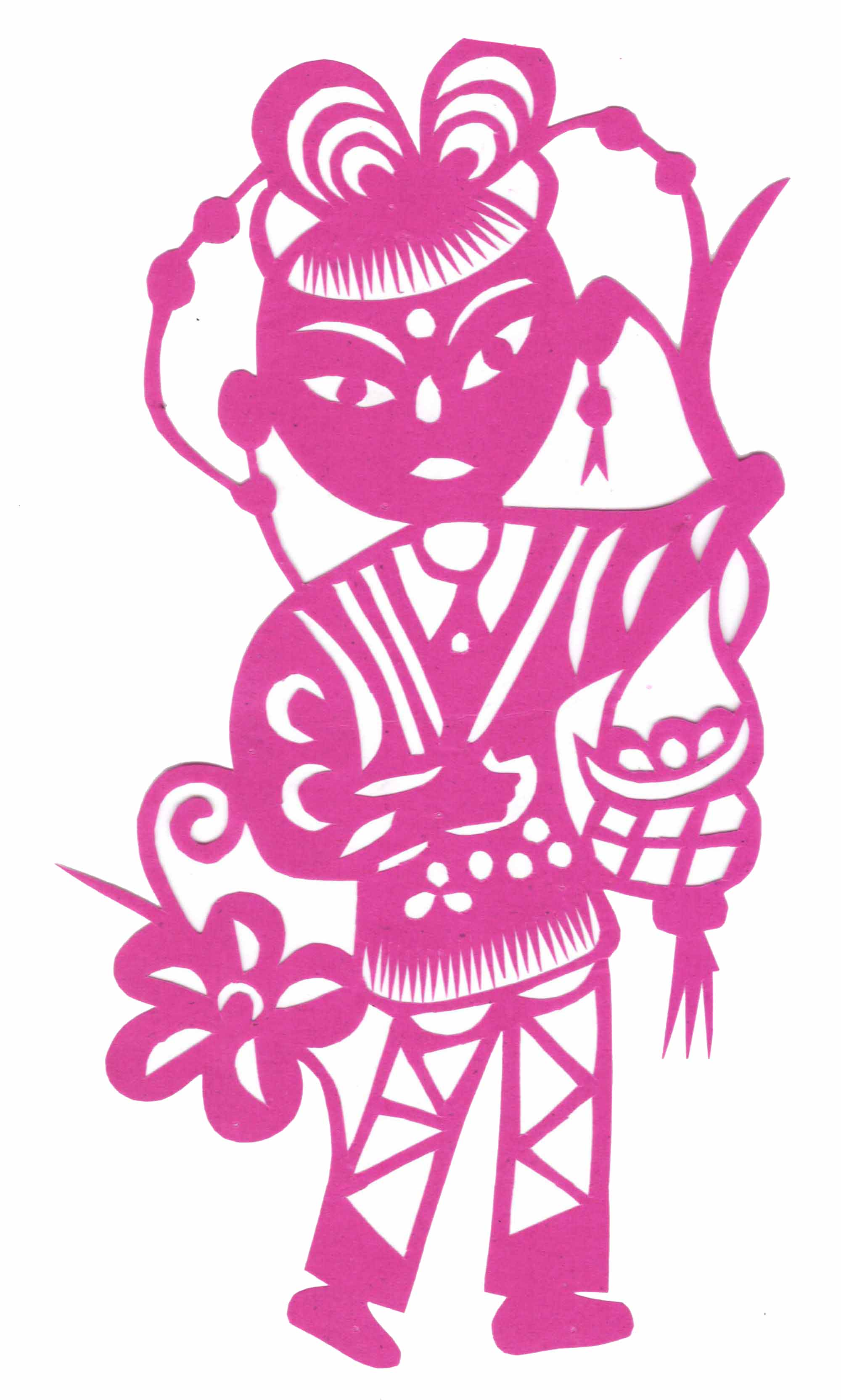 何亚平,女,1961年10月初五生,汉族,,小学文化程度,农民。祖母不会剪花,但擅于扎花。外祖父农民,不识字,有盖房和木匠的手艺,会做家具、农具,在当地很有影响。外祖母剪花、扎花、织布、纺线等女红活都精湛娴熟。父亲何宝财,继承了祖父的手艺。母亲田烈英擅于剪花、扎花、捏面花。家中老姑会剪纸扎花等,在村里影响较大。