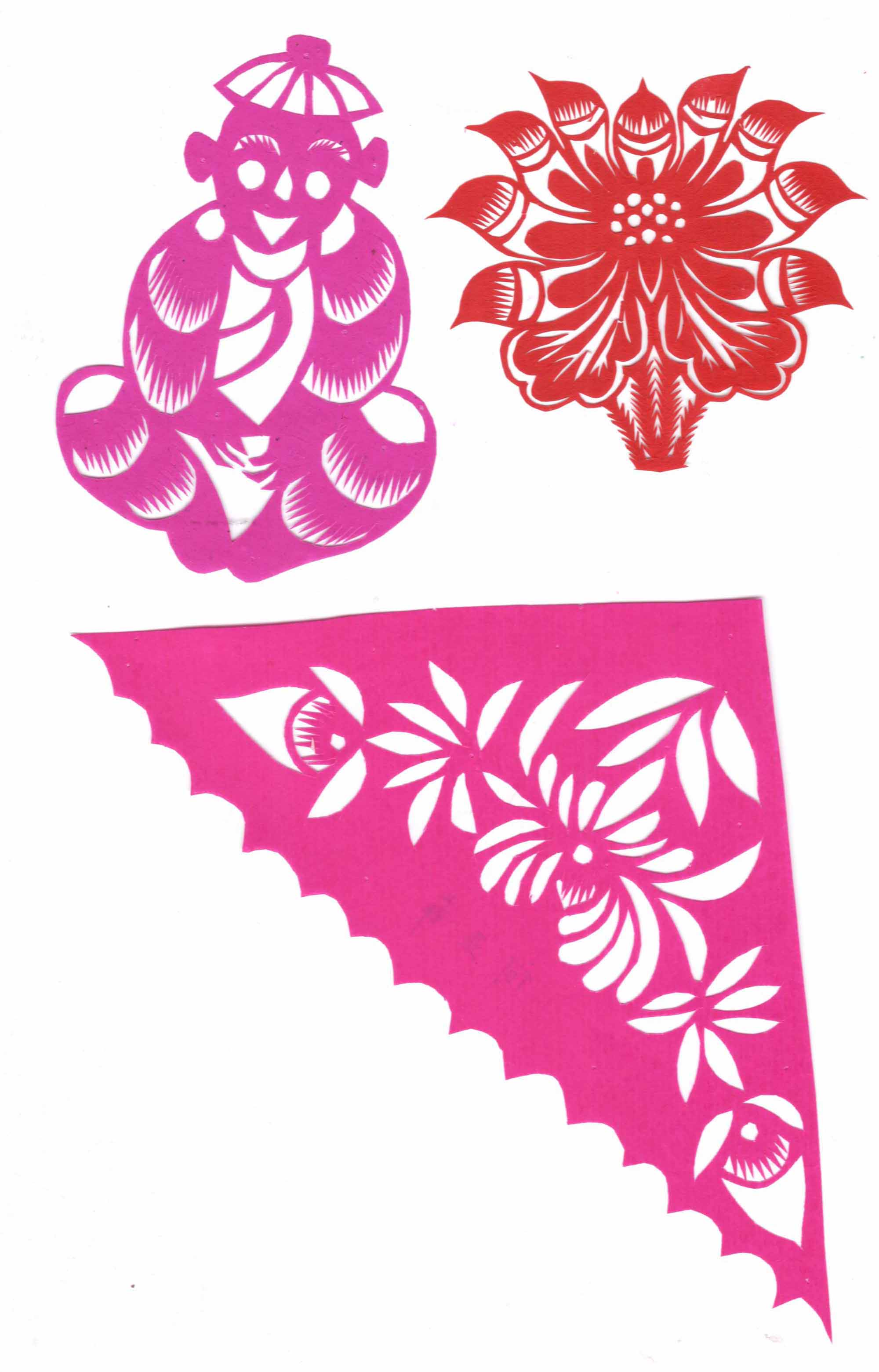 10岁时特别喜欢剪纸,那时祖母和母亲嫌她年龄小,把剪刀藏着不让用,她便悄悄的看她们把剪刀藏在啥地方,待到母亲上地劳动后,偷着拿出来剪花。母亲回来后发现她剪的还不错,也喜爱剪纸,就不再藏剪刀了。刚开始时,她把母亲的花样用煤油灯熏制成样子,拓着剪,到13岁后,便开始尝试冒剪。当时窗花兴彩色拼贴,先把花、叶、干单独剪出,再拼贴到窗户纸上,也拼贴鸟和动物。母亲是她的剪纸老师,但母亲不太会讲,只让她多看多练。那时候村上好多人都剪窗花,在这个氛围中耳濡目染,看一看,练一练自然也就会了。