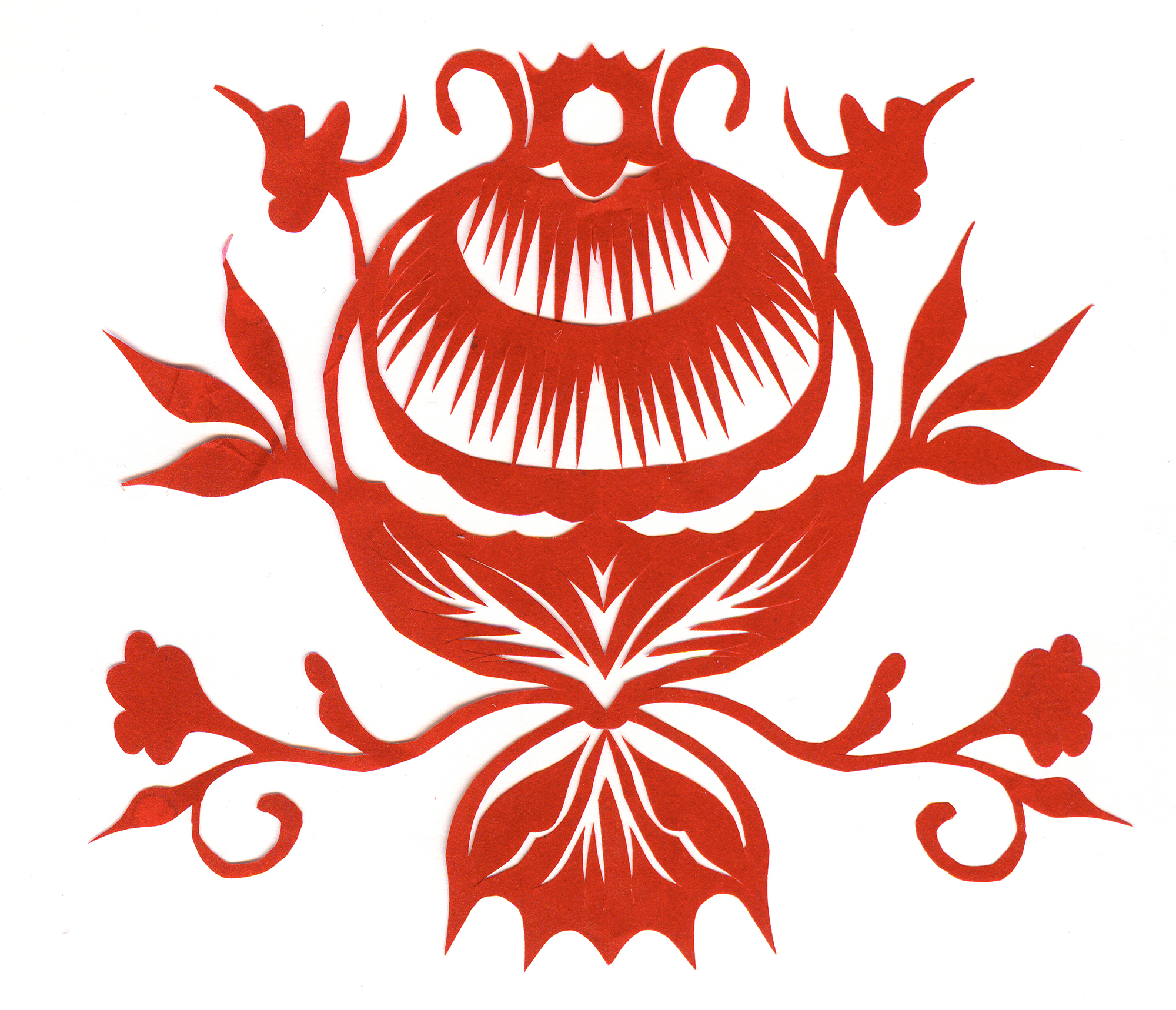 兰玉霞姊妹五人,她排行老二,上有一姐姐,下有二妹妹一弟弟。她10岁上学,一直上到高中。那时高考差了几分,由于家里穷,也没有补习。高中毕业后在田庄镇中学任教,由于不能转正,自己又没有大专文凭,就辞职了。兰玉霞五六岁时就喜爱画莲花。14岁时开始了剪窗花。20岁左右,便不要样子开始冒剪,虽然剪的不好,但对剪纸练习打下了基础,那时啥内容都剪,最喜欢剪莲花,因莲花色美形美,特别是莲花粉粉的色彩,后来对莲花的纯洁美好的寓意,懂得更多也更为喜欢。在当民办教师期间,她也代美术课,给学生讲一些画画的知识。过年用的窗花、炕围花都由她剪由她贴,剪的窗花一年一个样子,没有重复过,村上的姑娘都来替样子。她最喜欢最擅长的是剪蝴蝶,村上人把她称为蝴蝶仙子。除了会剪之外,她还会绣花、捏面花。由于性格外向,爱说爱笑,还爱唱歌跳舞。