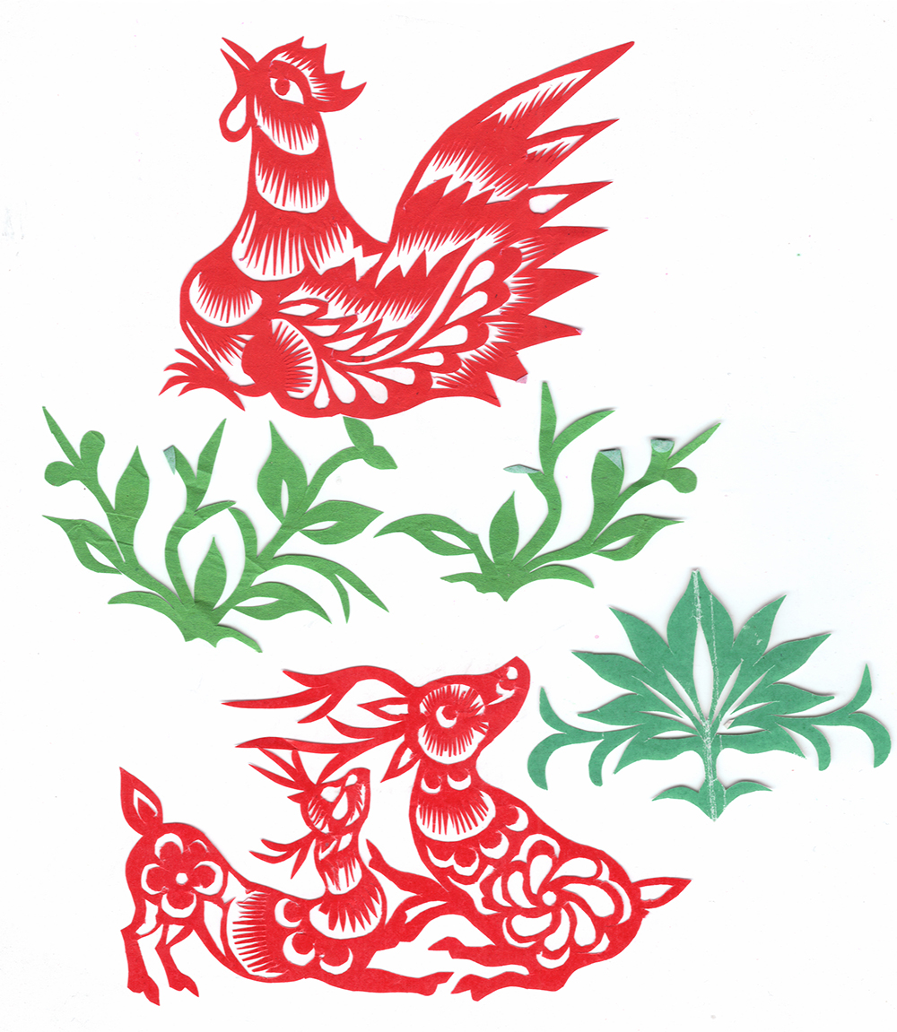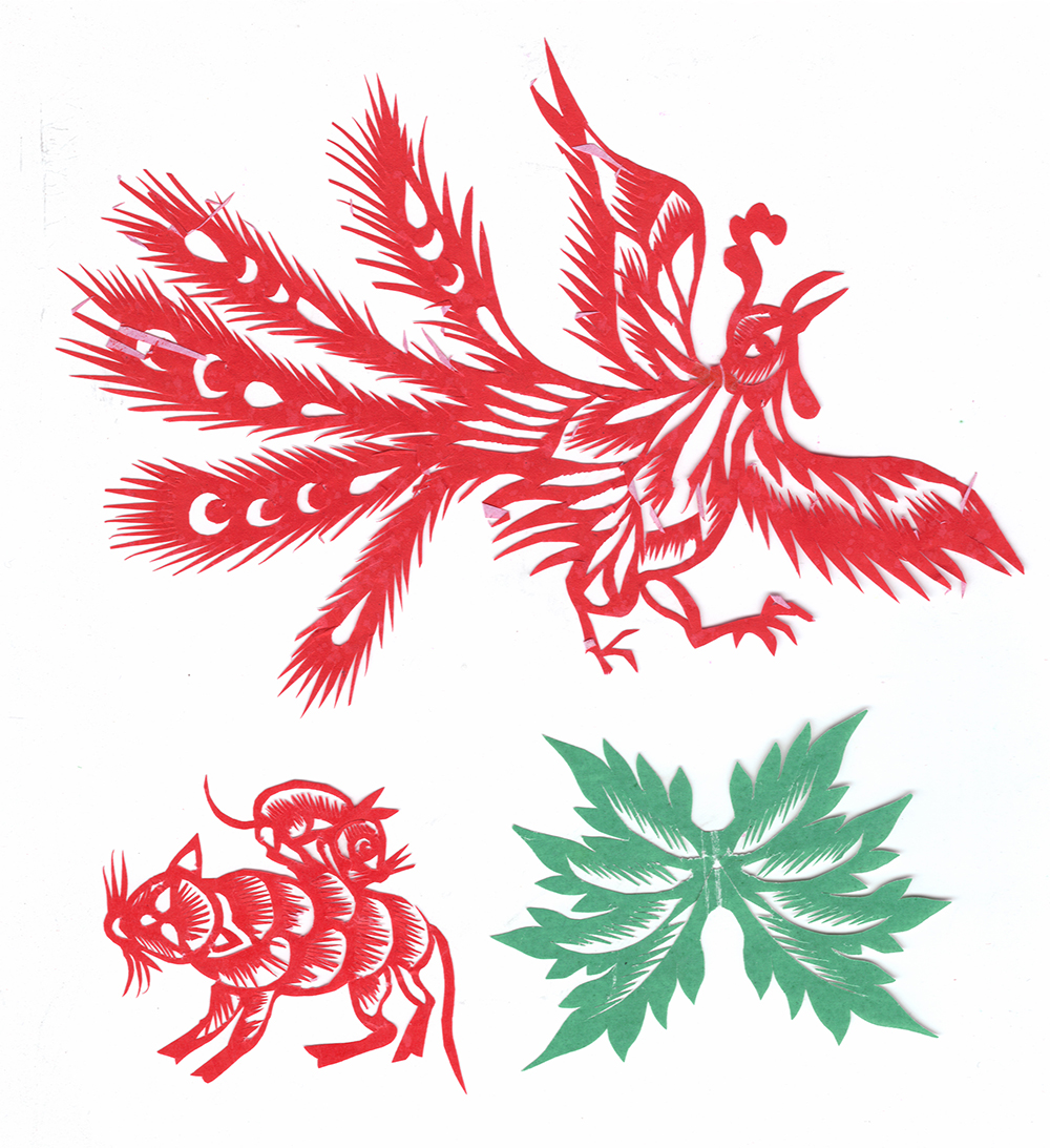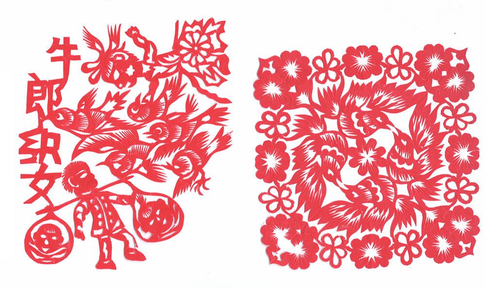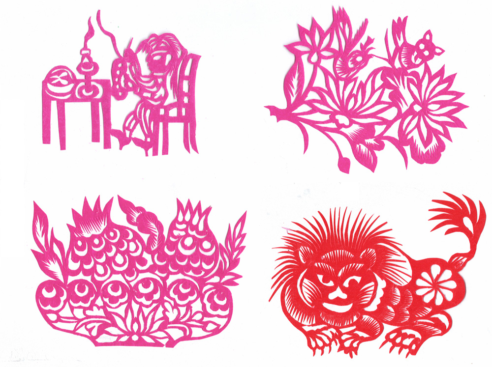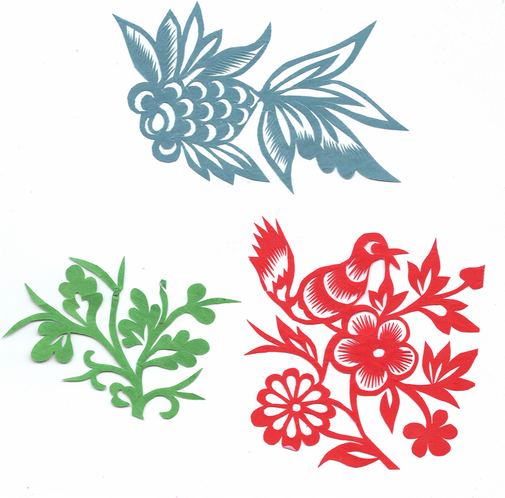 李淑珍姊妹5人,她排老二,上有一姐,下有两弟一妹。她11岁上小学,一直上到高中毕业。母亲是她剪纸上的启蒙老师,母亲剪剪纸,她便跟上剪,母亲捏面花,她便跟上捏。母亲从来没有给她讲过要如何剪,她只是在一边看母亲如何下剪,如何造型?当母亲剪好后,她便把母亲的剪纸花样默记在心里,等下次自己剪时便可回忆剪出来。对于剪纸父母也不管,想剪就剪,但如果用买回来的好纸剪,母亲就不让。因那时家里特别穷,买几张红纸很不容易,母亲怕她把纸浪费了。小时候一直用废书纸学剪花,因为用的是废纸,不怕剪坏,剪的时候就特别的大胆,看见个啥剪个啥,看鸟活跃的很,好看的很,就想把鸟剪出来。在学校给同学、老师都剪过剪纸,毕业时给老师送了两幅碗架对子,一组碗架板子。在学校办学习专栏,她便用剪纸装饰花边,用剪纸装饰报头,剪时老师一直坐在她的旁边,紧张得手都出汗了。化学老师曾给了她好多纸,让她剪花用,过年时她也把剪好的窗花送给化学老师。由于剪花水平高,常受到老师的表扬。15岁之后,家里过年用的窗花母亲便很少剪了,把剪窗花贴窗花的事情交给她来做。除给家里剪窗花外,李淑珍还给外祖母家剪给村里人剪。除会剪纸外,李淑珍跟母亲及村里的老人学会了捏面花、扎花、做针线活等女红活手艺。