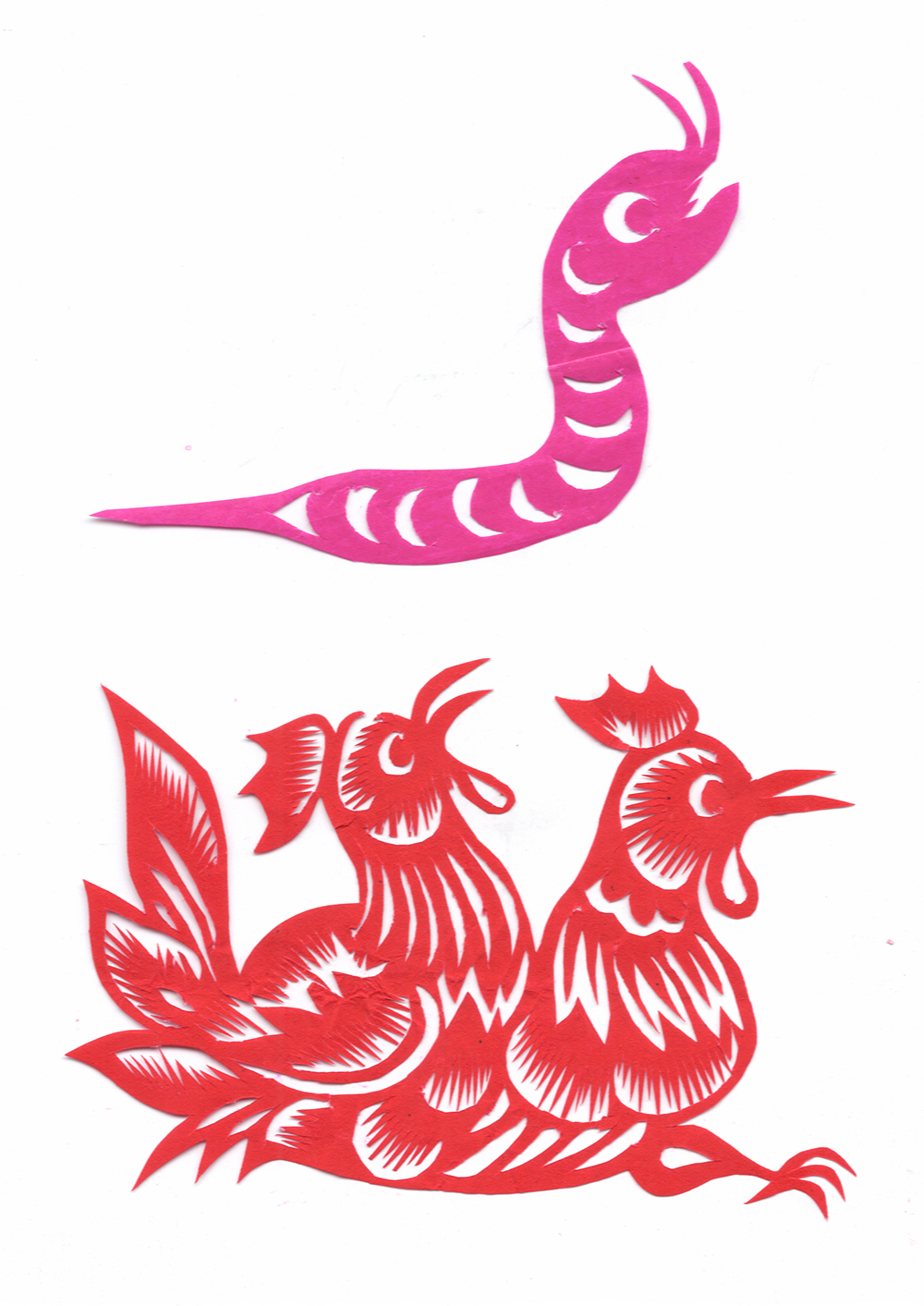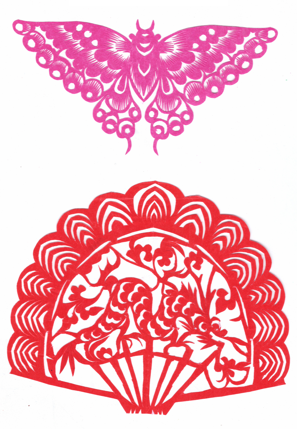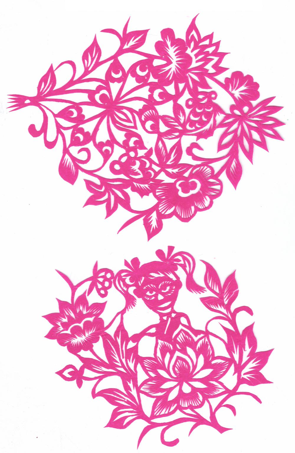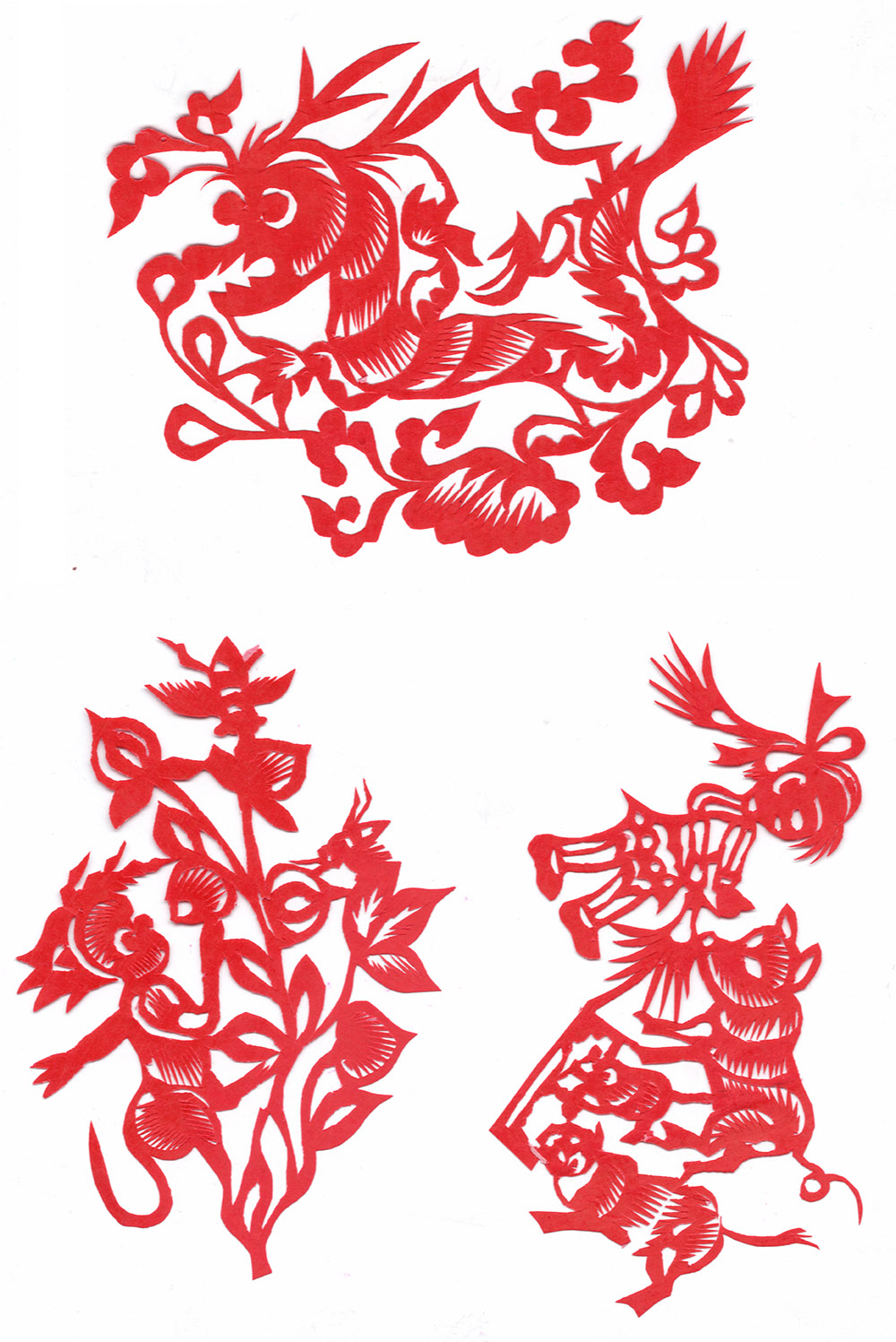 李淑珍姊妹5人,她排老二,上有一姐,下有两弟一妹。她11岁上小学,一直上到高中毕业。母亲是她剪纸上的启蒙老师,母亲剪剪纸,她便跟上剪,母亲捏面花,她便跟上捏。母亲从来没有给她讲过要如何剪,她只是在一边看母亲如何下剪,如何造型?当母亲剪好后,她便把母亲的剪纸花样默记在心里,等下次自己剪时便可回忆剪出来。对于剪纸父母也不管,想剪就剪,但如果用买回来的好纸剪,母亲就不让。因那时家里特别穷,买几张红纸很不容易,母亲怕她把纸浪费了。小时候一直用废书纸学剪花,因为用的是废纸,不怕剪坏,剪的时候就特别的大胆,看见个啥剪个啥,看鸟活跃的很,好看的很,就想把鸟剪出来。在学校给同学、老师都剪过剪纸,毕业时给老师送了两幅碗架对子,一组碗架板子。在学校办学习专栏,她便用剪纸装饰花边,用剪纸装饰报头,剪时老师一直坐在她的旁边,紧张得手都出汗了。化学老师曾给了她好多纸,让她剪花用,过年时她也把剪好的窗花送给化学老师。由于剪花水平高,常受到老师的表扬。15岁之后,家里过年用的窗花母亲便很少剪了,把剪窗花贴窗花的事情交给她来做。除给家里剪窗花外,李淑珍还给外祖母家剪给村里人剪。除会剪纸外,李淑珍跟母亲及村里的老人学会了捏面花、扎花、做针线活等女红活手艺。