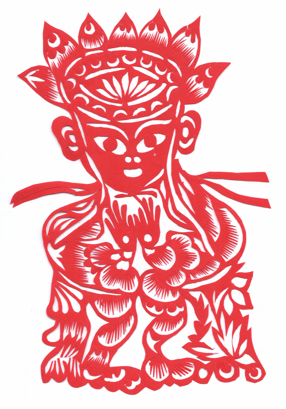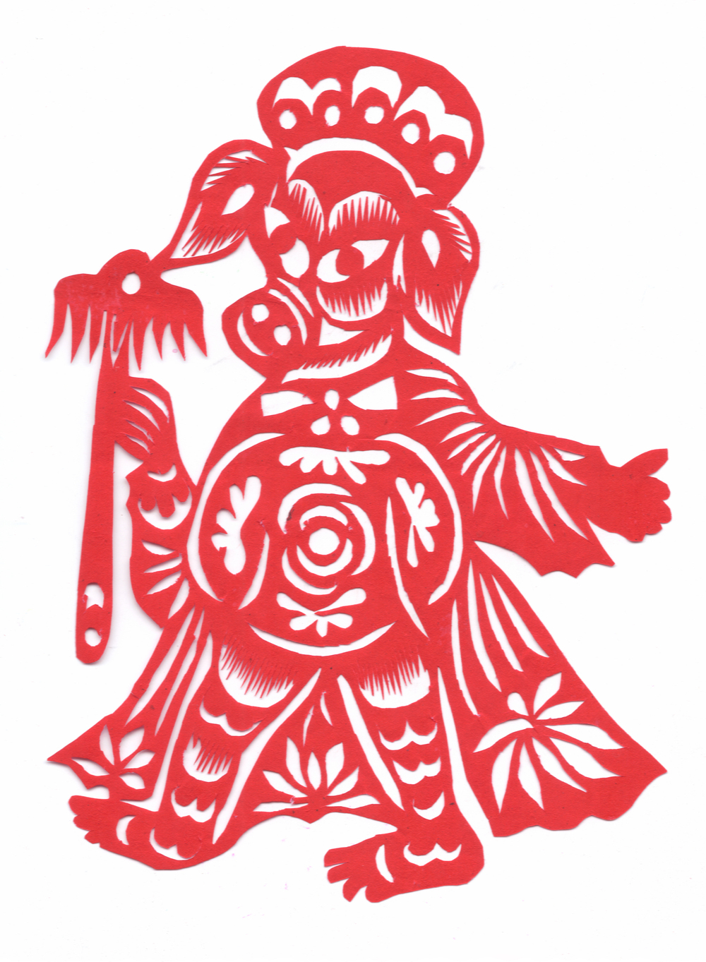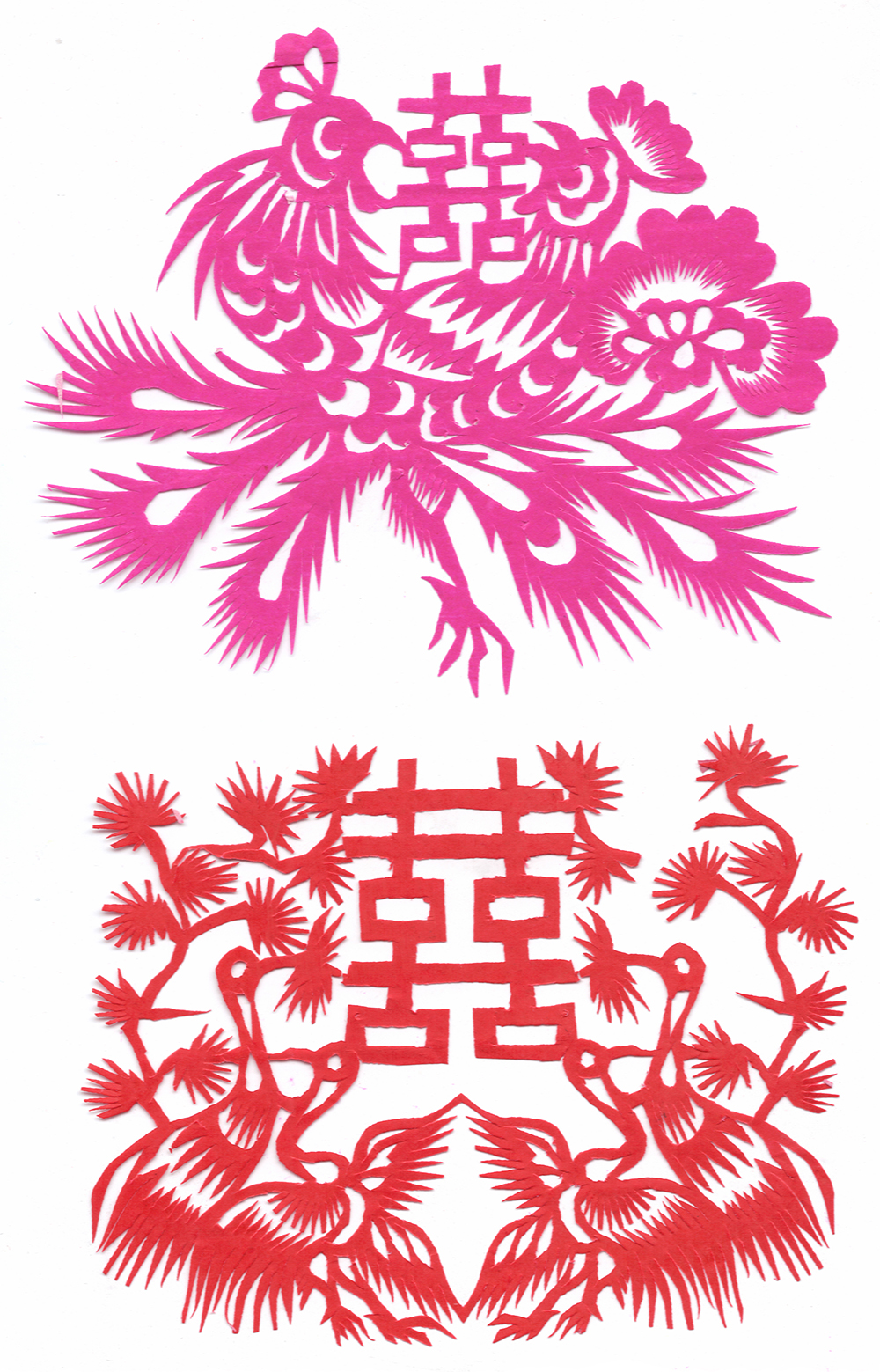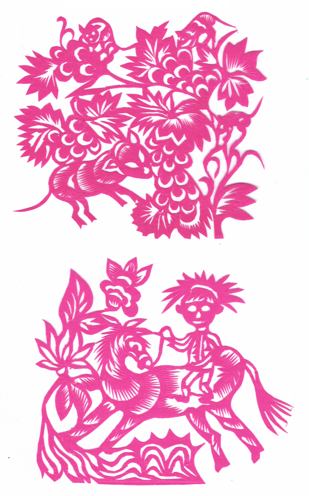李淑珍姊妹5人,她排老二,上有一姐,下有两弟一妹。她11岁上小学,一直上到高中毕业。母亲是她剪纸上的启蒙老师,母亲剪剪纸,她便跟上剪,母亲捏面花,她便跟上捏。母亲从来没有给她讲过要如何剪,她只是在一边看母亲如何下剪,如何造型?当母亲剪好后,她便把母亲的剪纸花样默记在心里,等下次自己剪时便可回忆剪出来。对于剪纸父母也不管,想剪就剪,但如果用买回来的好纸剪,母亲就不让。因那时家里特别穷,买几张红纸很不容易,母亲怕她把纸浪费了。小时候一直用废书纸学剪花,因为用的是废纸,不怕剪坏,剪的时候就特别的大胆,看见个啥剪个啥,看鸟活跃的很,好看的很,就想把鸟剪出来。在学校给同学、老师都剪过剪纸,毕业时给老师送了两幅碗架对子,一组碗架板子。在学校办学习专栏,她便用剪纸装饰花边,用剪纸装饰报头,剪时老师一直坐在她的旁边,紧张得手都出汗了。化学老师曾给了她好多纸,让她剪花用,过年时她也把剪好的窗花送给化学老师。由于剪花水平高,常受到老师的表扬。15岁之后,家里过年用的窗花母亲便很少剪了,把剪窗花贴窗花的事情交给她来做。除给家里剪窗花外,李淑珍还给外祖母家剪给村里人剪。除会剪纸外,李淑珍跟母亲及村里的老人学会了捏面花、扎花、做针线活等女红活手艺。