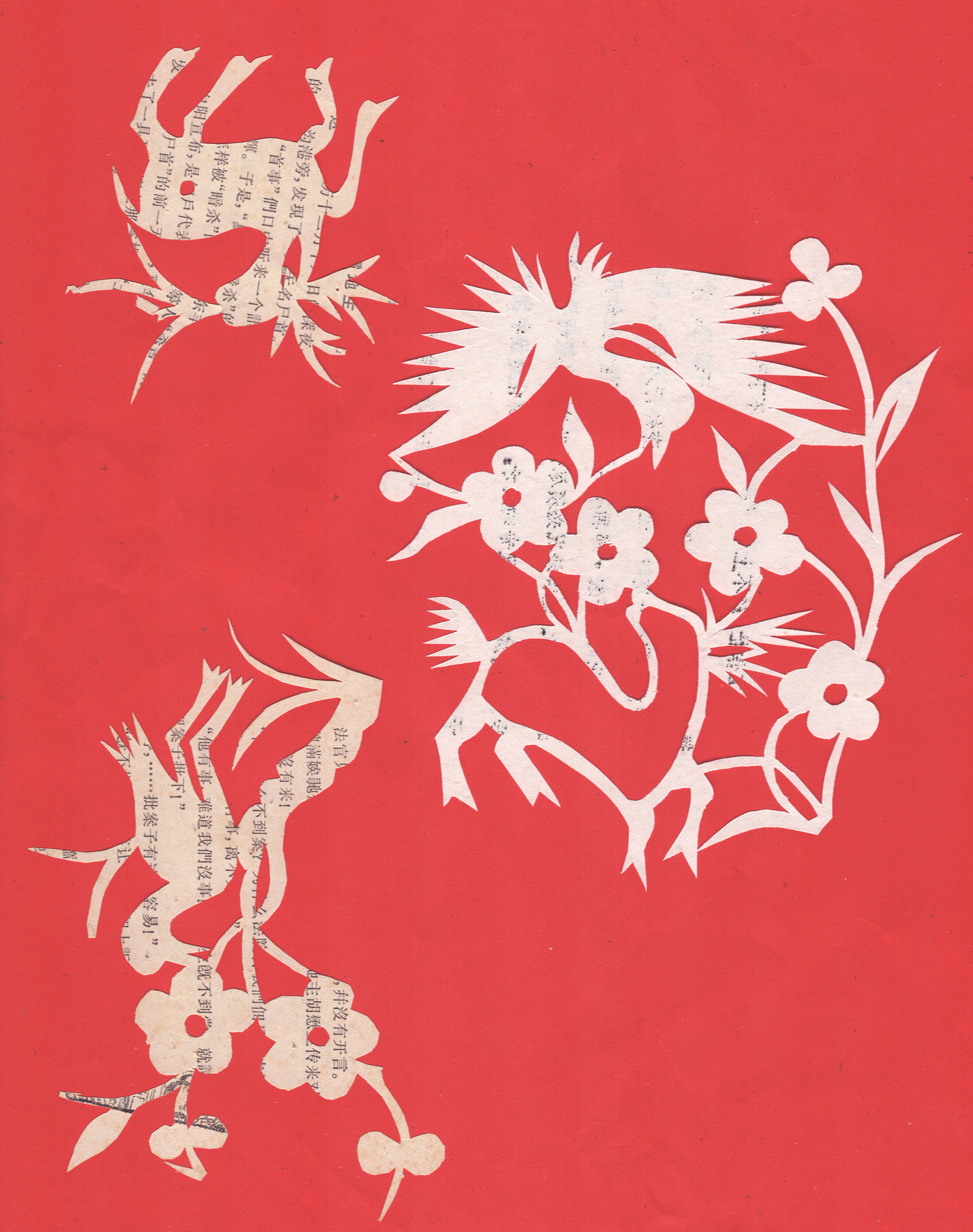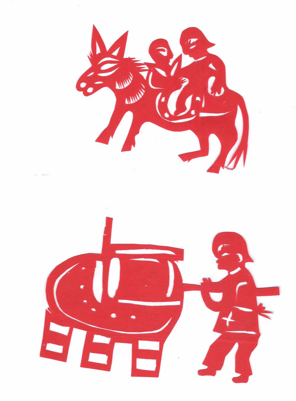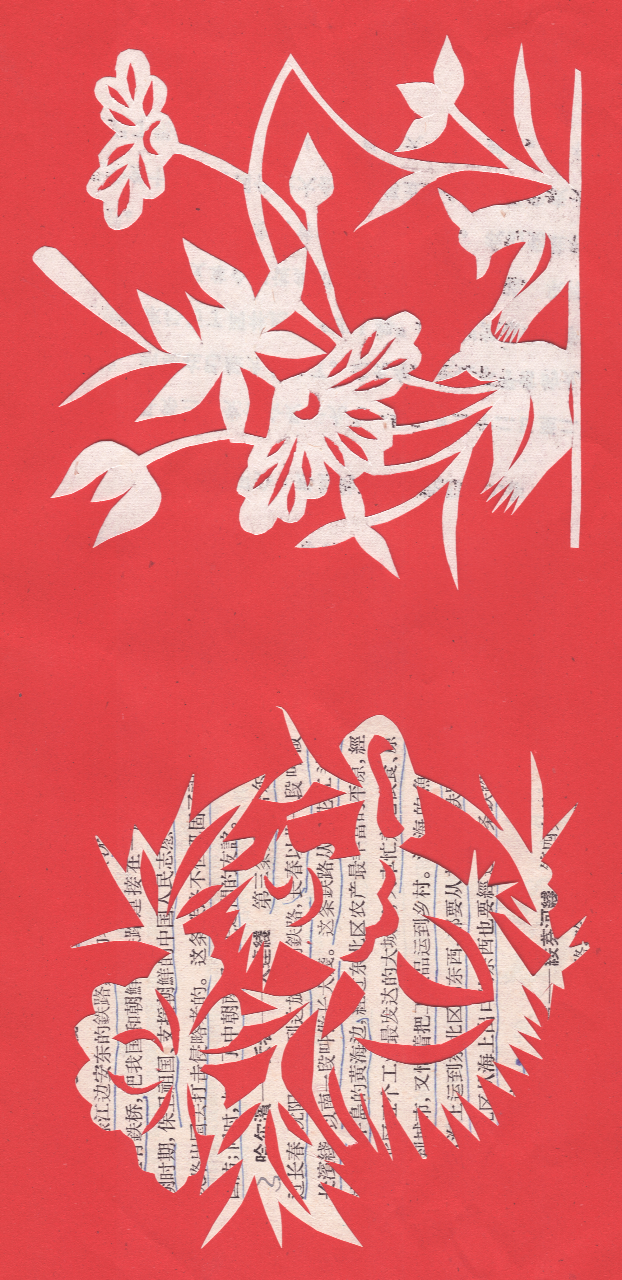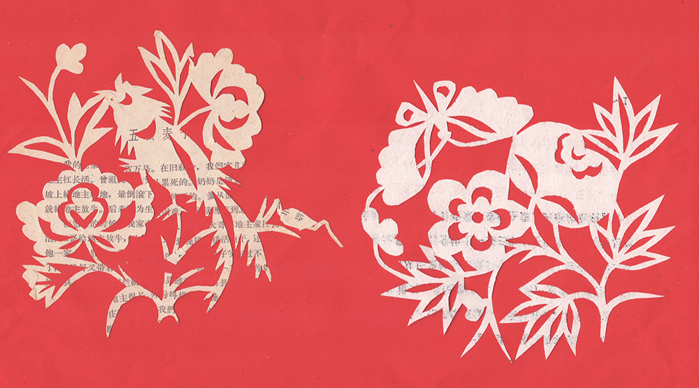 李竹花姊妹5人,她排老大,下有4个妹妹,一个弟弟。她6岁上学,一直上到初中。那时年龄大了,学校精简学生,她便回到家里做家务,跟上父母劳动,每天可以挣两分工。小时候她经常看到村里的老人剪花,开始不会剪,拿把剪刀乱剪乱剜,剪的多了也能剪出一个大样。她便找来很多窗花熏样,拓着别人的窗花剪,慢慢地剪得越来越好,最后可以冒剪出自己心中的样子。当时家里没有纸,她就找来废烟盒废报纸剪,常常剪些花草动物纹样。父母对于她剪花从来不管。但剪花一般是在没有农活或阴雨天时,弟弟妹妹自己玩,她就在家里剪纸。过年的窗花和板架云子,内容多是牡丹、菊花、动物,从不贴人。过年时,她也为没有女儿或剪不了窗花的人家剪窗花。除会剪花,她还会捏面花、裁衣服,这些手工艺都是看了别人的样子后自己学会的。