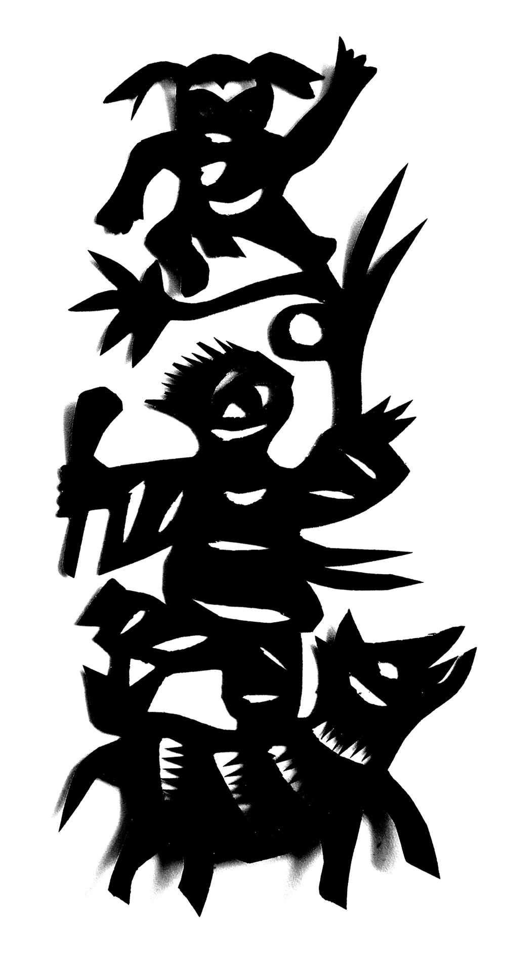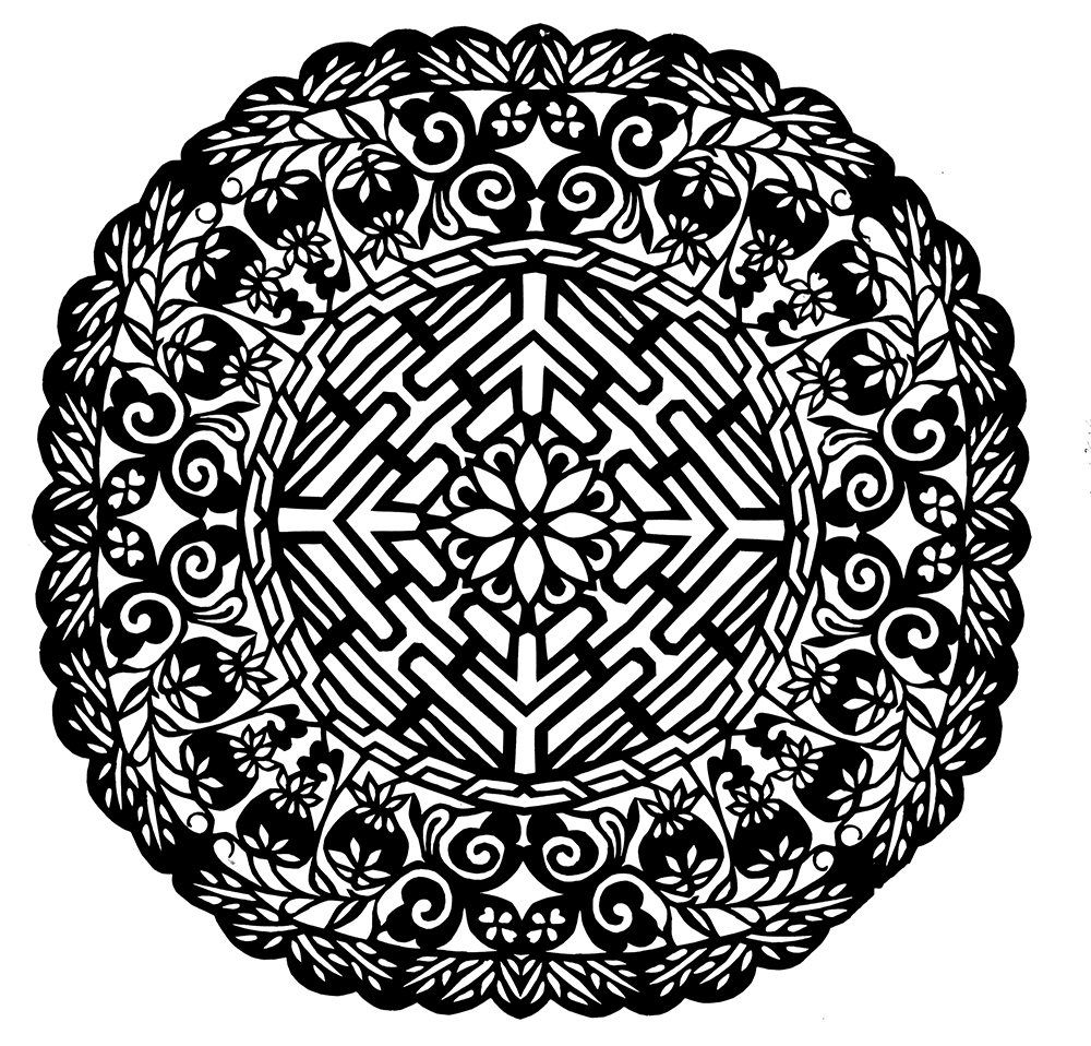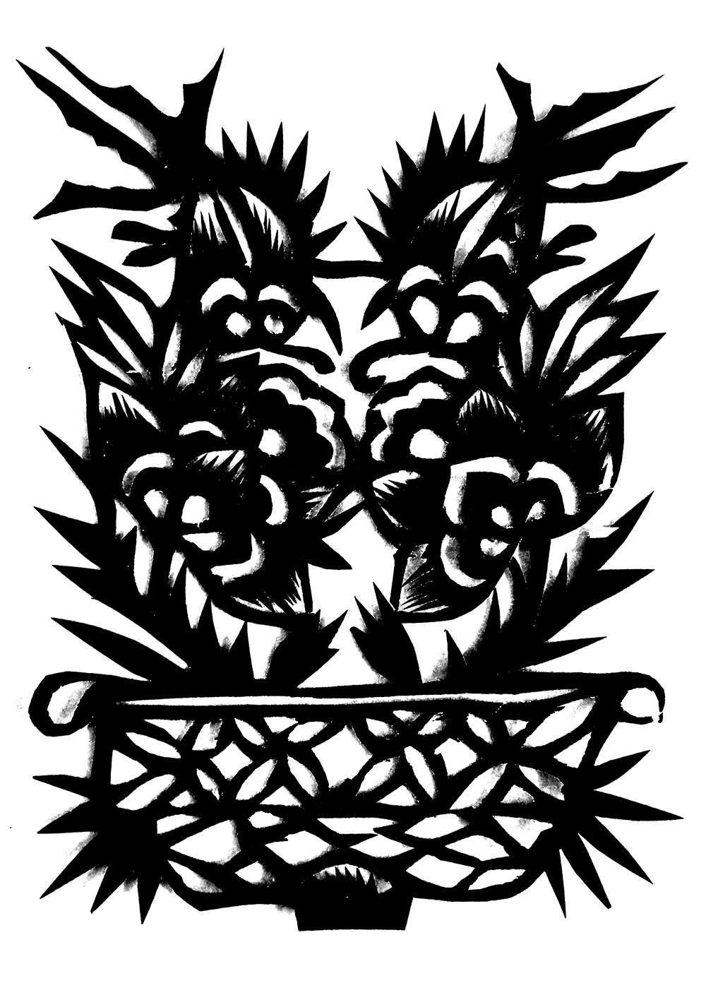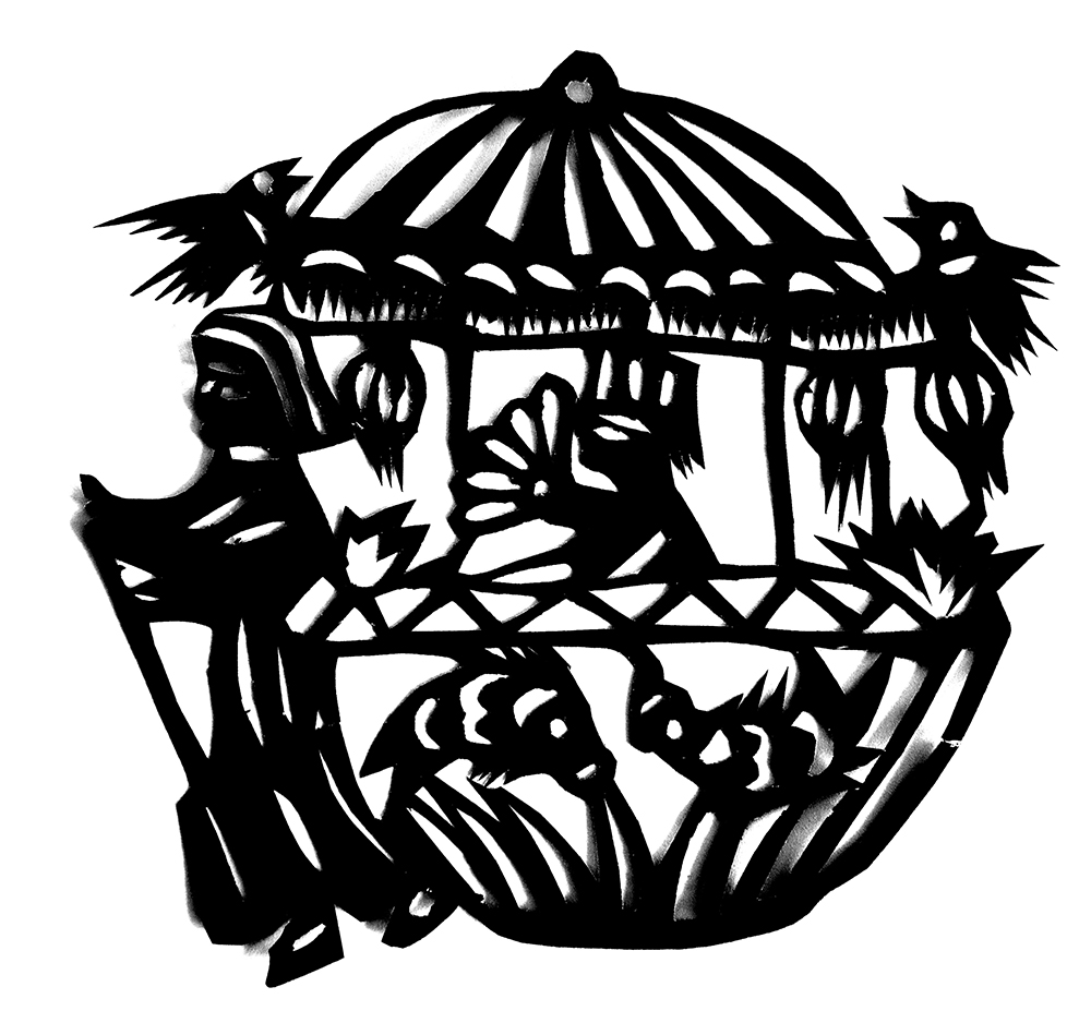 李竹花姊妹5人,她排老大,下有4个妹妹,一个弟弟。她6岁上学,一直上到初中。那时年龄大了,学校精简学生,她便回到家里做家务,跟上父母劳动,每天可以挣两分工。小时候她经常看到村里的老人剪花,开始不会剪,拿把剪刀乱剪乱剜,剪的多了也能剪出一个大样。她便找来很多窗花熏样,拓着别人的窗花剪,慢慢地剪得越来越好,最后可以冒剪出自己心中的样子。当时家里没有纸,她就找来废烟盒废报纸剪,常常剪些花草动物纹样。父母对于她剪花从来不管。但剪花一般是在没有农活或阴雨天时,弟弟妹妹自己玩,她就在家里剪纸。过年的窗花和板架云子,内容多是牡丹、菊花、动物,从不贴人。过年时,她也为没有女儿或剪不了窗花的人家剪窗花。除会剪花,她还会捏面花、裁衣服,这些手工艺都是看了别人的样子后自己学会的。