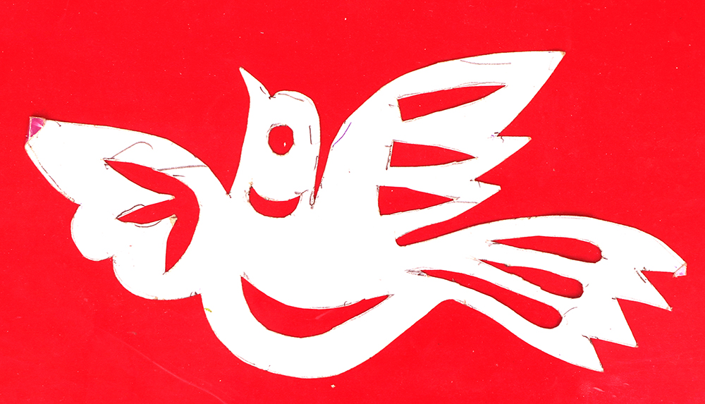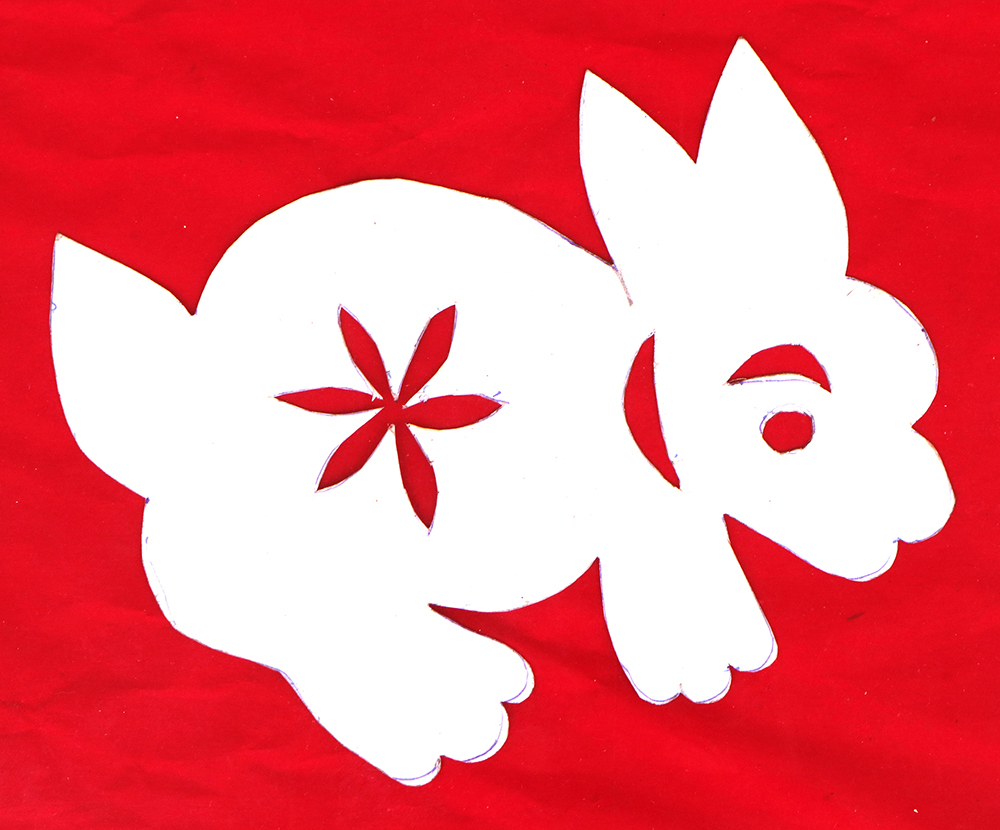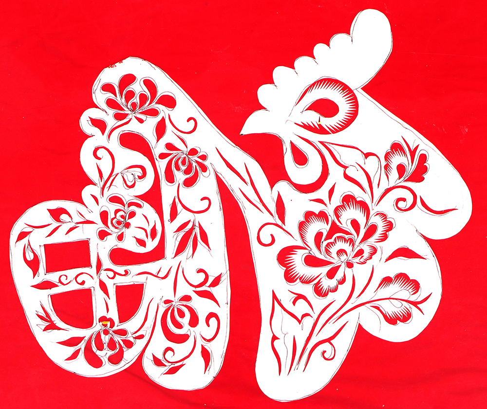 刘小侠姊妹七人,她最小,上有4个哥哥,两个姐姐。她7岁上学,上到三年级怎么都不愿意上学,父母没有办法,只有随女儿的决定。刘小侠不上学后就在家里学着剪花。当时学窗花也没有拜过师,第一年只是看村上人贴出来的样子,记着把它剪出来,到第二年直接冒剪,那时最喜欢花鸟。因平时农活多,家务多,没有时间剪,只有到了腊月时才集中剪一些。15岁时剪的窗花拿到太贤集上卖,因剪的窗花比较粗糙卖不动,一格窗花二分钱,大人的一格窗花卖5分,二分钱都很少有人问,腊月中的三个集会才能卖三元多。第二年窗花仍卖不动,之后再也没卖过窗花,把剩下来的窗花分给了亲戚。父母亲对于她剪花非常的支持。以前家里贴的窗花都是在集市上买的,自从12岁不上学后,开始学了窗花,家里应用的窗花、炕围花都是她来剪。