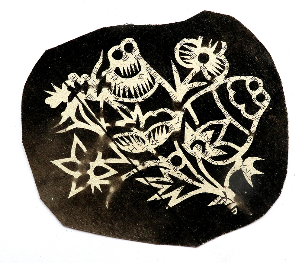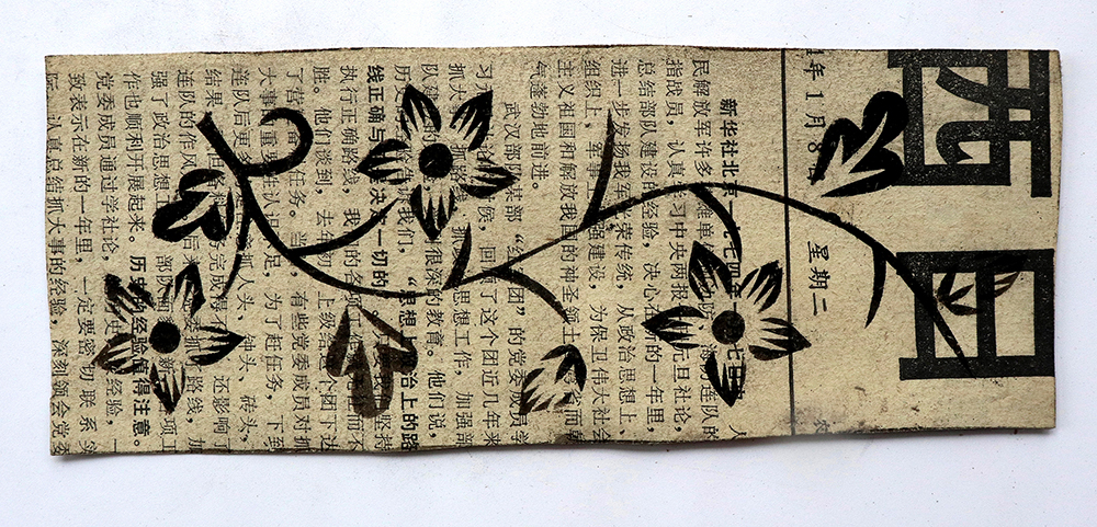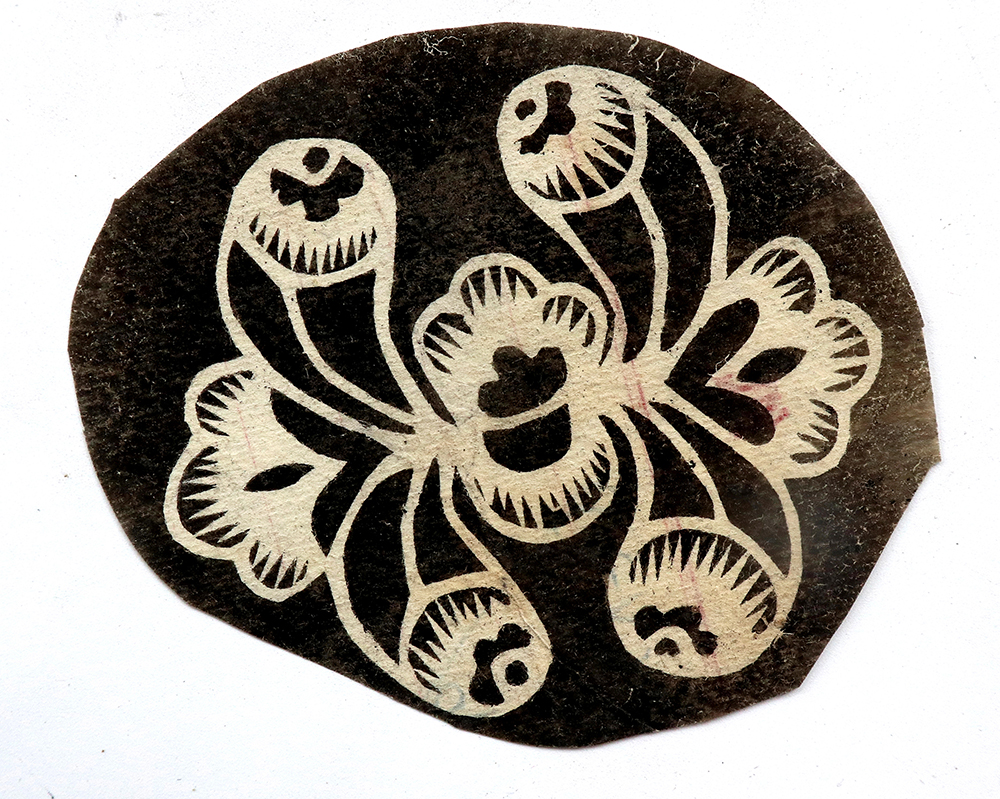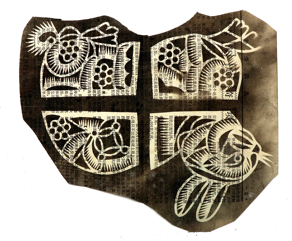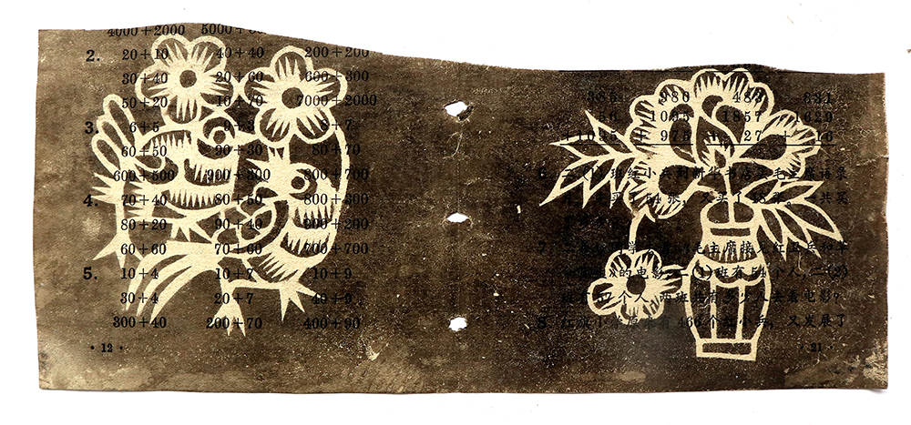 柳群叶姊妹4人,她排行老三,上有一哥哥一姐姐,下有一弟弟。她11岁上学一直上到初中。小时候家里年年剪贴窗花,她也跟着母亲剪,开始是拓样子剪,后来自己画自己剪,熟了就学着冒剪。有时看见碗上的、袋子上的或床单上的图案,她就先画下来,然后根据自己的爱好再进行修改完成,参考样子剪学了两三年,然后都是自己画着剪。学校放假时间多参加生产队劳动,给家里挣工分,到了晚上回家在煤油灯下剪窗花。过去村上家家都贴窗花,比看谁家贴的好,剪的好。当时村中的李明凤、余皎等都是村上的巧手,她经常跟着这些嫂子学剪窗花。柳群叶上小学时特别喜欢画画,至今还保存着那时画的美术本,画的有白毛女、吴琼花等。在学校一直是优秀学生,返乡后又被评为优秀团员,五好社员等荣誉。