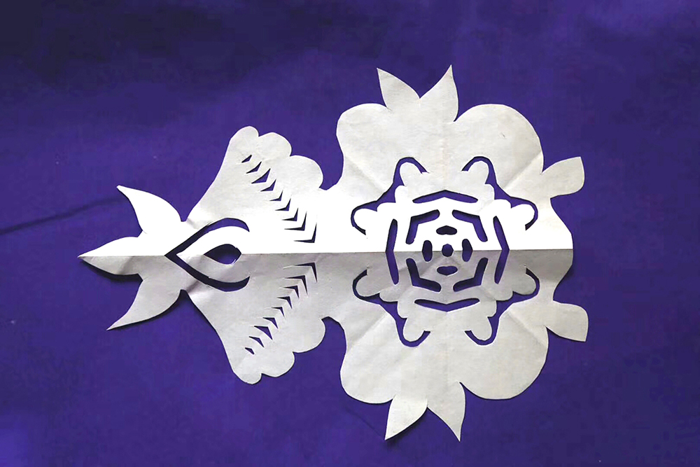 突出艺术特色:苏茂松的剪纸剪纸较好地传承了黄陵丧俗剪纸的艺术特点和其文化内涵,在其基础上又根据民俗需要创作了一些新的样式,风格古朴粗犷、文化内涵深刻。