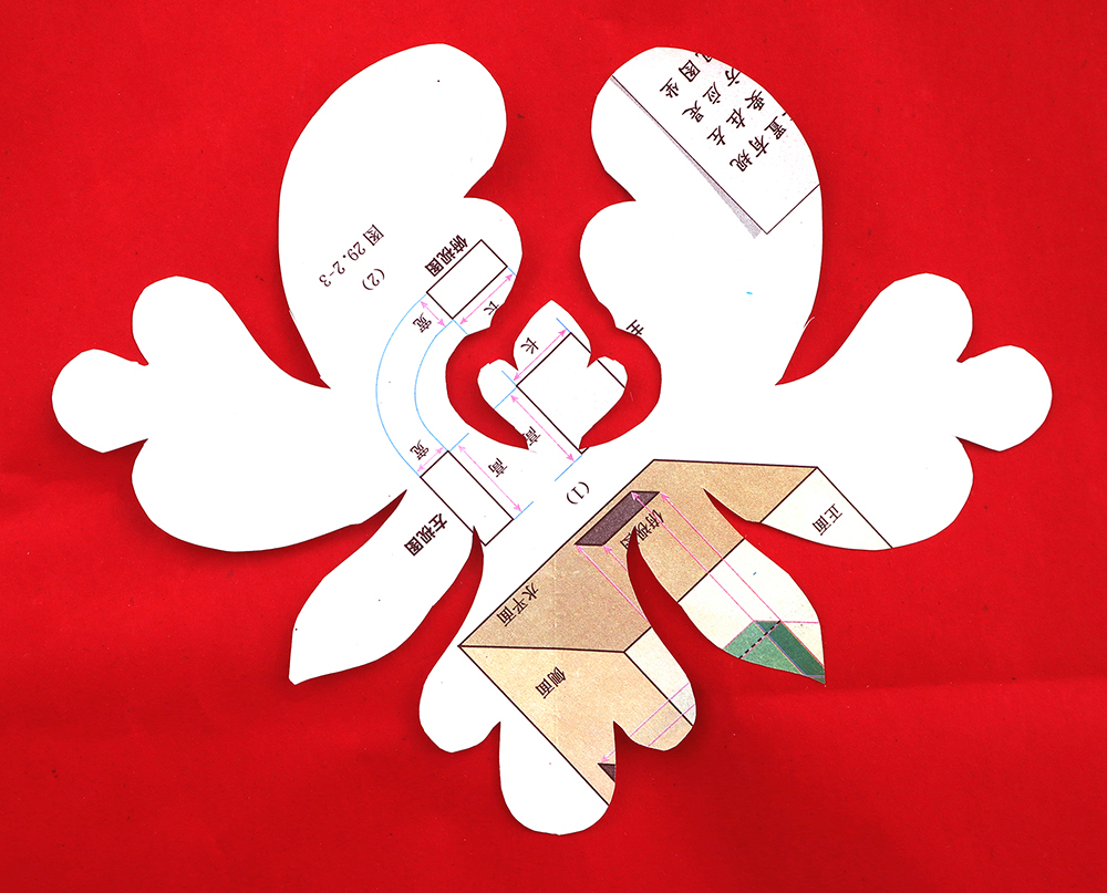 王焕珍娘家姊妹三人,她排行老三,上有一哥哥一姐姐。瓦联村距隆坊镇较远,人称川底子,村上没有学校,当时家里穷,既是有学校,家里也不会供女孩上学。小时候母亲剪花时她就在旁边看,看了就记下了。稍大些,母亲就把王焕珍当劳力用了,开始让她做针线活,为家人做鞋补袜,上地干农活。黄陵过年兴贴拼贴样式的窗花,当地称对花,就是花、叶、枝、蝴蝶、鸟鸟分开剪出,然后再兑到一块儿成为一幅完整的彩色窗花,制作一幅非常费事。以前是母亲剪窗花,后来母亲身体不好,剪窗花的事全交给了她。第一年剪窗花,用母亲积攒的样子拓着剪,第二年就不需要样子能直接冒剪。她在娘家除学会剪纸外,还跟着母亲和村上人学会了绣花,做猫头鞋,捏面花,织布纺线等女红活计。