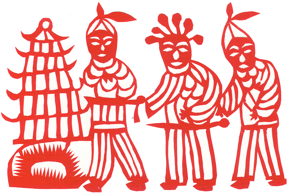 杨喜仙不但剪纸技艺娴熟,个人风格突出,还是一个一巧通百巧的多面手,她捏面花、刺绣、纸扎、扎染、织布等技艺在村上无人能比,远近闻名。1980年黄陵县文化馆邀请她参加剪纸创作班,期间她创作了一批传统窗花及戏文、传说故事和生产劳动内容的剪纸,代表作有《宝莲灯》《打铁》《哭娃》《猪》等。