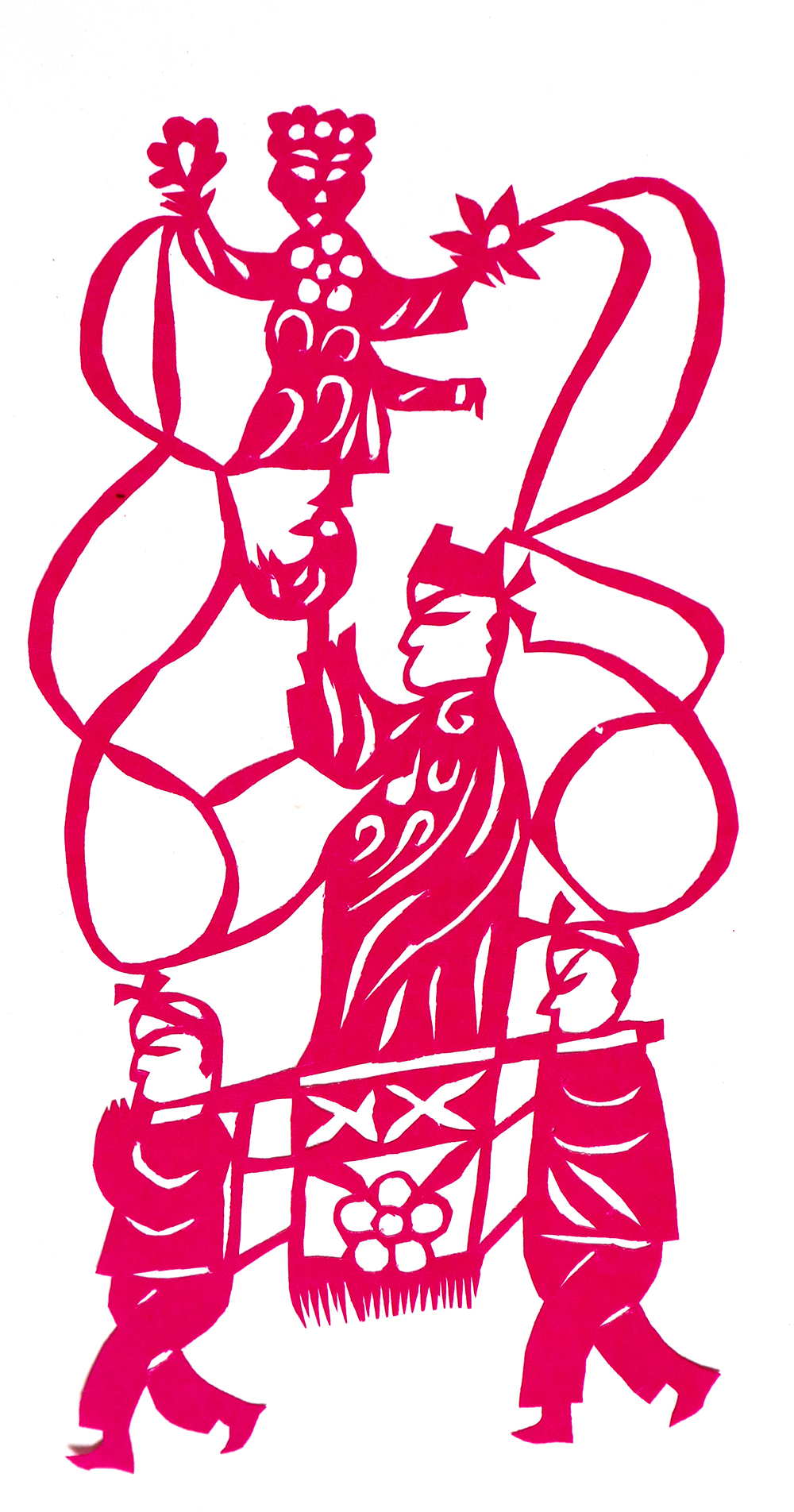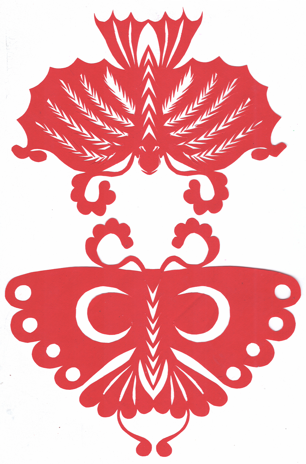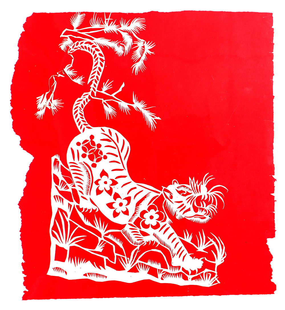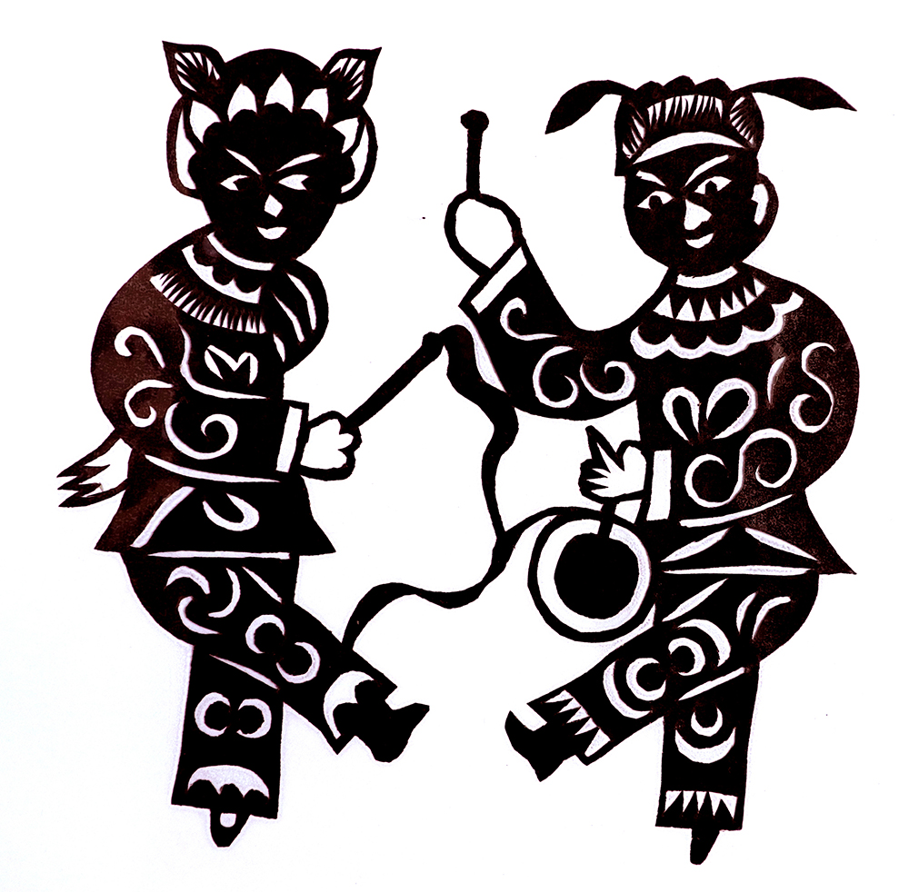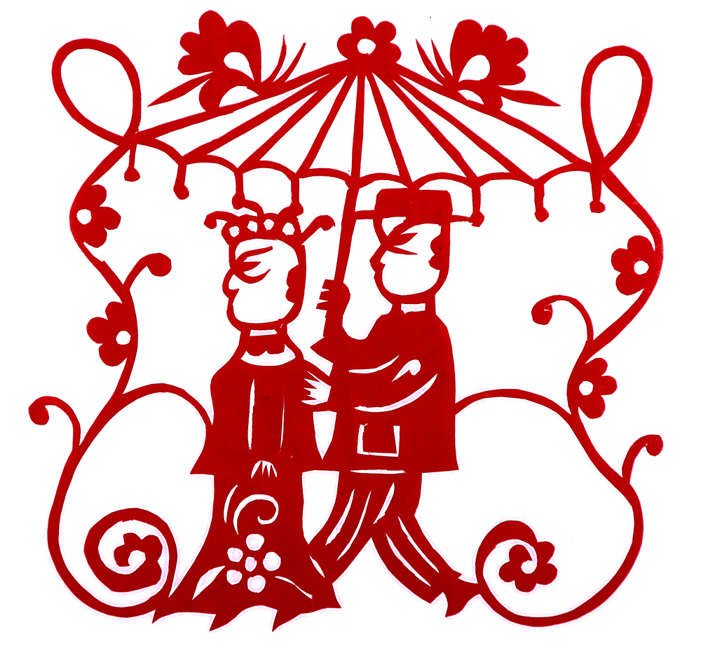 杨秀英姊妹5人,她排行老三,上有两个哥哥,下有一妹妹一弟弟。她7岁上学,一直上到高中,1976年毕业。祖母、外祖母、姑姑都是当地的巧人,她从小跟着看她们剪纸,耳濡目染,也就能剪能绣。5岁时刚刚学会拿剪刀,就试着把衣服上的花照着剪出来。学剪纸一入手就不要样子,拿起剪刀直剪。哥哥结婚时,她给剪了顶棚花、枕顶花,这一剪,全村人都知道她剪顶棚花好,后来村人有娃结婚,都会请她去给剪顶棚花,一直剪到她出嫁。上学期间,她给班上办黑板报,用剪纸装饰边框报头,有时为赶时间,一剪就剪到半夜两三点钟。除了剪花之外,她还会绣花、捏面花。
