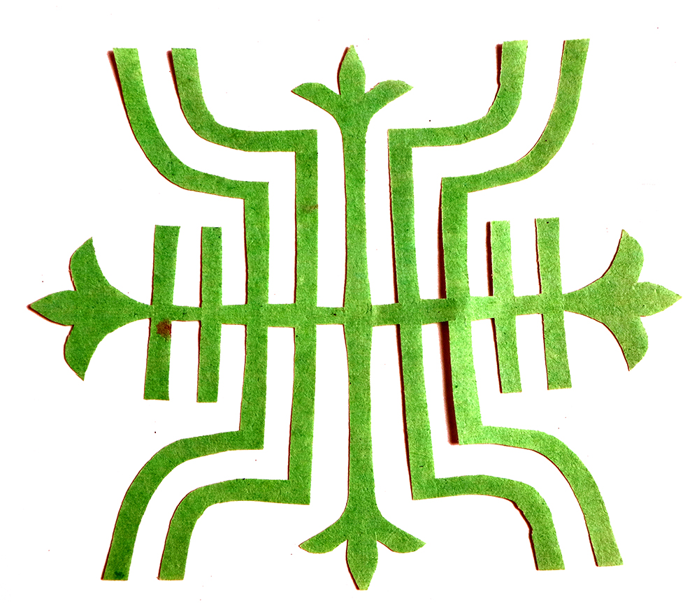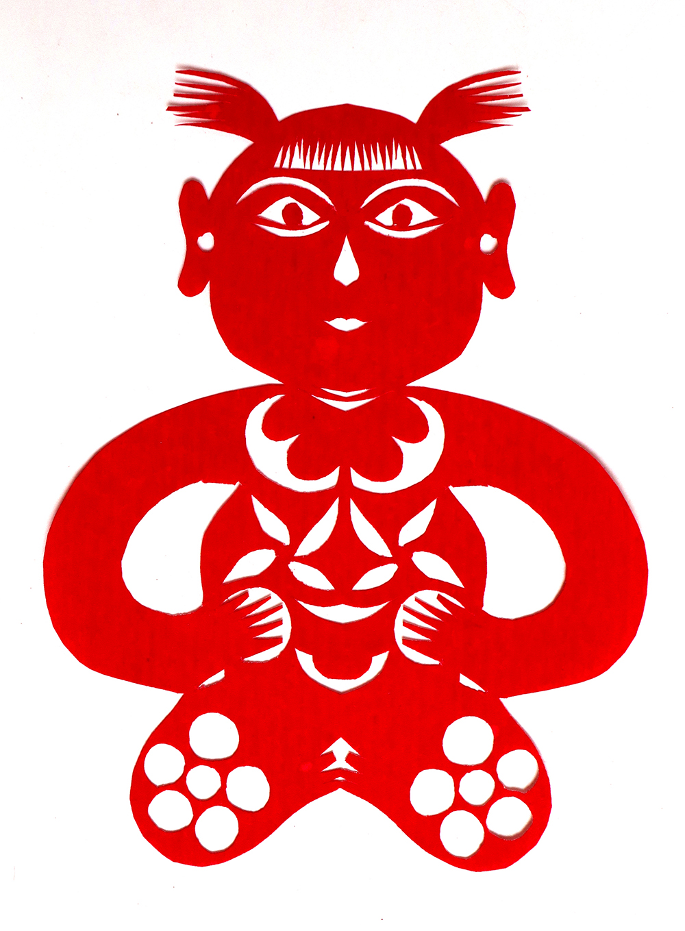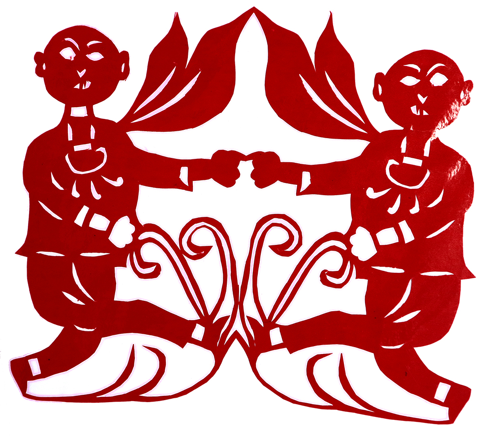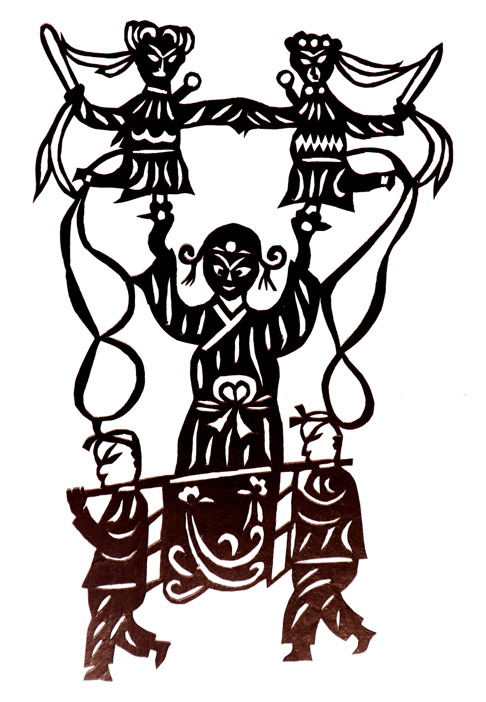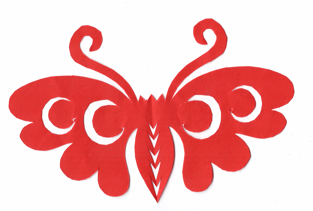 杨秀英姊妹5人,她排行老三,上有两个哥哥,下有一妹妹一弟弟。她7岁上学,一直上到高中,1976年毕业。祖母、外祖母、姑姑都是当地的巧人,她从小跟着看她们剪纸,耳濡目染,也就能剪能绣。5岁时刚刚学会拿剪刀,就试着把衣服上的花照着剪出来。学剪纸一入手就不要样子,拿起剪刀直剪。哥哥结婚时,她给剪了顶棚花、枕顶花,这一剪,全村人都知道她剪顶棚花好,后来村人有娃结婚,都会请她去给剪顶棚花,一直剪到她出嫁。上学期间,她给班上办黑板报,用剪纸装饰边框报头,有时为赶时间,一剪就剪到半夜两三点钟。除了剪花之外,她还会绣花、捏面花。
