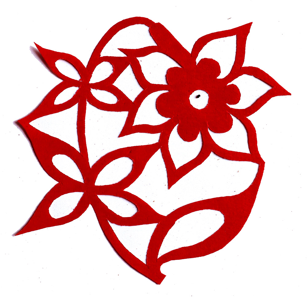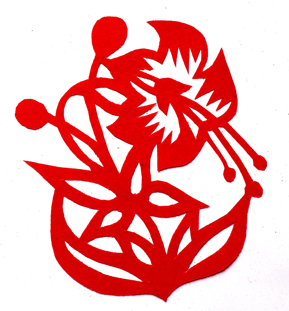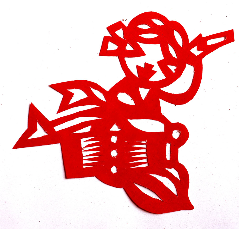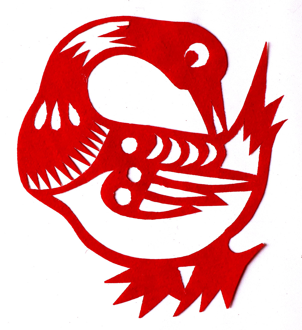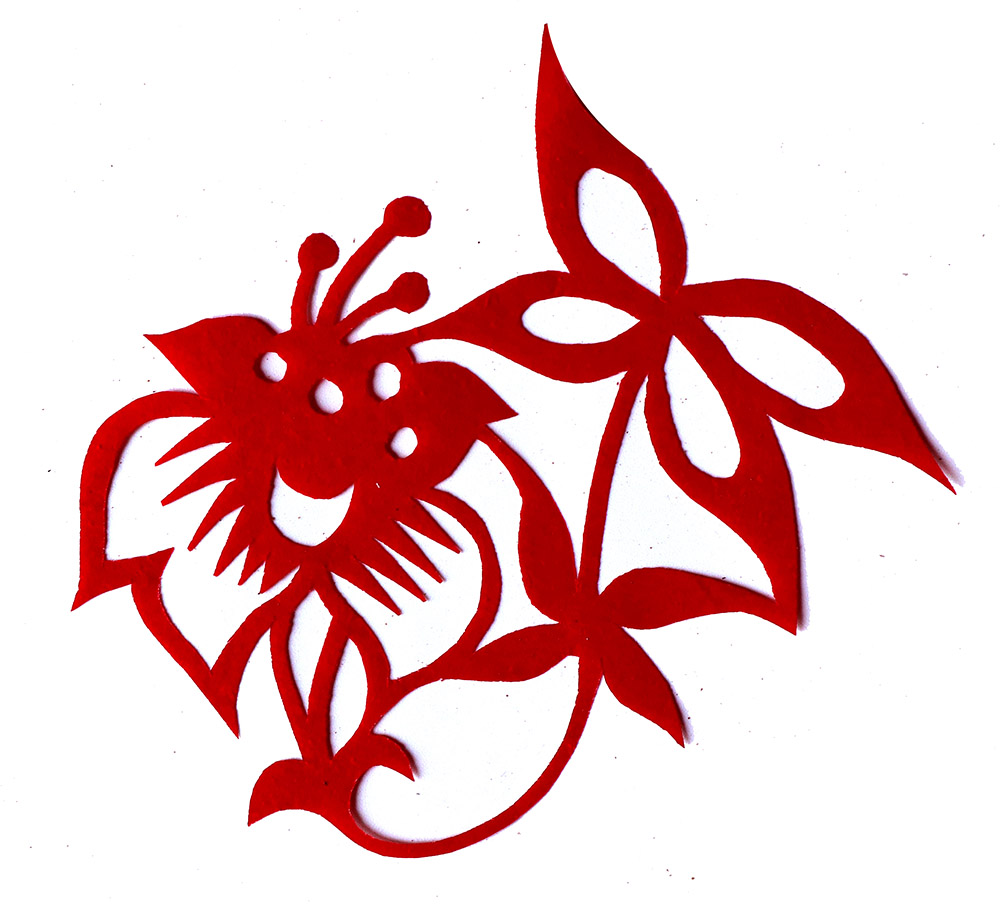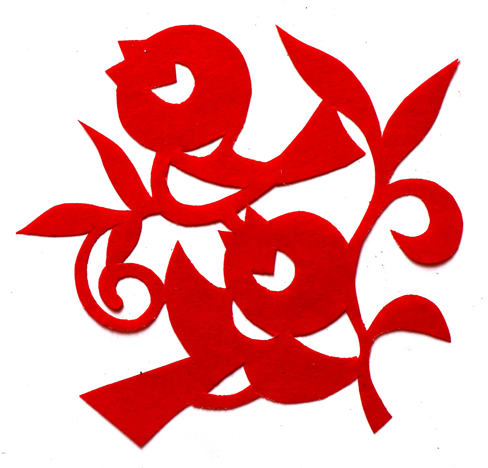 田焕琴姊妹8人,她排行老二,上有一姐姐,下有两个妹妹,四个弟弟。她9岁上学,上到四年级,父母便不让她上学了,让回家照看弟妹。小时候过年母亲剪窗花,她便跟上剪跟上贴,受母亲与姨妈的的影响最大,姨妈剪出的窗花及绣花样特别精巧古朴。母亲经常跟姨妈一起剪花,两人相互交流剪纸技艺,她也跟着学习,对剪纸的技艺也就有所了解。开始是拓着母亲的样子剪,到后来就自己画自己剪。当时在报刊杂志上刊登的图案,她非常喜欢,就用美术本临摹下来,几年中积攒了大量的图案资料,有空闲时便照着剪出来。由于当时对传统剪纸的认识不够,认为报刊杂志上发表的剪纸就是好的,她模仿学习较多。对于这种具有现代艺术的剪纸,母亲和姨妈说他们不会剪这类窗花。除剪纸外,她还学会捏面花,曾在生产队缝纫部给全村人裁剪衣服。
