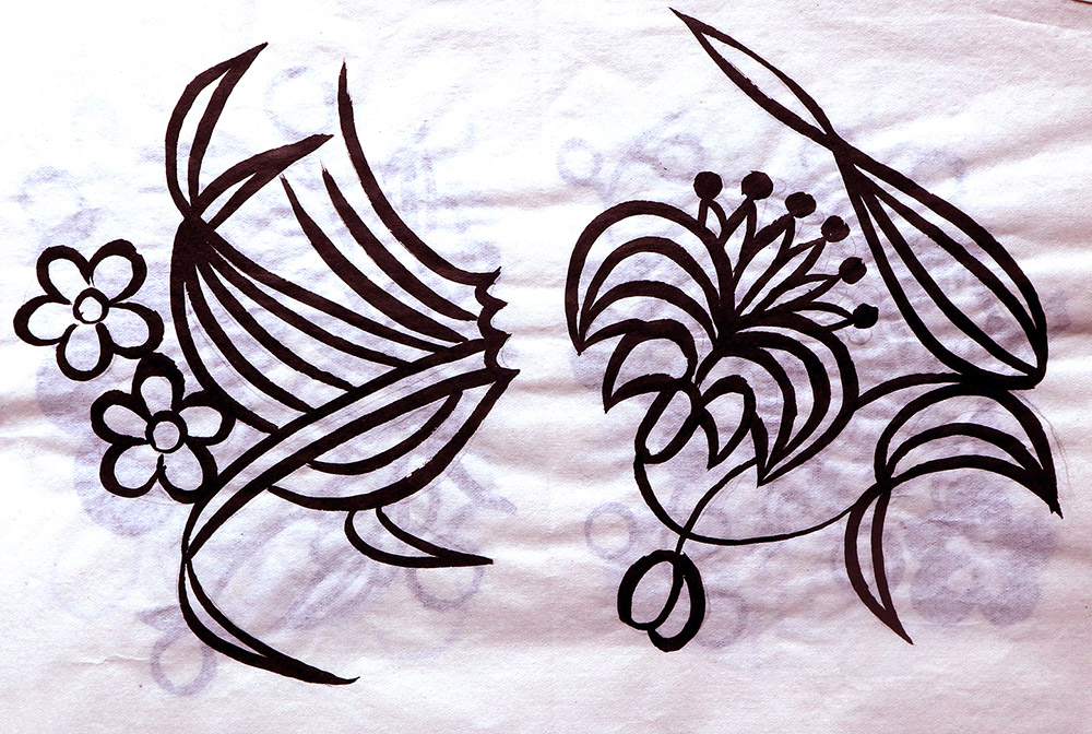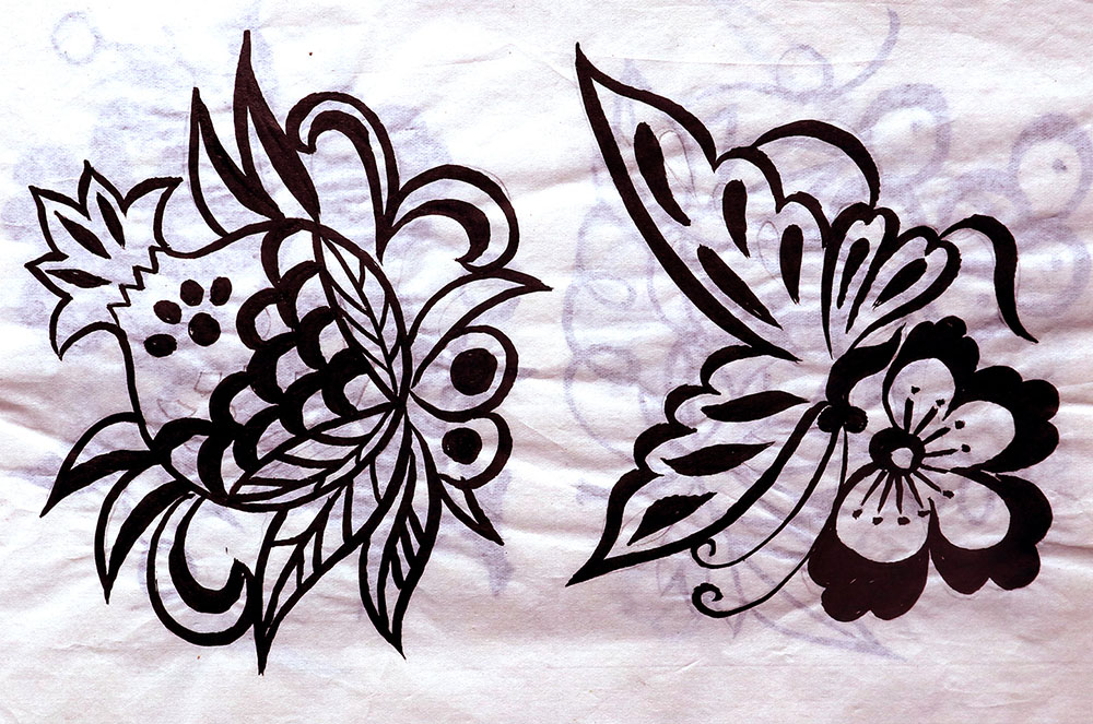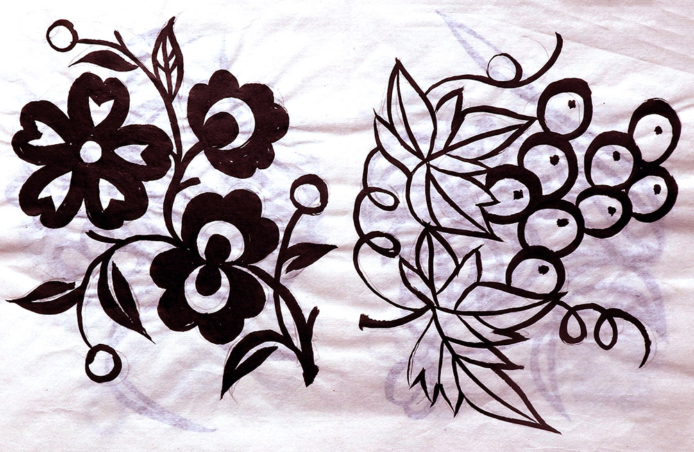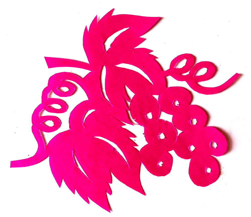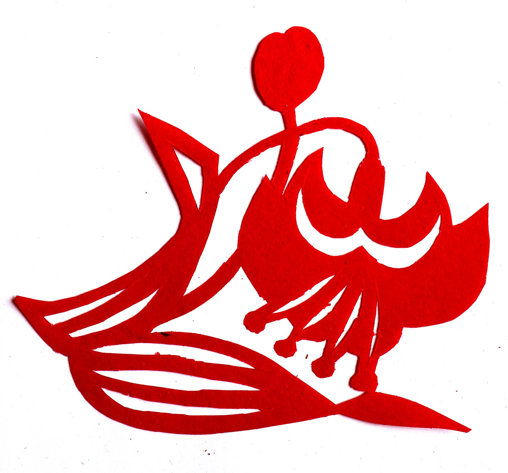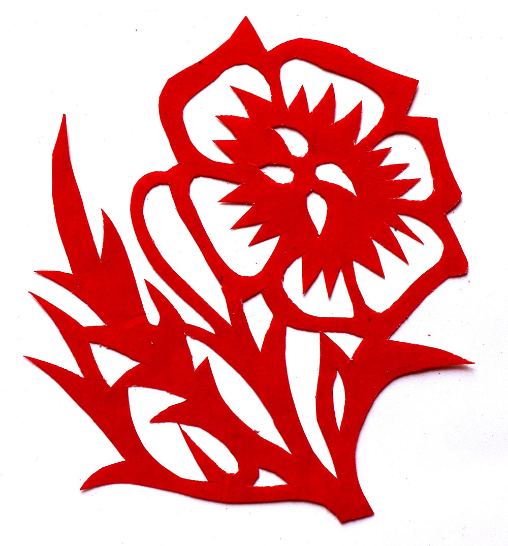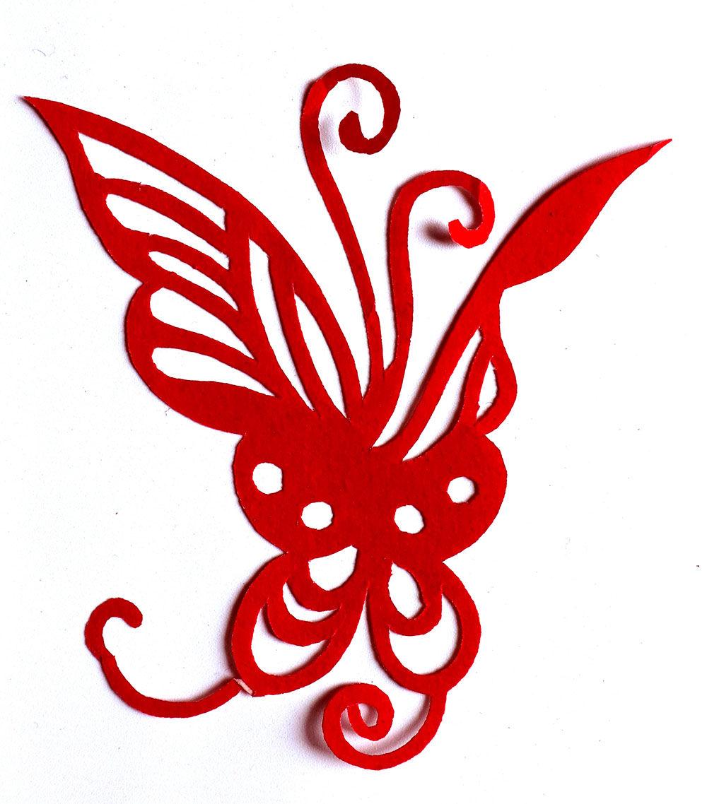 田焕琴姊妹8人,她排行老二,上有一姐姐,下有两个妹妹,四个弟弟。她9岁上学,上到四年级,父母便不让她上学了,让回家照看弟妹。小时候过年母亲剪窗花,她便跟上剪跟上贴,受母亲与姨妈的的影响最大,姨妈剪出的窗花及绣花样特别精巧古朴。母亲经常跟姨妈一起剪花,两人相互交流剪纸技艺,她也跟着学习,对剪纸的技艺也就有所了解。开始是拓着母亲的样子剪,到后来就自己画自己剪。当时在报刊杂志上刊登的图案,她非常喜欢,就用美术本临摹下来,几年中积攒了大量的图案资料,有空闲时便照着剪出来。由于当时对传统剪纸的认识不够,认为报刊杂志上发表的剪纸就是好的,她模仿学习较多。对于这种具有现代艺术的剪纸,母亲和姨妈说他们不会剪这类窗花。除剪纸外,她还学会捏面花,曾在生产队缝纫部给全村人裁剪衣服。