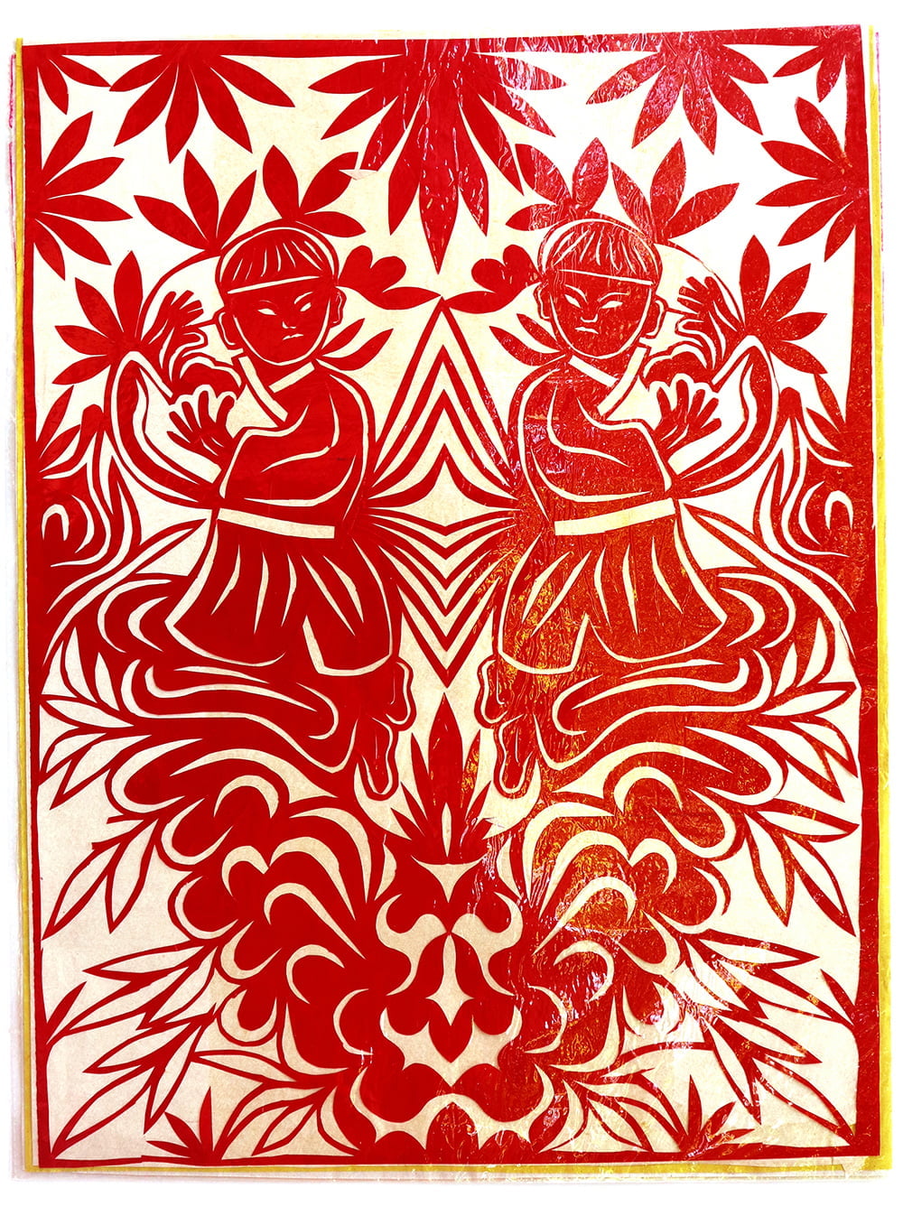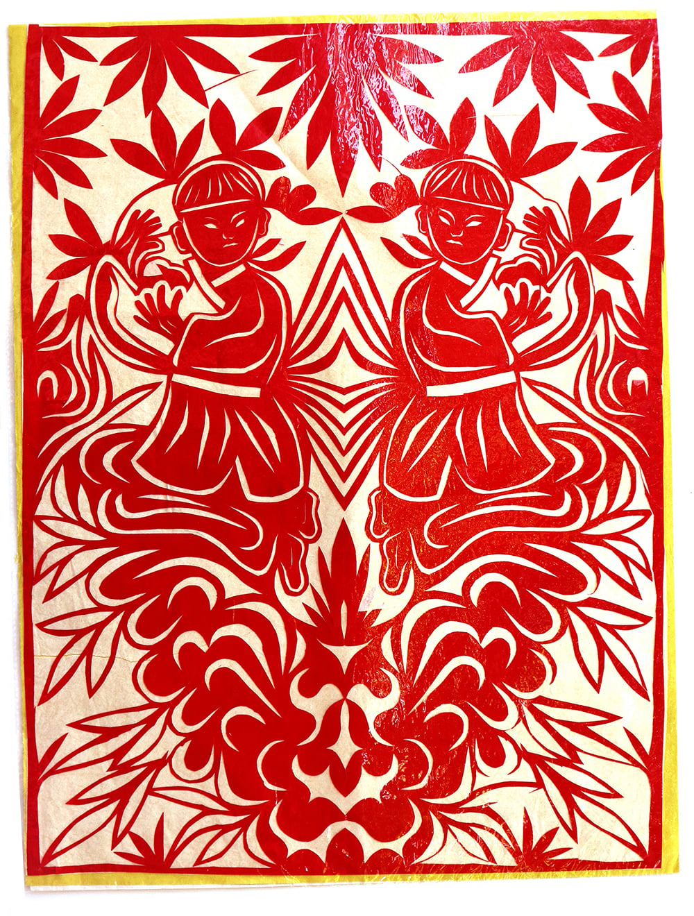 杨雪琴,女,1957年生,汉族,杨雪琴姊妹两人,她排行老大,下有一个妹妹。她7岁上学,一直到初中毕业。杨雪琴娘家在延安市黄陵县阿党镇北村,当地老户。祖父杨五一,农民,靠务农为生,是村中的一个能行人。祖母,不识字,剪花、扎花样样都会,谁家有大事小事都会请她帮忙,是当地有名的巧人。外祖母农民,不识字,爱好剪纸,去世时留给母亲一把手工打制的剪刀,杨雪琴出嫁时母亲又把剪刀送给了她。父亲杨全书,是一名教师。母亲农民,不识字,会剪花会扎花。