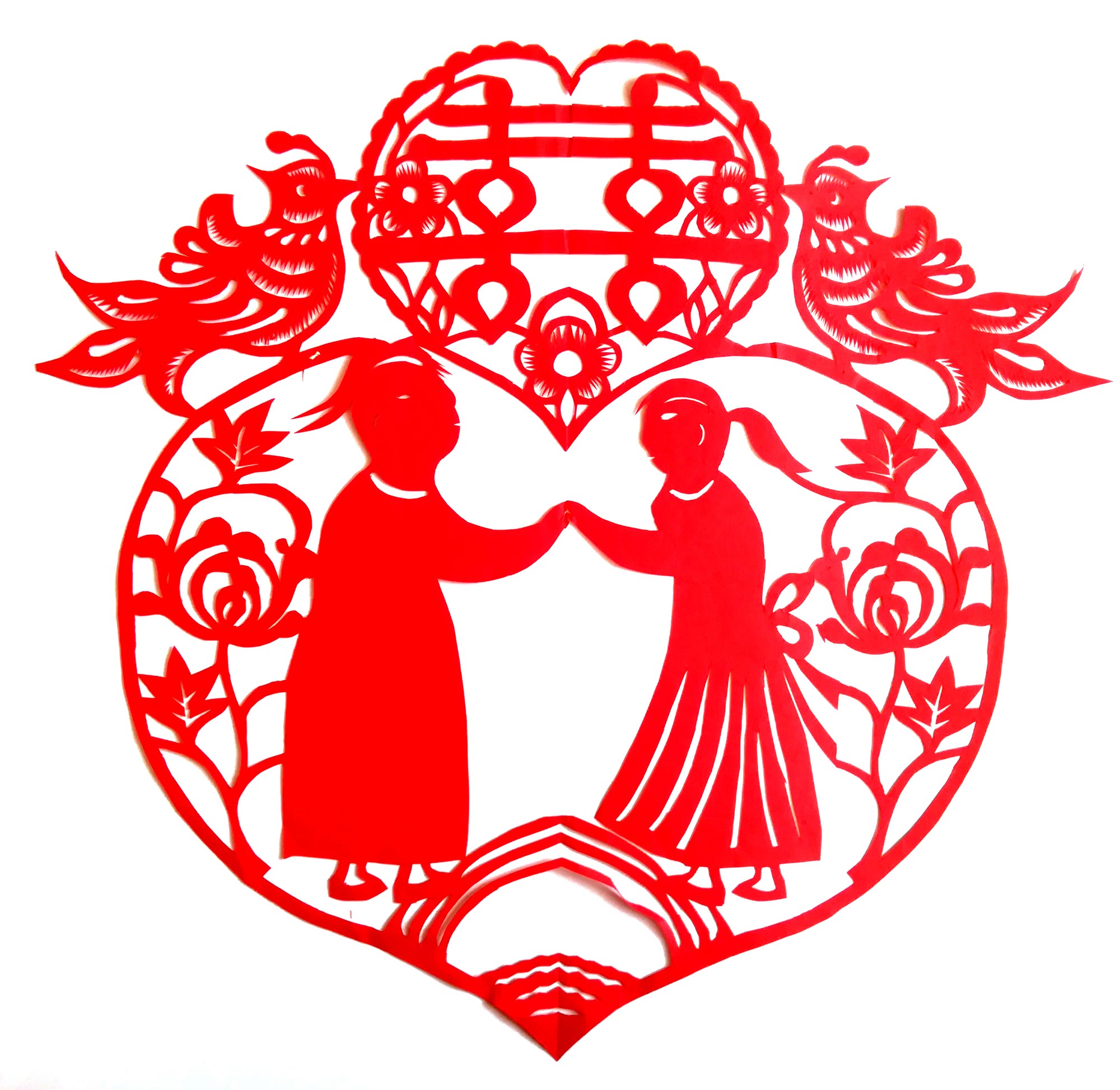 2002年,李荣荣结婚,那年25岁。结婚的门帘是她自己剪的花样子自己缝制的。婆家是当地人。公公农民,是当地的一名石匠。丈夫初中文化,平时爱好下棋。丈夫对于她学剪纸很支持。婚后生有两个孩子,目前孩子都在上学,小儿子特别喜欢画画。