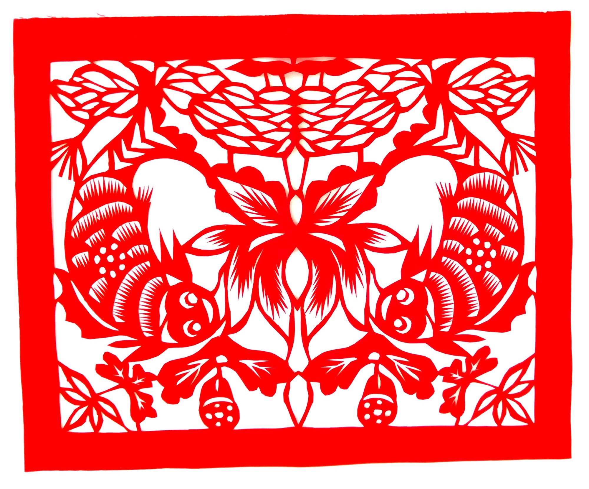2018年,米脂县举办剪纸培训班,李荣荣听说后报名参加,在培训班上她认真剪认真学,创作了《鱼系列》《蝴蝶扑金瓜》等剪纸,受到辅导老师的好评。但她是一个慢热性子的人,刚刚学了一点技术,入了门,剪纸班就结束了。2019年,她听说米脂县又办第二届培训班,赶紧报名参加。第二次培训班上,由于有了一些技巧,她创作了多幅优秀作品,部分作品被米脂县非遗办公室收藏。