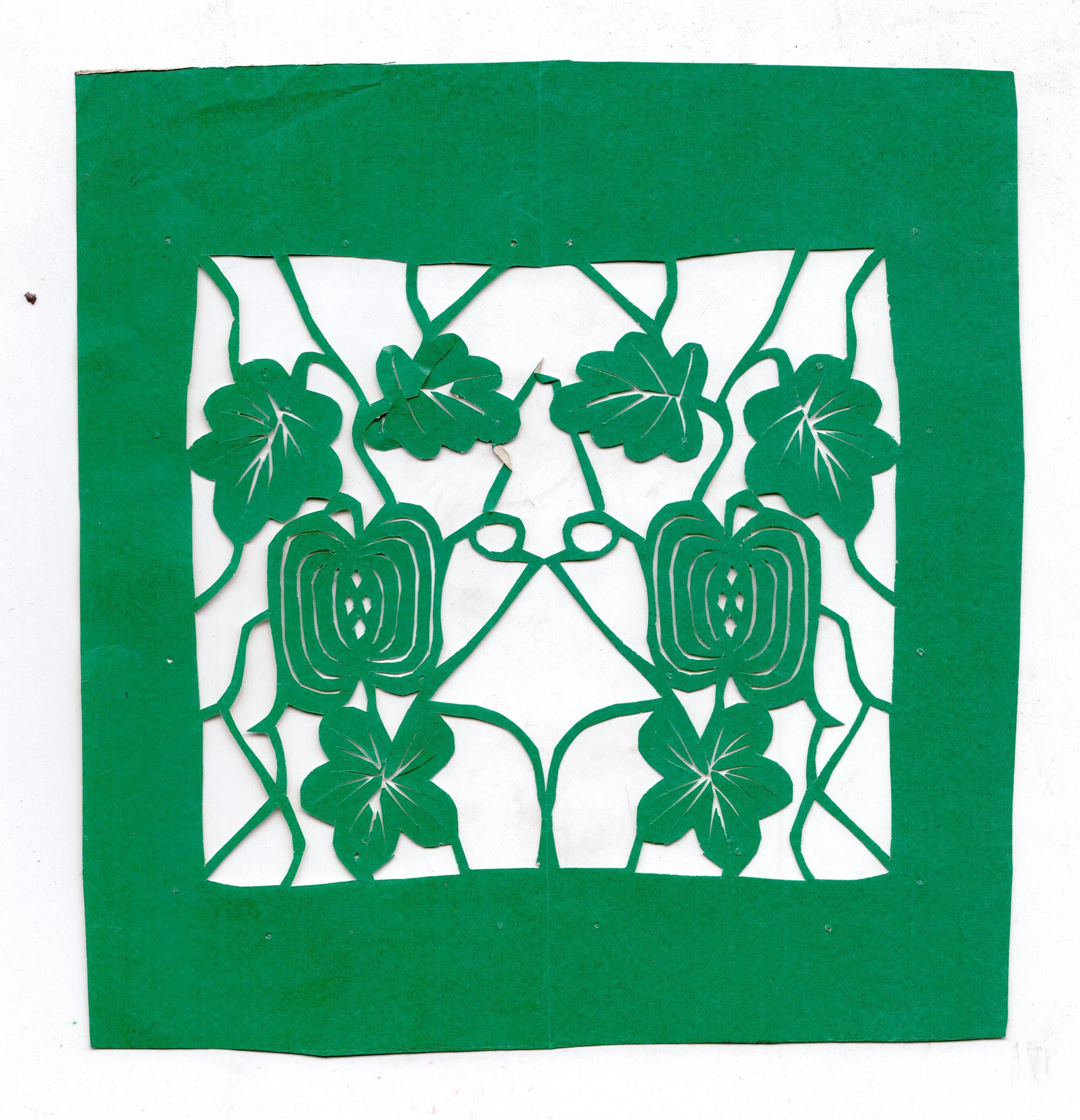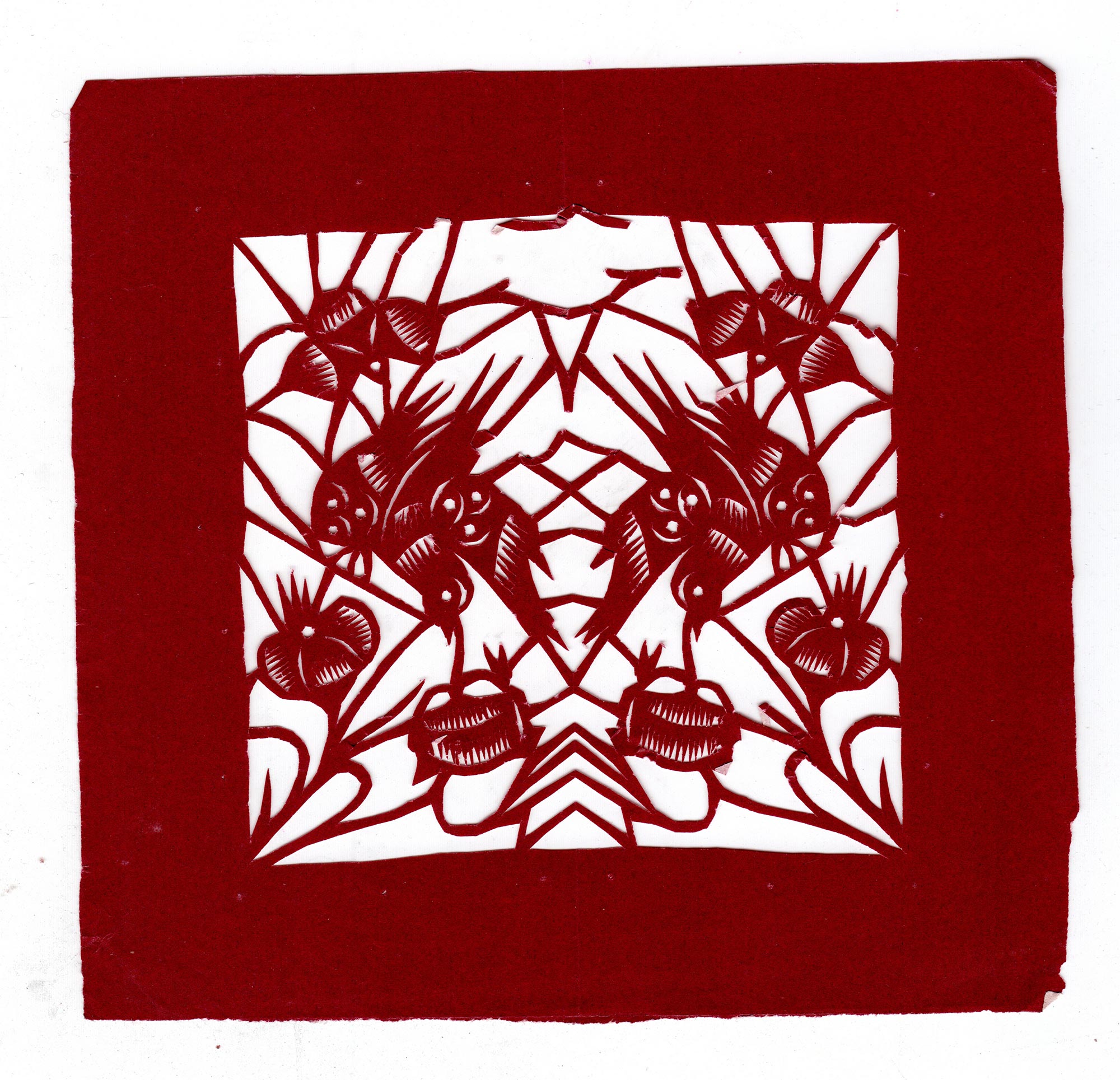 1972年尚小会结婚,婆家武功县贞元镇东大寨村人。丈夫张彦金,农民,小学文化程度,没有手艺,以务农为生,生有一女二儿。结婚后虽然农活多,家务忙,但她喜欢剪纸的兴趣没有改变。炕头前时常放着剪刀和纸,只要有空闲,她就会拿起剪刀剪一会窗花,剪好后夹在旧杂志中,待过年时用。