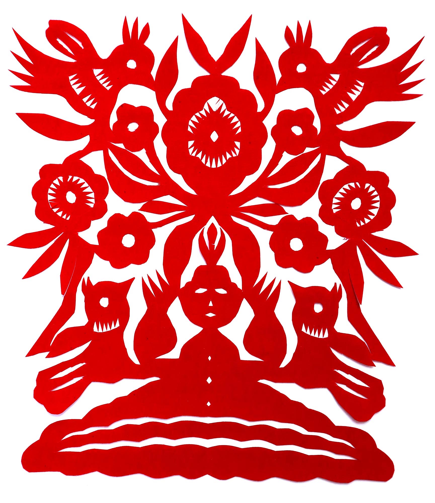 1984年,都翠兰结婚,那年20岁。嫁衣是姐姐做的,上轿鞋、鞋垫都是自己剪花样自己绣。婆家延川县乾坤湾镇伏义河行政村,当地老户。结婚后丈夫以油漆柜子画为生,不久,新式家具进入百姓家,需要油漆柜子的人很少,家里一下经济困难。