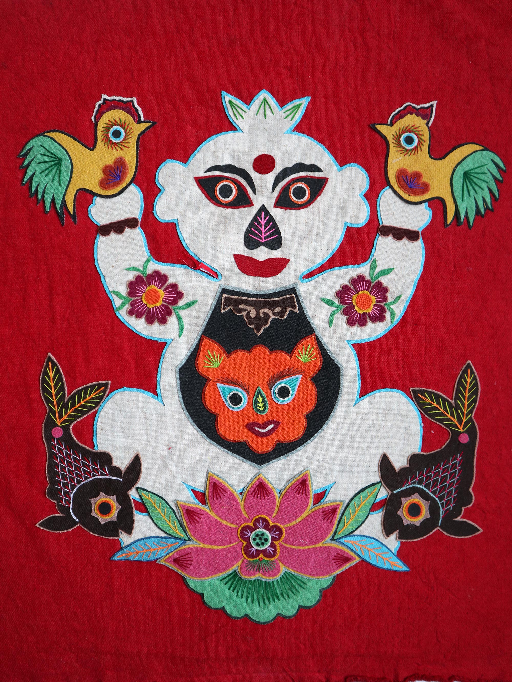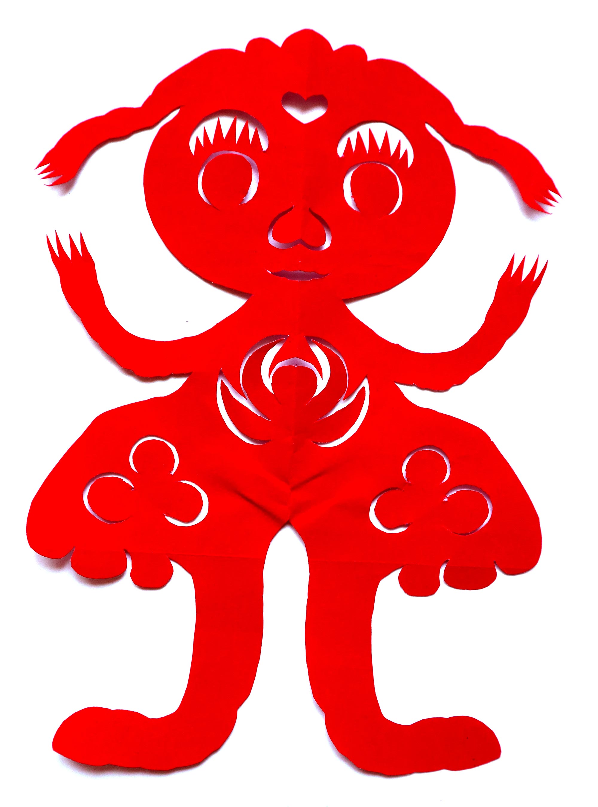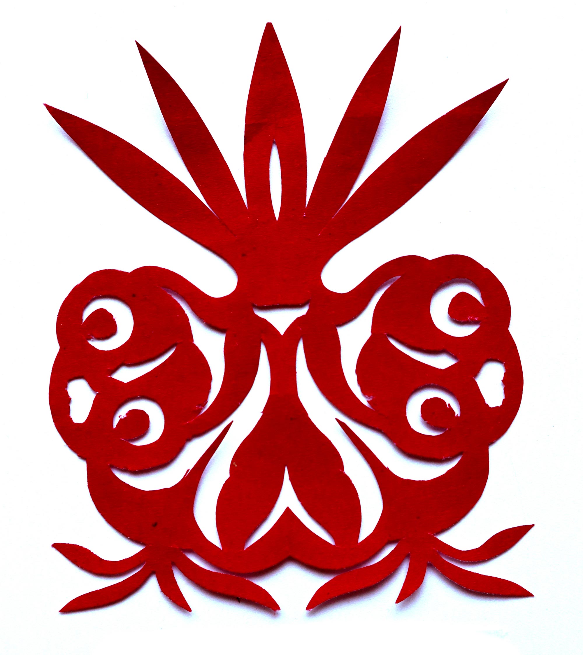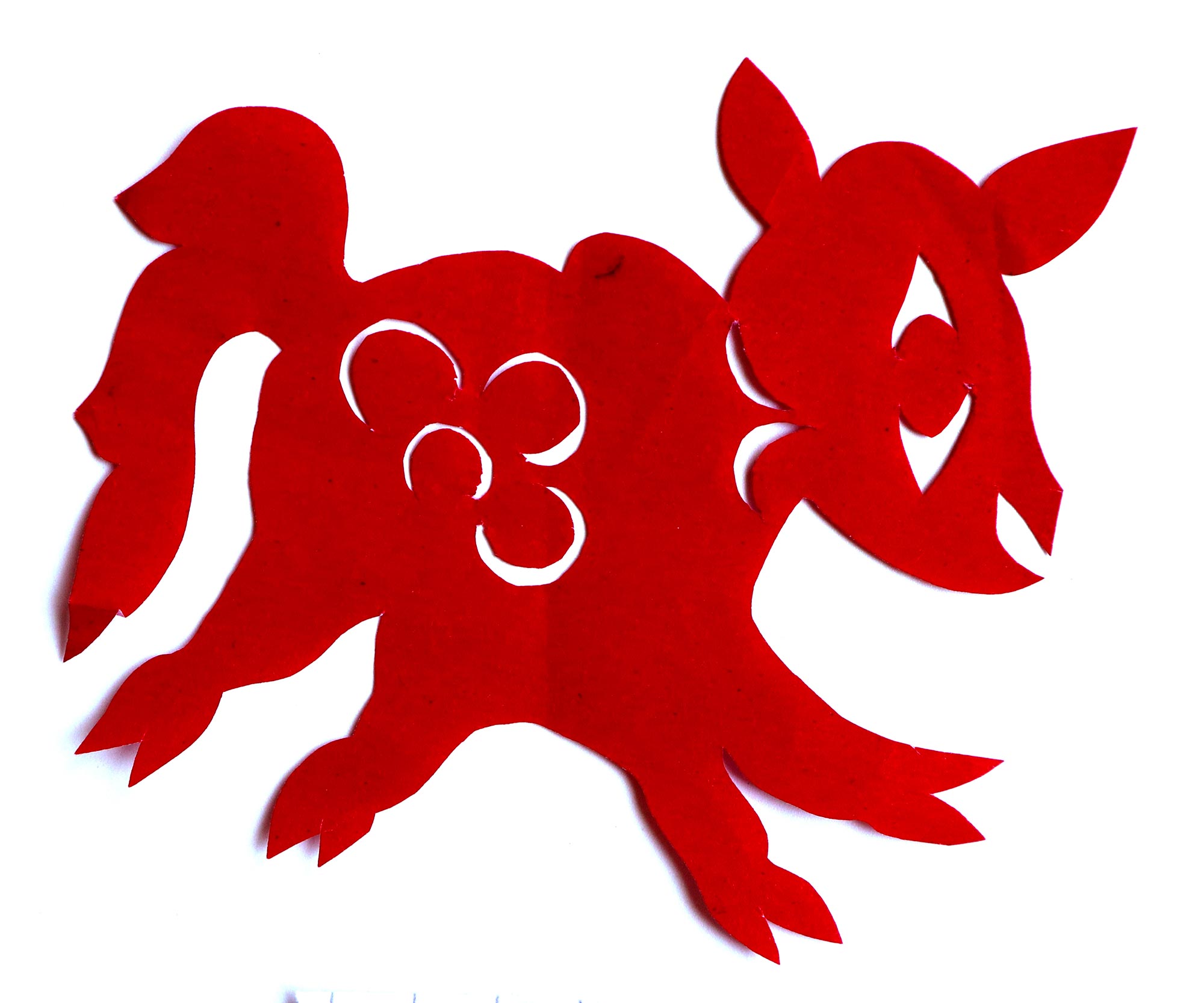 高芳芳,女,1989年10月18日生,汉族,高芳芳姊妹三人,她是老大,下有一个弟弟一个妹妹。她6岁上学,一直上到初中,她七八岁时只是照着剪,到后来就不需要样子,看着就能乱剪,想剪个啥就剪个啥,没有什么目的性,有时剪树叶,有时把不用的废作业本撕下来剪。祖母经常让她注意观察身边的动物、花草、人物,她按祖母说的没事就坐在院子观察鸡、鸭、牛的动态,对她剪纸的造型有了较大的提高。