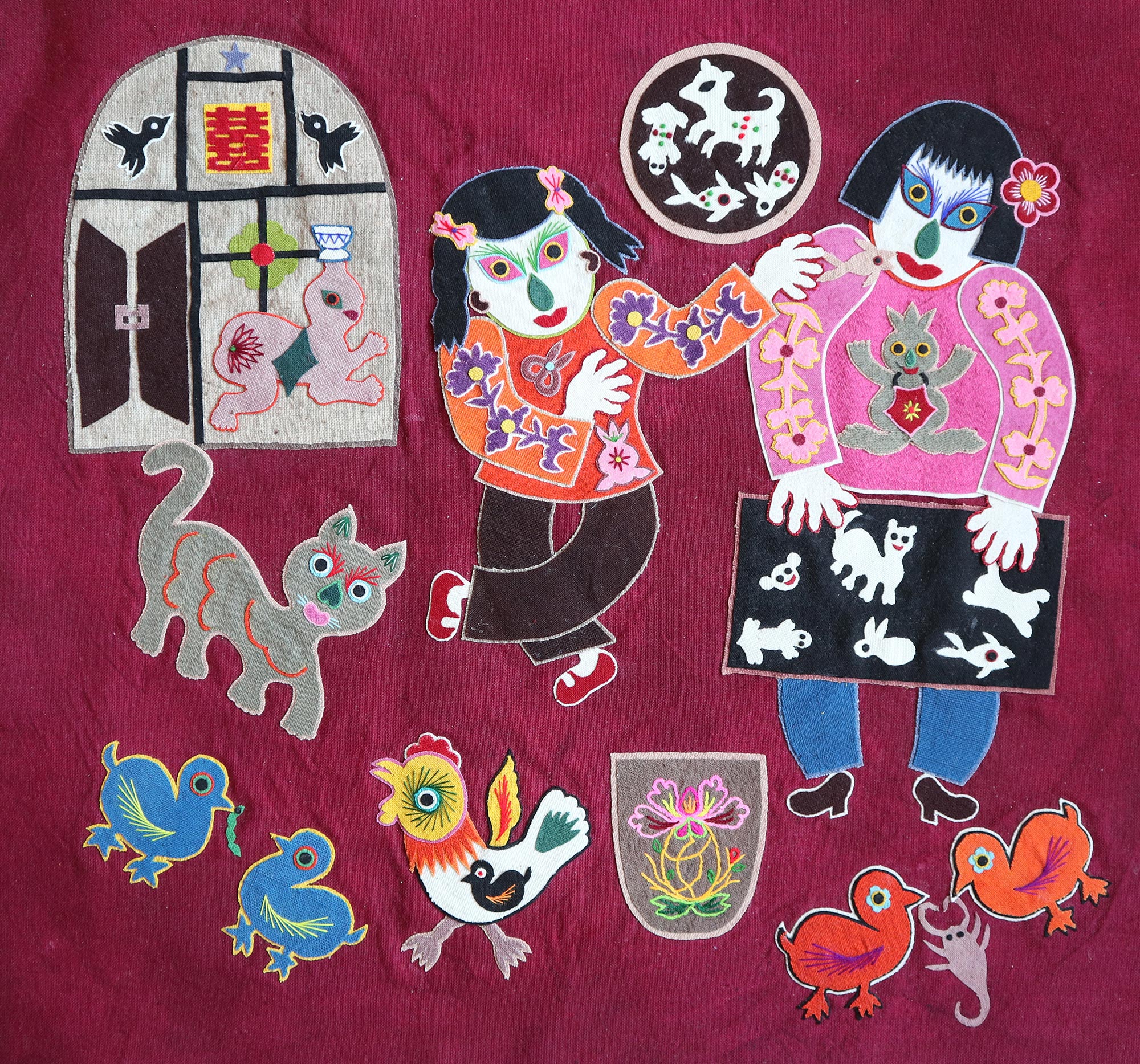 2010年,高芳芳结婚,那年20岁。丈夫干飞,农民,初中文化程度,以开大货车跑运输为生,特别支持妻子剪纸做布堆画,支持她干点自己喜欢做的事情。婚后生有两个孩子,一儿一女,有了孩子后,她家务很忙,要接送孩子上学,但她一直坚持剪纸刺绣,没有中断,女儿也喜欢剪纸,常跟着她一起剪。
