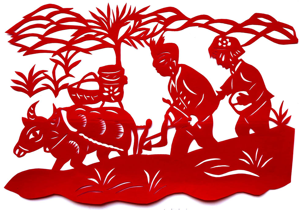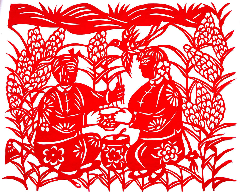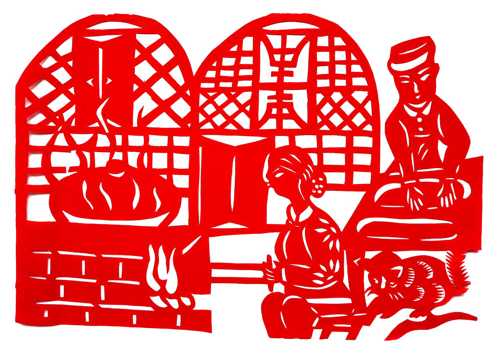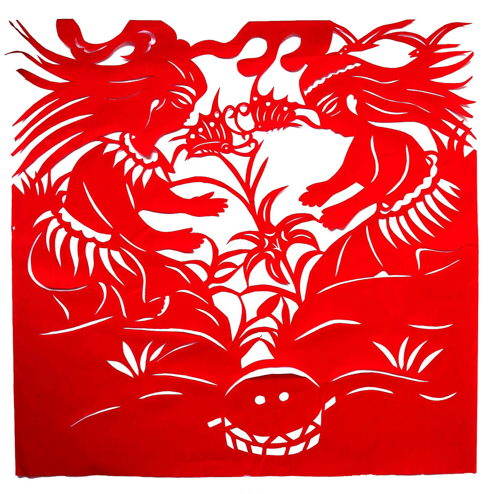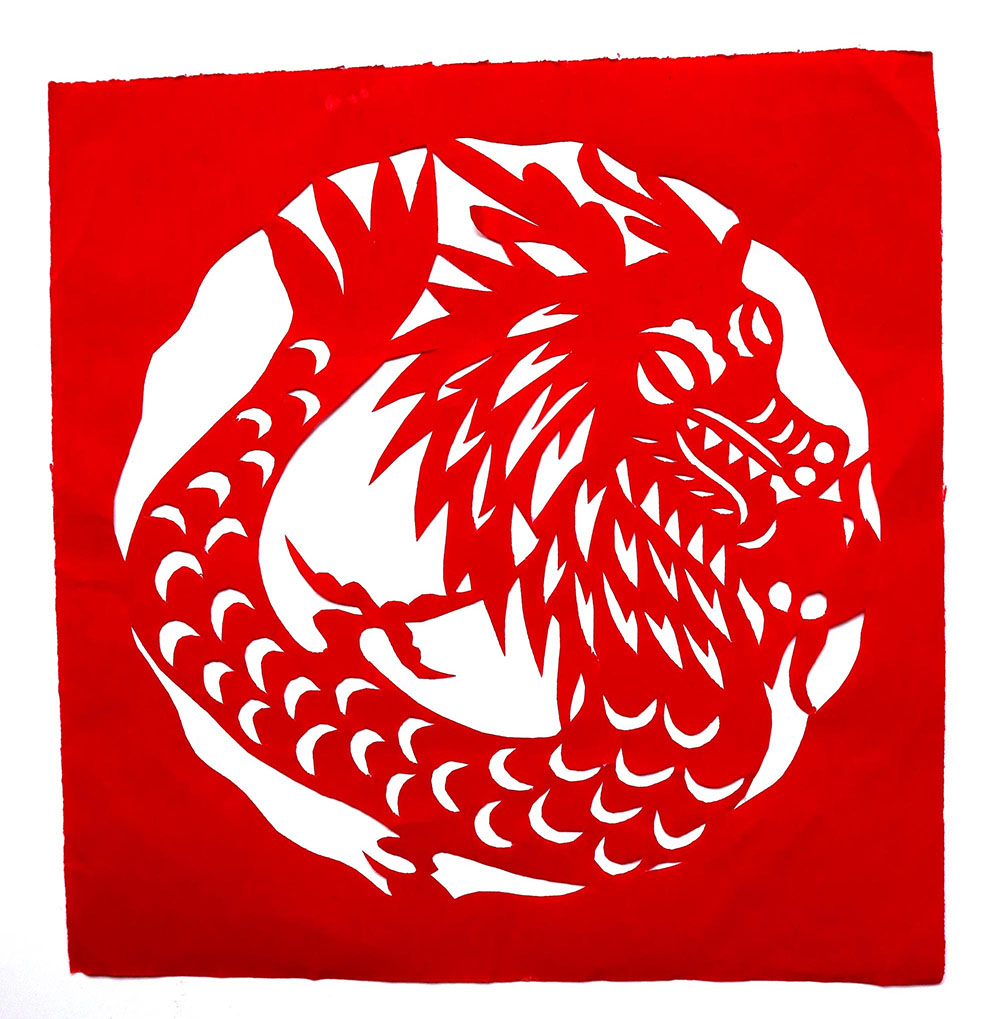 1993年,焦岗岗结婚,那年22岁。婚后生育有两个孩子,一儿一女。孩子小的时候,整日照顾孩子,剪的不多,到孩子上学后有了空闲时间,正好剪纸巧手高河晓在延川培训剪纸,她参加了学习。从这以后就开始了有目的的剪纸创作。