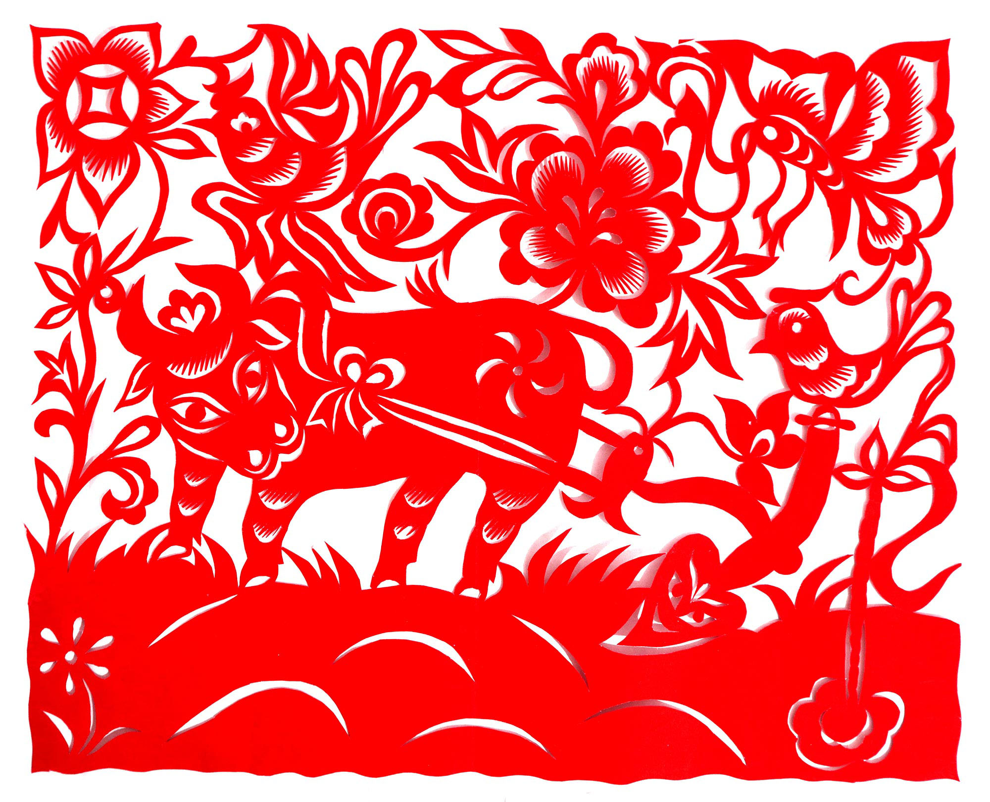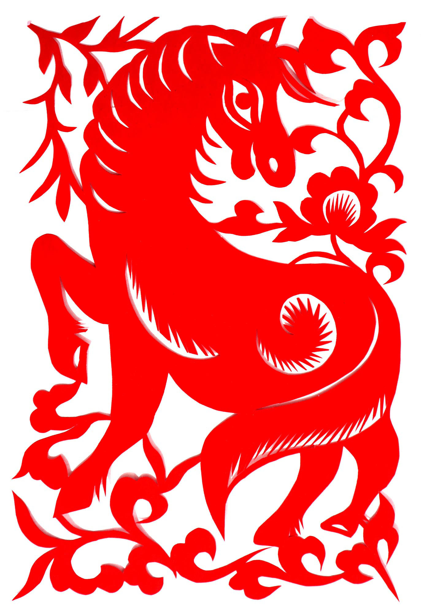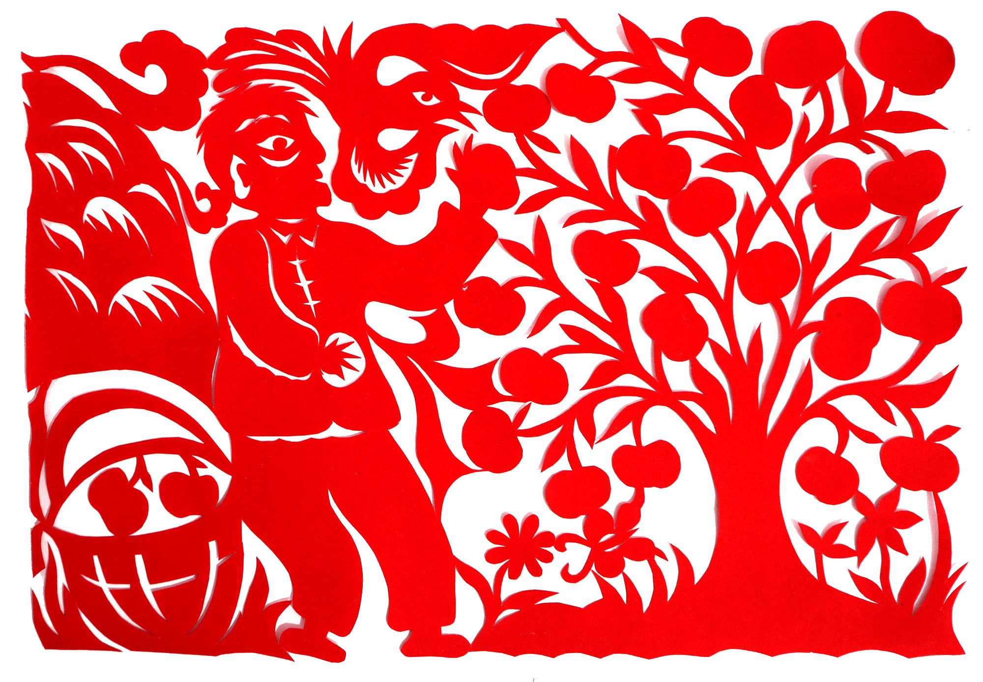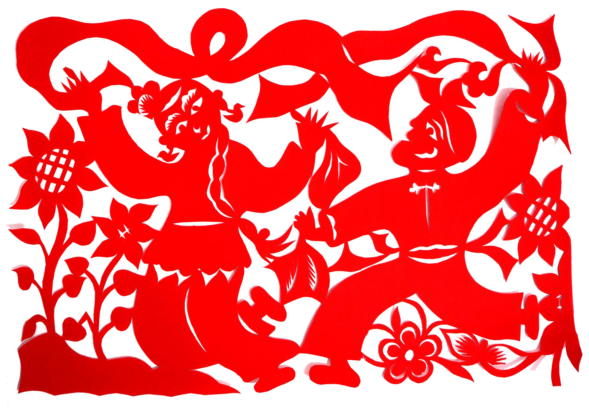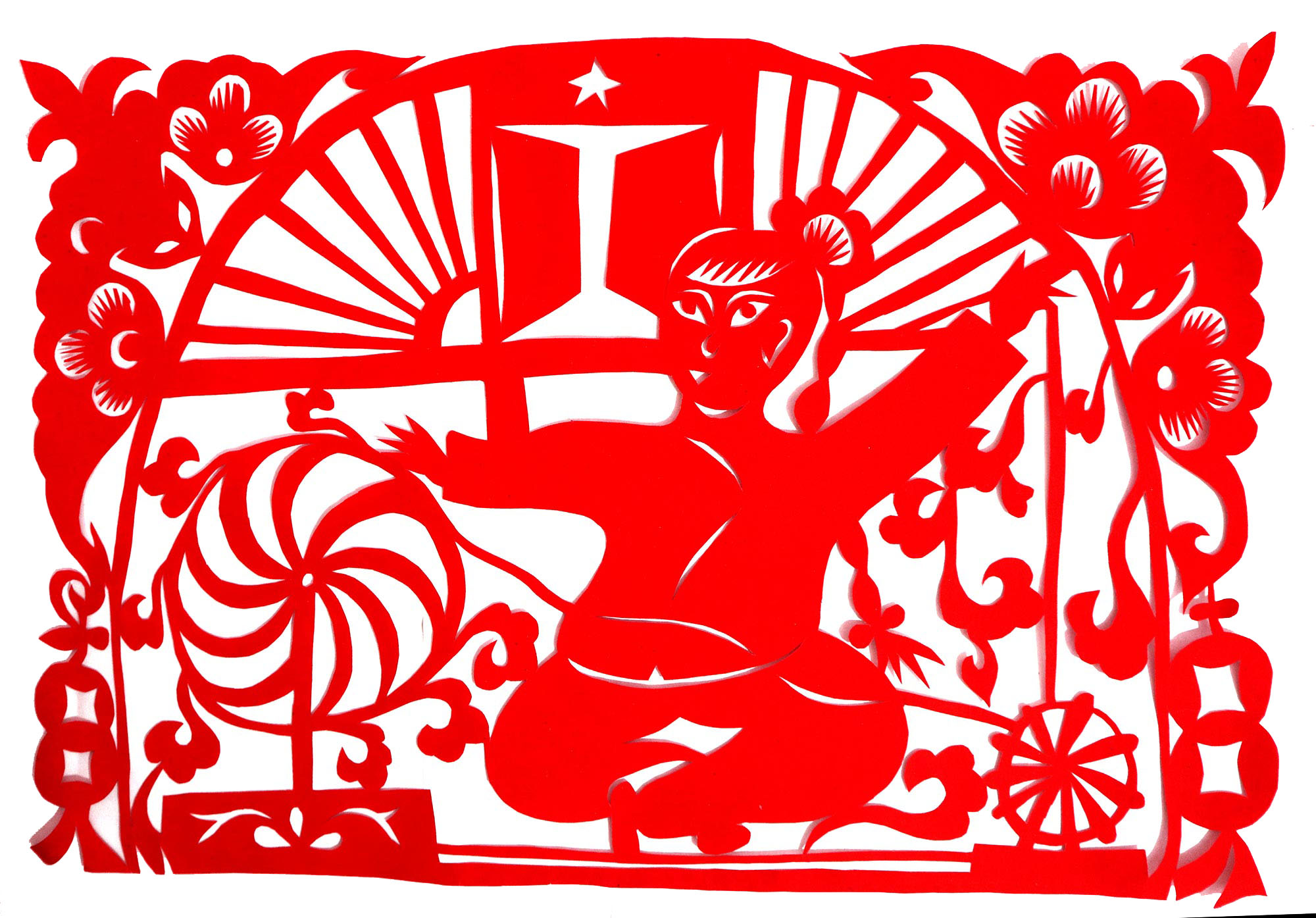 因母亲喜欢剪纸、绣花,母亲剪花时她就喜欢看,跟上瞎剪。后来就照着母亲剪的样子画,画出来再剪。12岁时,冯飞琴学会了剪窗花,之后,母亲就把每年剪窗花贴窗花的任务交给了她。由于她喜欢剪花,剪的再多也不知道累,除自己家用外,还常帮村里人剪窗花。1999年,北京来了个中央美术学院的靳之林教授,在乾坤湾写生,住在小程村,晚上靳老师组织村上的妇女剪纸,并进行剪纸培训。冯飞琴知道后想去参加,但由于晚上要照看弟妹,又年龄小没敢去,就在家里剪团花,剪出的团花也不敢让靳老师看。后来她家来了个在延川挂职锻炼的安徽省合肥市群众艺术馆的周路老师。她便取出自己剪的团花,让周路老师指点,并得到认可,进而增强了学习剪纸的信心。后来创作的团花还被收录在周路主编的《团花世界》一书之中。2007年,冯飞琴出嫁,刚结婚那几年,丈夫不支持她剪纸,嫌她剪纸耽误照看孩子,又嫌她剪纸把家里弄得满地纸屑。后来娃娃大了,丈夫也不反对了,还特别支持她出去参加县上组织的剪纸活动。2017年,冯飞琴参加了县上举办的剪纸培训班,并加入了高秀芳剪纸布堆画合作社,开始了有目的的剪纸创作。其中,《红星闪耀》在延安展出,《退耕还林》在刘家山村委会展出,创作的裹肚、旗袍在延川县展出。
