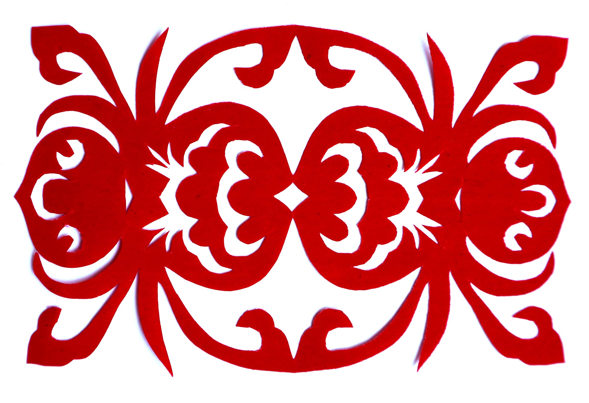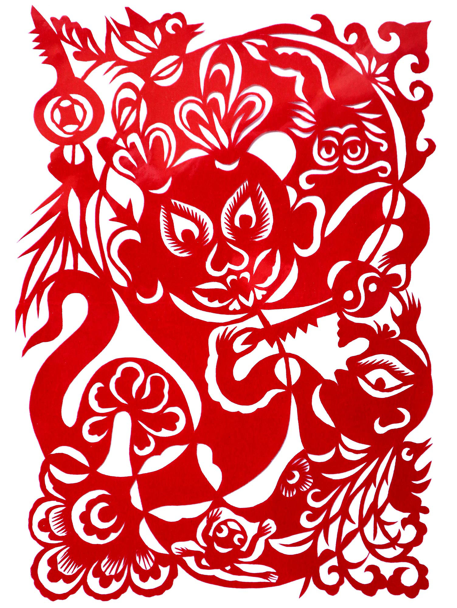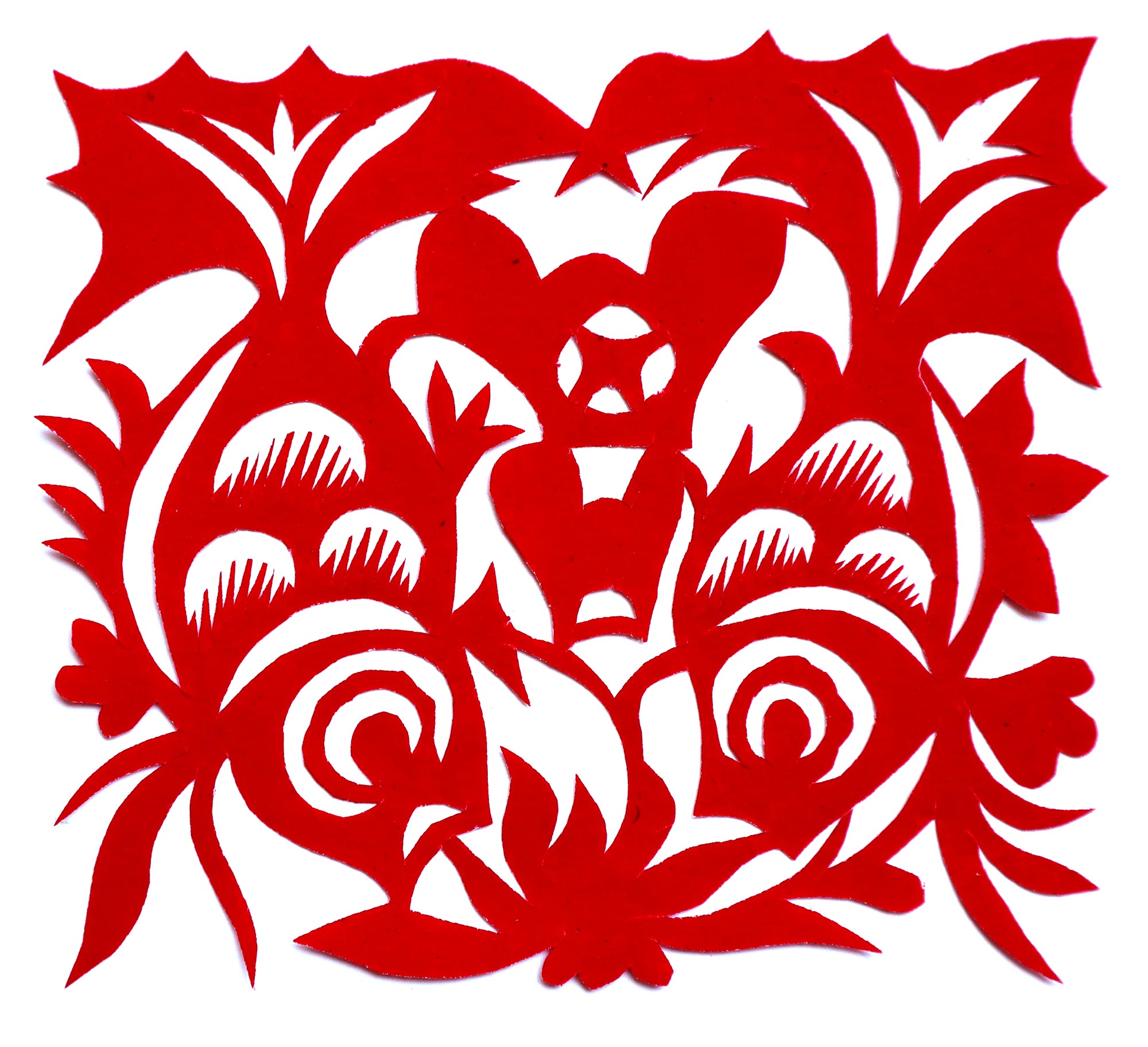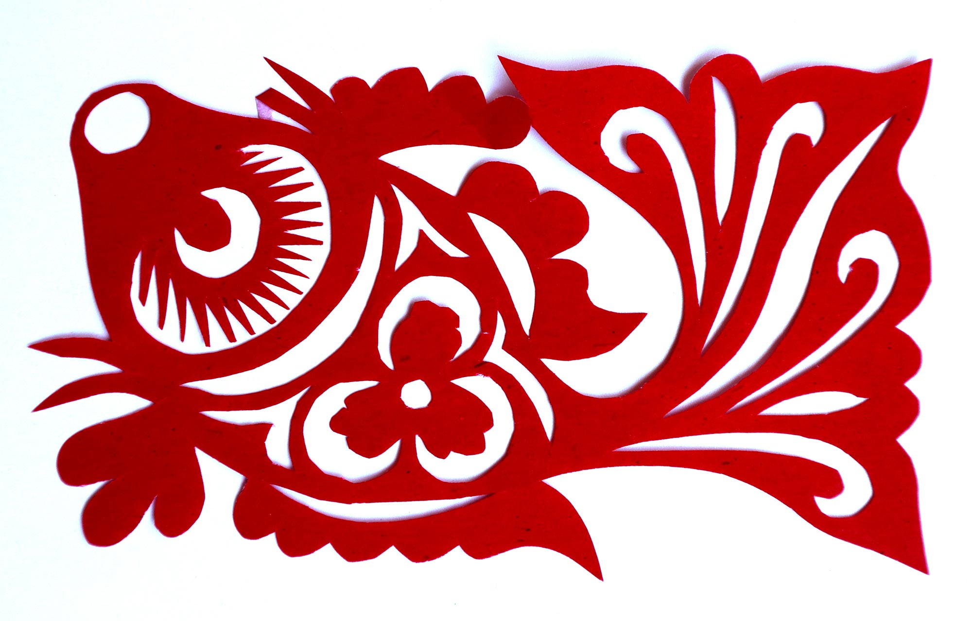 贺彩莲从小见母亲给村里人剪花,就跟上母亲学习。母亲剪花冒剪冒画,她也跟着冒剪冒画。母亲不剪花时,她就拿起剪刀冒剪,从没有拓过样子,小小年纪就学会了剪窗花。村里的女孩子,都来让她给剪花样画花样。上学时特别喜欢画画,经常受到老师的表扬。学剪纸主要从窗花开始,以花鸟动物为主,当时延川农村忌讳剪人物,所以也没有学。1988年,贺彩莲结婚,家里人都支持她剪花、唱歌,特别是婆婆在她剪花时就帮忙做家务,照看孩子。当姑娘时主要是过年剪花,那时没有纸,平常有一点红纸都舍不得用,只能在过年时间用。2001年,靳之林老师来到延川写生,靳老师让她剪了个动物,也启发她剪人物,再靳老师的鼓励下,她的剪纸创作就一直没有停止,创作了《纺织系列》《迎亲系列》《民歌系列》等。后来贺彩莲参加了延川县文化馆的剪纸创作培训班,延安市的剪纸培训班,对她的艺术修养有所提高,更加明确了自己的创作方向和艺术特色的坚持。这些年省市县镇上只要有剪纸活动,每次都参加,不管能不能获奖,她都是平常心。