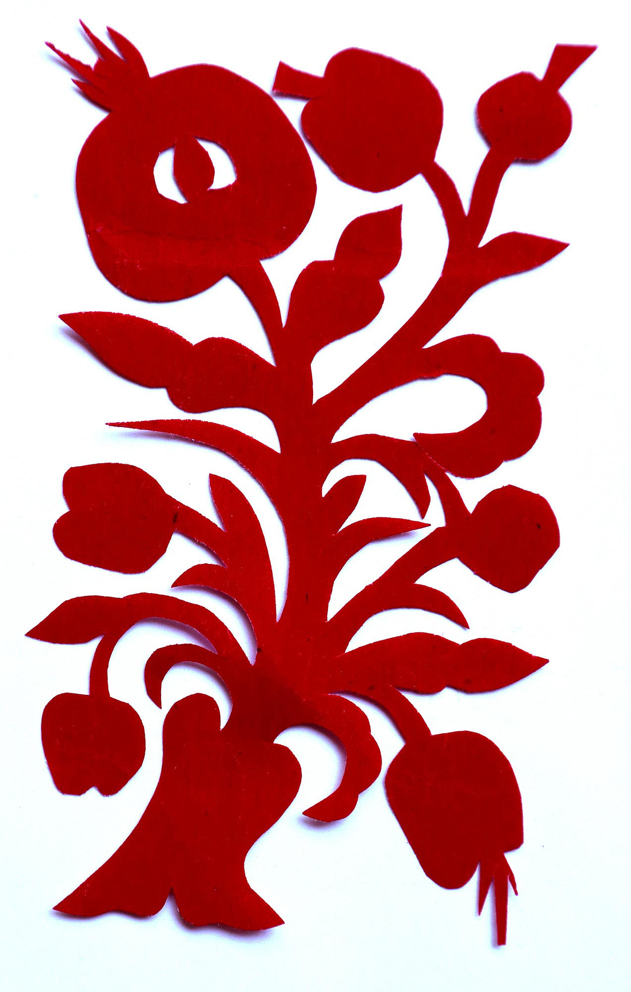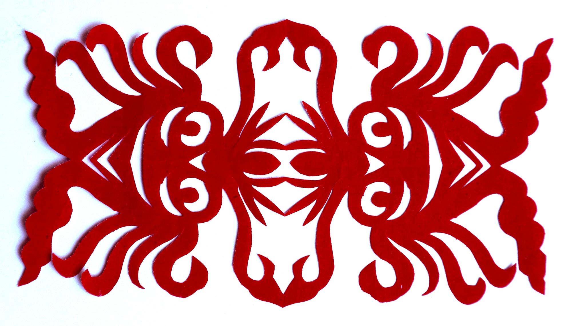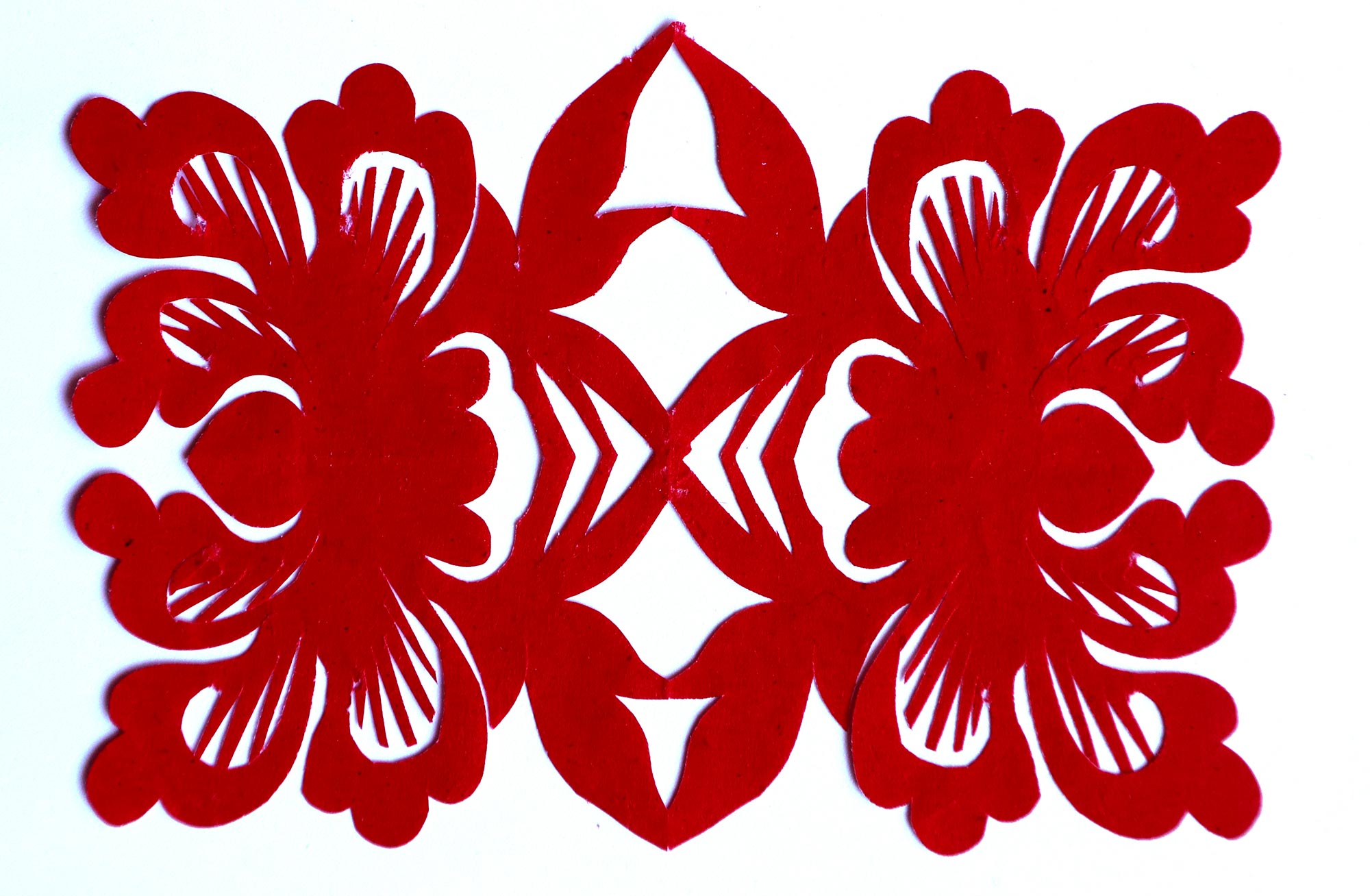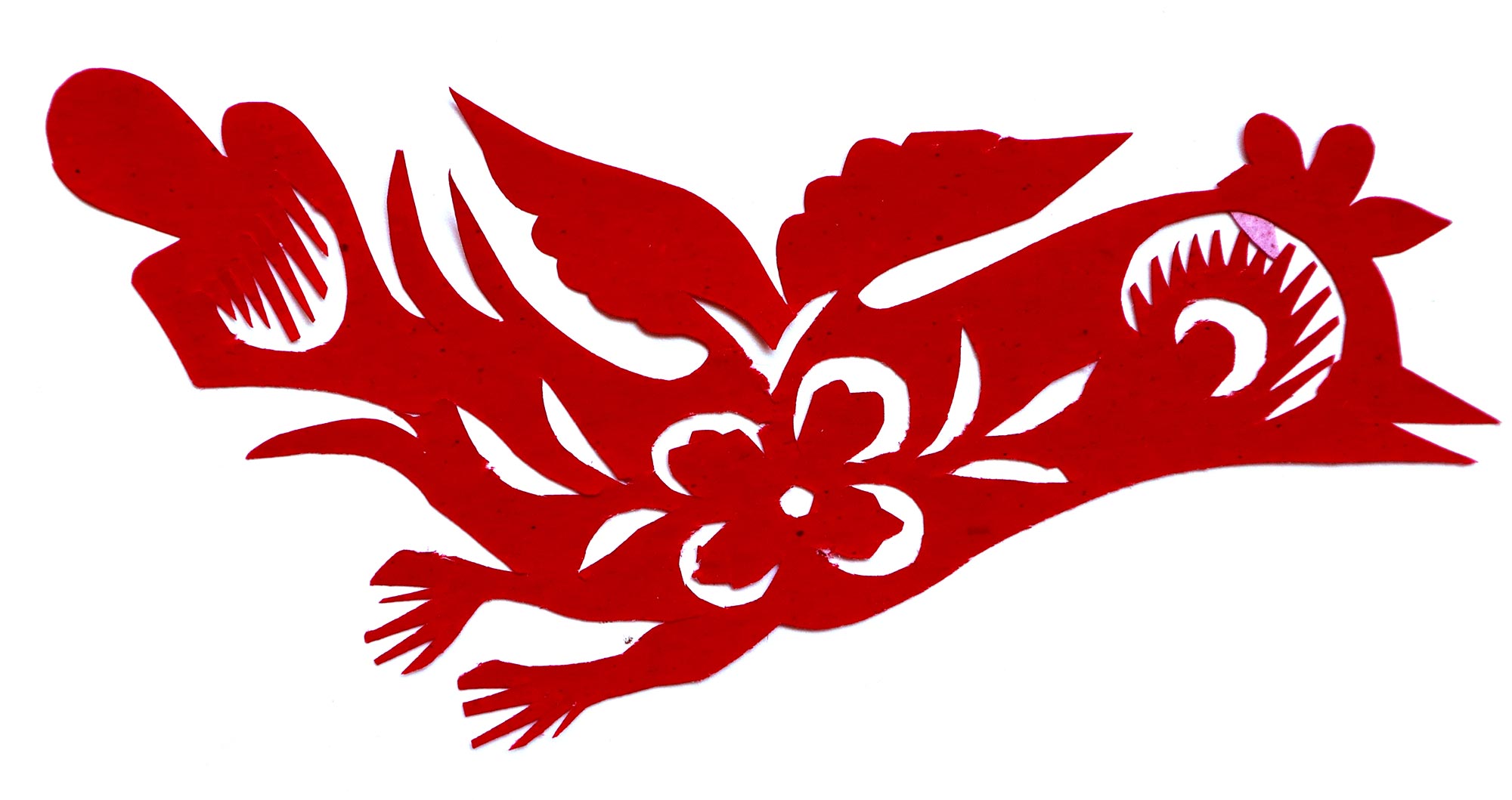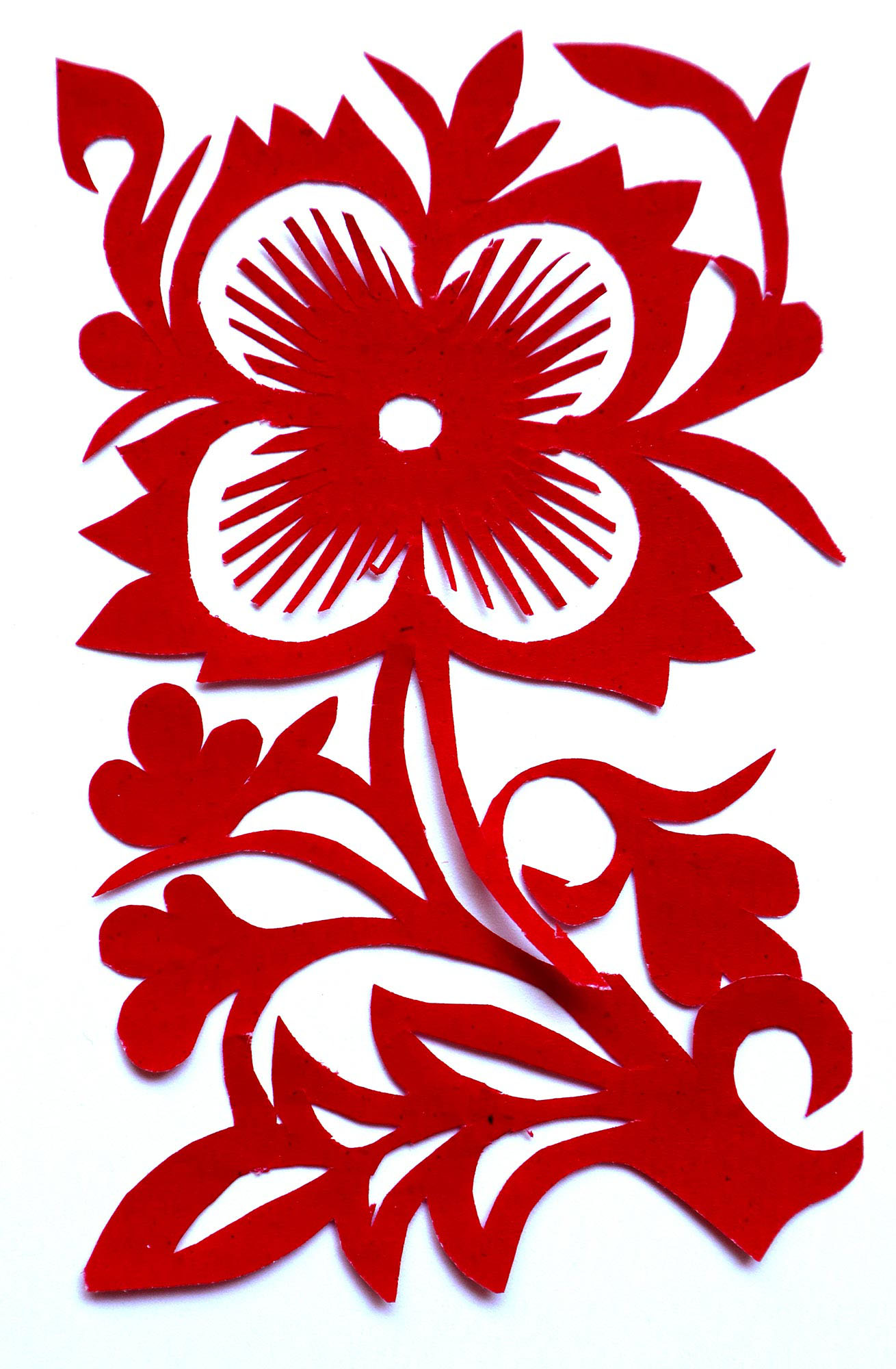 贺彩莲从小见母亲给村里人剪花,就跟上母亲学习。母亲剪花冒剪冒画,她也跟着冒剪冒画。母亲不剪花时,她就拿起剪刀冒剪,从没有拓过样子,小小年纪就学会了剪窗花。村里的女孩子,都来让她给剪花样画花样。上学时特别喜欢画画,经常受到老师的表扬。学剪纸主要从窗花开始,以花鸟动物为主,当时延川农村忌讳剪人物,所以也没有学。1988年,贺彩莲结婚,家里人都支持她剪花、唱歌,特别是婆婆在她剪花时就帮忙做家务,照看孩子。当姑娘时主要是过年剪花,那时没有纸,平常有一点红纸都舍不得用,只能在过年时间用。2001年,靳之林老师来到延川写生,靳老师让她剪了个动物,也启发她剪人物,再靳老师的鼓励下,她的剪纸创作就一直没有停止,创作了《纺织系列》《迎亲系列》《民歌系列》等。后来贺彩莲参加了延川县文化馆的剪纸创作培训班,延安市的剪纸培训班,对她的艺术修养有所提高,更加明确了自己的创作方向和艺术特色的坚持。这些年省市县镇上只要有剪纸活动,每次都参加,不管能不能获奖,她都是平常心。