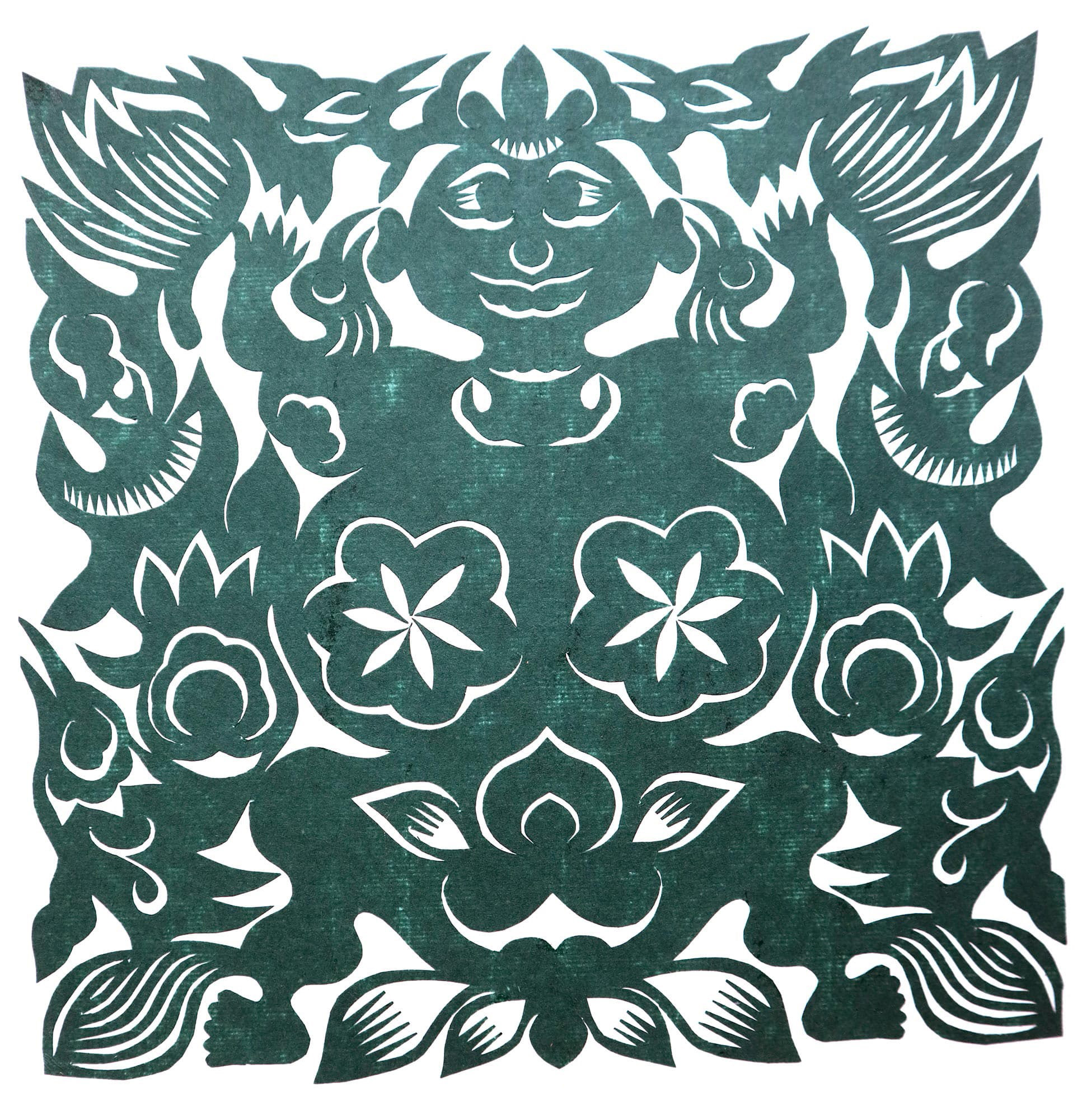 贺永玲6岁开始上学,一直上到大专毕业,大专学的旅游专业。上学期间最喜欢上美术课,美术作业每次都得优,常把她的作品作为范本给同学们看。她从小喜欢剪纸,也拓着别人的窗花剪过,但真正学剪纸是初中毕业之后开始的。17岁时尝试剪一些小动物。冯山云老师是她的启蒙老师,是当地的大名人,对剪纸有很深的研究。贺永玲的父母非常支持女儿学剪纸,只要需要材料和工具,父母都给她买。过年用的窗花都是她剪的,内容多是简单的小动物。有村上结婚的人家请她剪过上头馍馍上的喜花和双喜字。1995年,延川县成立了布堆画协会,她跟着冯山云老师开始做学布堆画。在冯老师的启发下创作了一幅为《鱼戏莲》的布堆画,得到好评。之后文化馆凡是举办剪纸布和堆画创作培训班,贺永玲都积极参加。