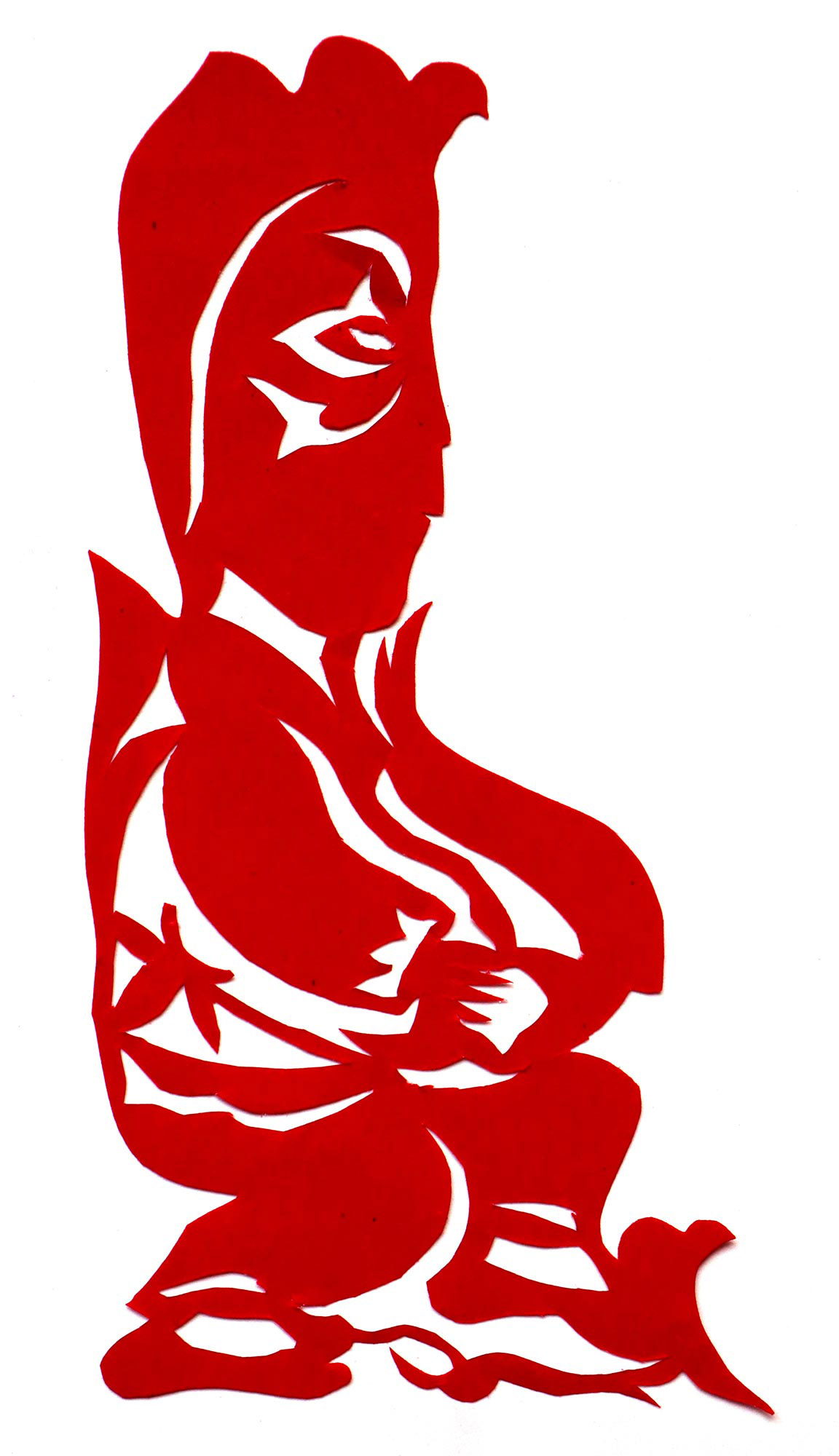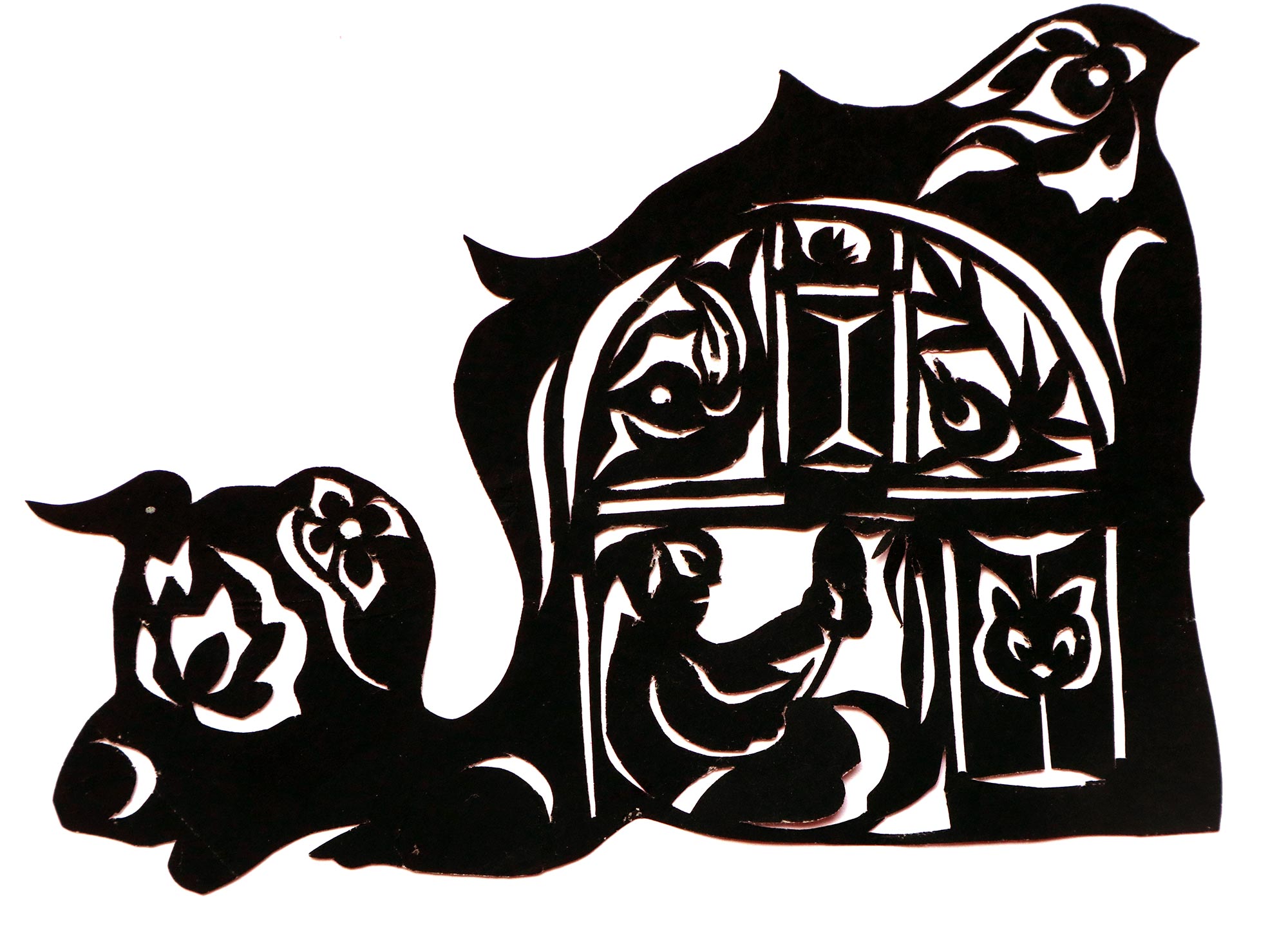 刘芳小时候就爱剪窗花,上小学三四年级时用祖母的窗花样,在油灯下熏制替样,然后拓着样子剪出。祖母最擅长剪动物,有老虎、蛇盘兔、狮子、鸡等。祖母剪个啥,她就跟着剪个啥。1998年,由于喜爱美术就考入山西省隰县师范美术教育专业,毕业后被分配到文安驿九年制学校。工作一年后她又脱产在陕西省教育学院进修美术教育,主要研究西方美术和传统美术,通过学习专业美术后,反过来再创作民间剪纸,在黑白处理节奏上就更为主动。2007年,刘芳结婚,丈夫郝晓龙,延川县防火办干部,本科学历,爱好文学,对她的剪纸非常支持,还经常一起讨论分析专业美术和民间美术的特点。 2014年,延川县文化馆举办剪纸培训班,刘芳才真正地走进了剪纸艺术的殿堂。由于有绘画基础,再经过冯山云老师、刘洁琼老师的指导,一下就进入到民间美术的创作之中。再是学校把民间美术课列为美术课中的主课,为了教学也对剪纸进行研究。婚后生有两个女儿,娃小的时候剪的少,现在除上班教学剪纸外,在家大部分时间都用在了剪纸上,创作剪纸大小有500多幅,其中有6幅参加过全国和省级展览,《黄河人家》被当代艺术网选用并获优秀奖。《窗花》在2017年中国西部剪纸布堆画原创邀请展获优秀奖。