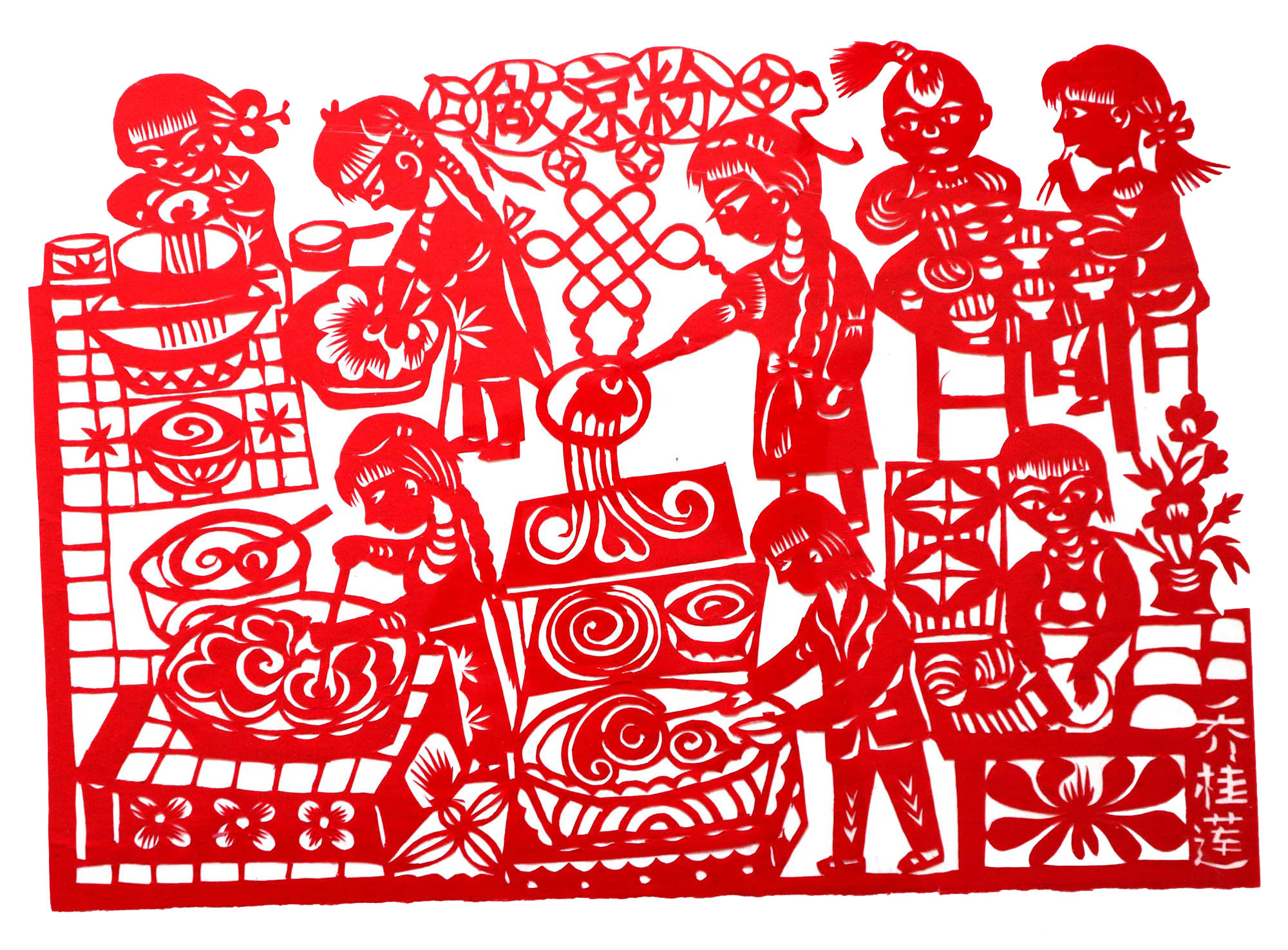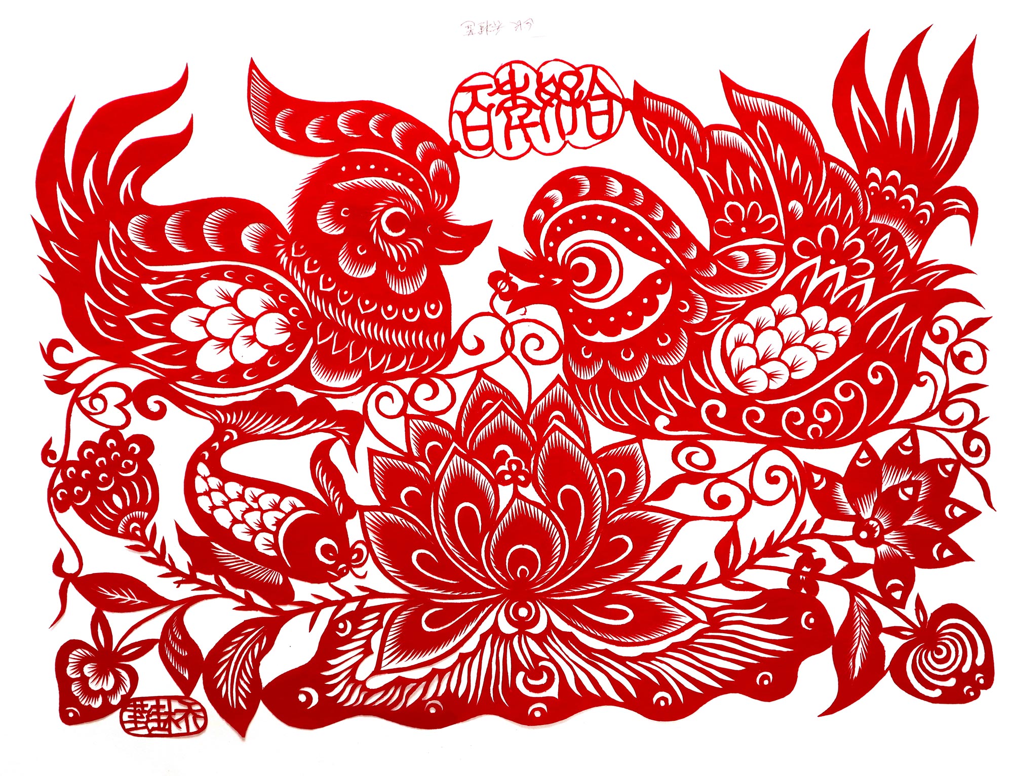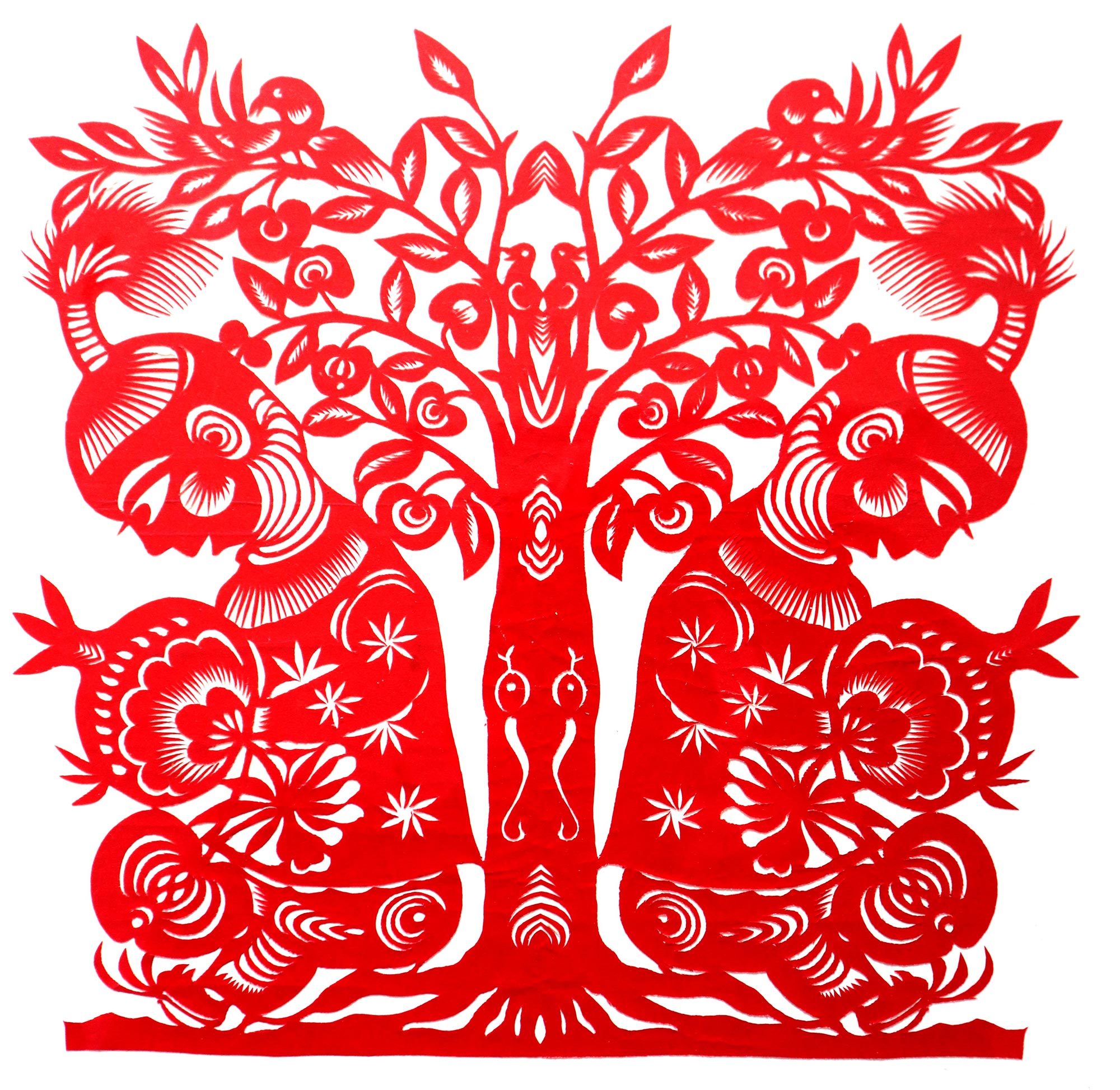 乔桂莲11岁开始做鞋垫,父亲给她在鞋垫上画个花样子,她就绣成了,从此就爱上了画花,也爱上了剪纸。小时候母亲给她熏些窗花样子,让拓着样子剪,样子都是传统的老虎、狮子、花草。拓样子剪窗花一直到初中。家里每年都要贴窗花,窗花大多是她拓样子剪出来的。2000年后,延长县文化馆馆长康惠让她参加西安的经洽会,要她冒剪,从这年起她才开始大胆的冒剪。父亲喜爱书法、绘画,常教她画画,父亲也爱剪纸,也剪一点小窗花。母亲也喜欢剪纸,母亲剪窗花时她就跟着剪。剪窗花多在腊月天,那时学校放寒假,冬天也没有农活,就坐在炕上开始剪窗花。