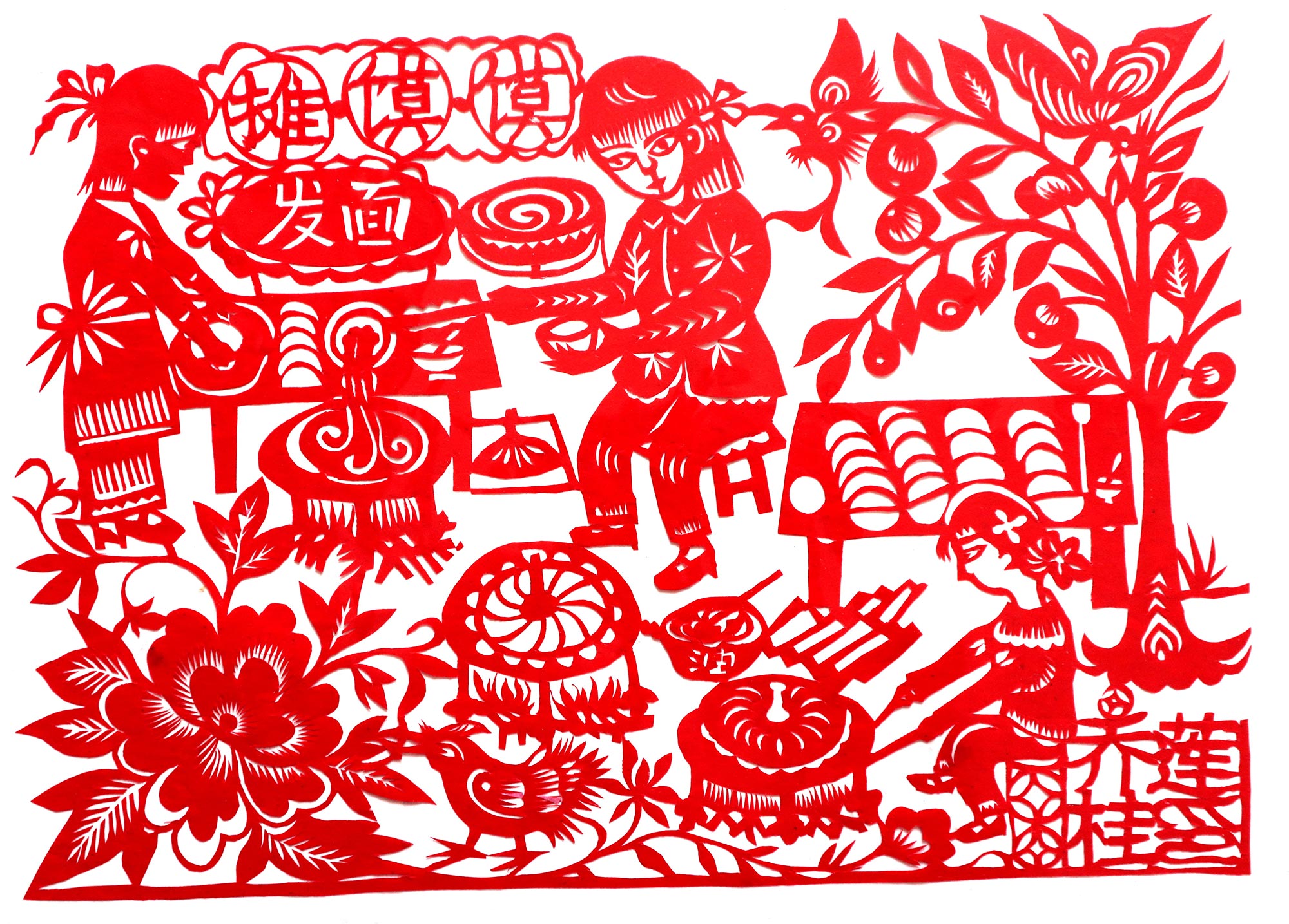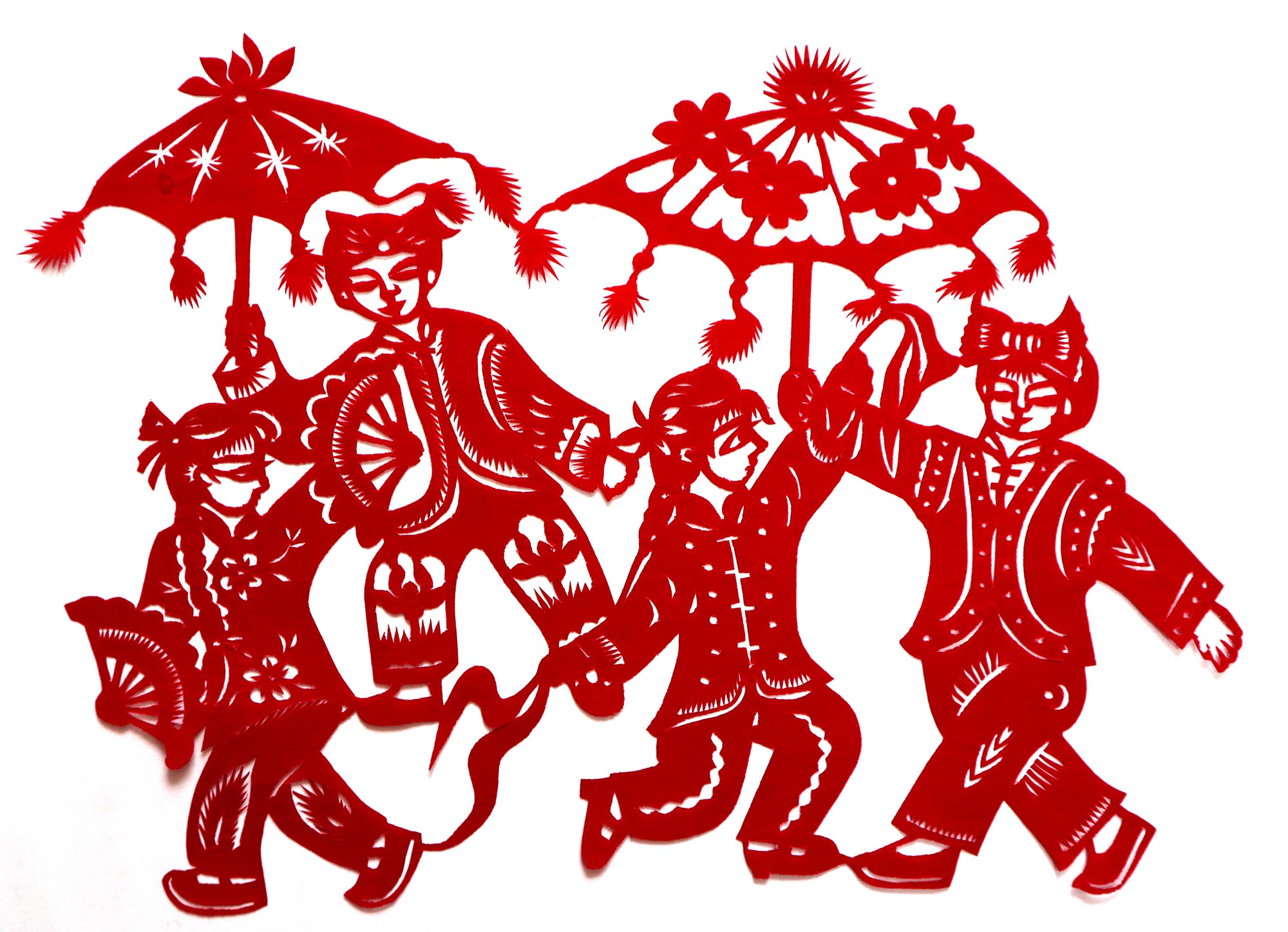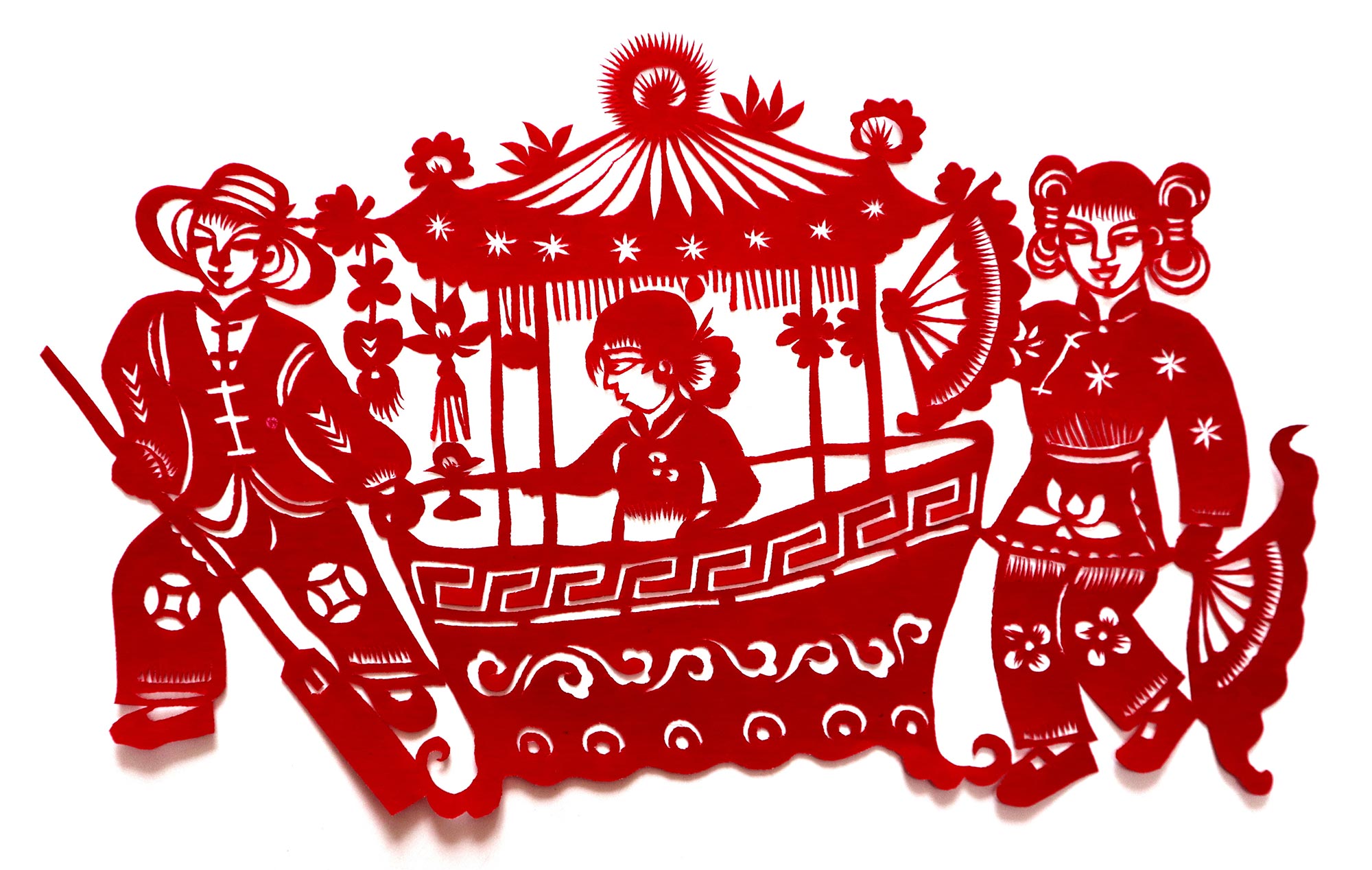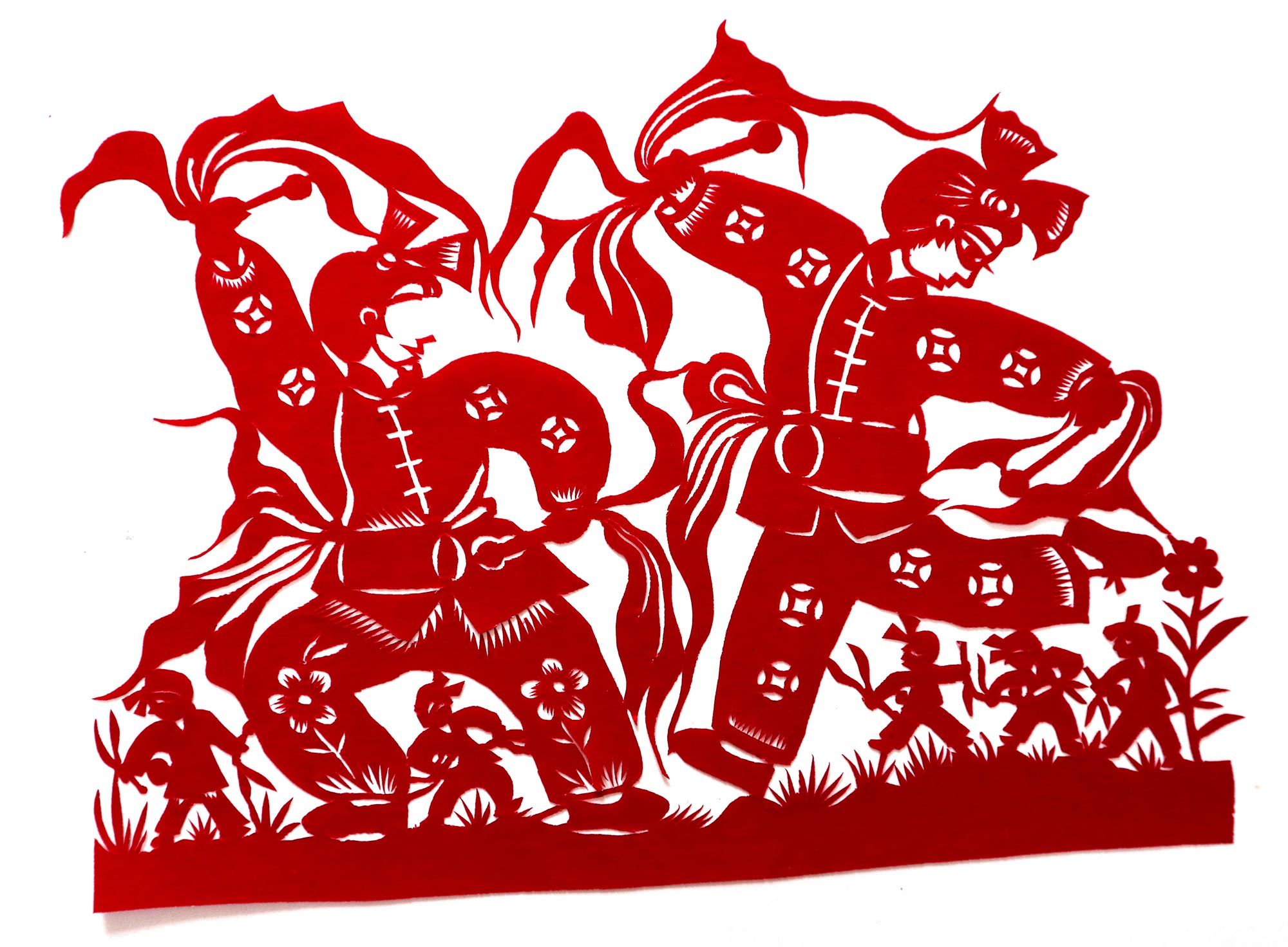 乔桂莲11岁开始做鞋垫,父亲给她在鞋垫上画个花样子,她就绣成了,从此就爱上了画花,也爱上了剪纸。小时候母亲给她熏些窗花样子,让拓着样子剪,样子都是传统的老虎、狮子、花草。拓样子剪窗花一直到初中。家里每年都要贴窗花,窗花大多是她拓样子剪出来的。2000年后,延长县文化馆馆长康惠让她参加西安的经洽会,要她冒剪,从这年起她才开始大胆的冒剪。父亲喜爱书法、绘画,常教她画画,父亲也爱剪纸,也剪一点小窗花。母亲也喜欢剪纸,母亲剪窗花时她就跟着剪。剪窗花多在腊月天,那时学校放寒假,冬天也没有农活,就坐在炕上开始剪窗花。