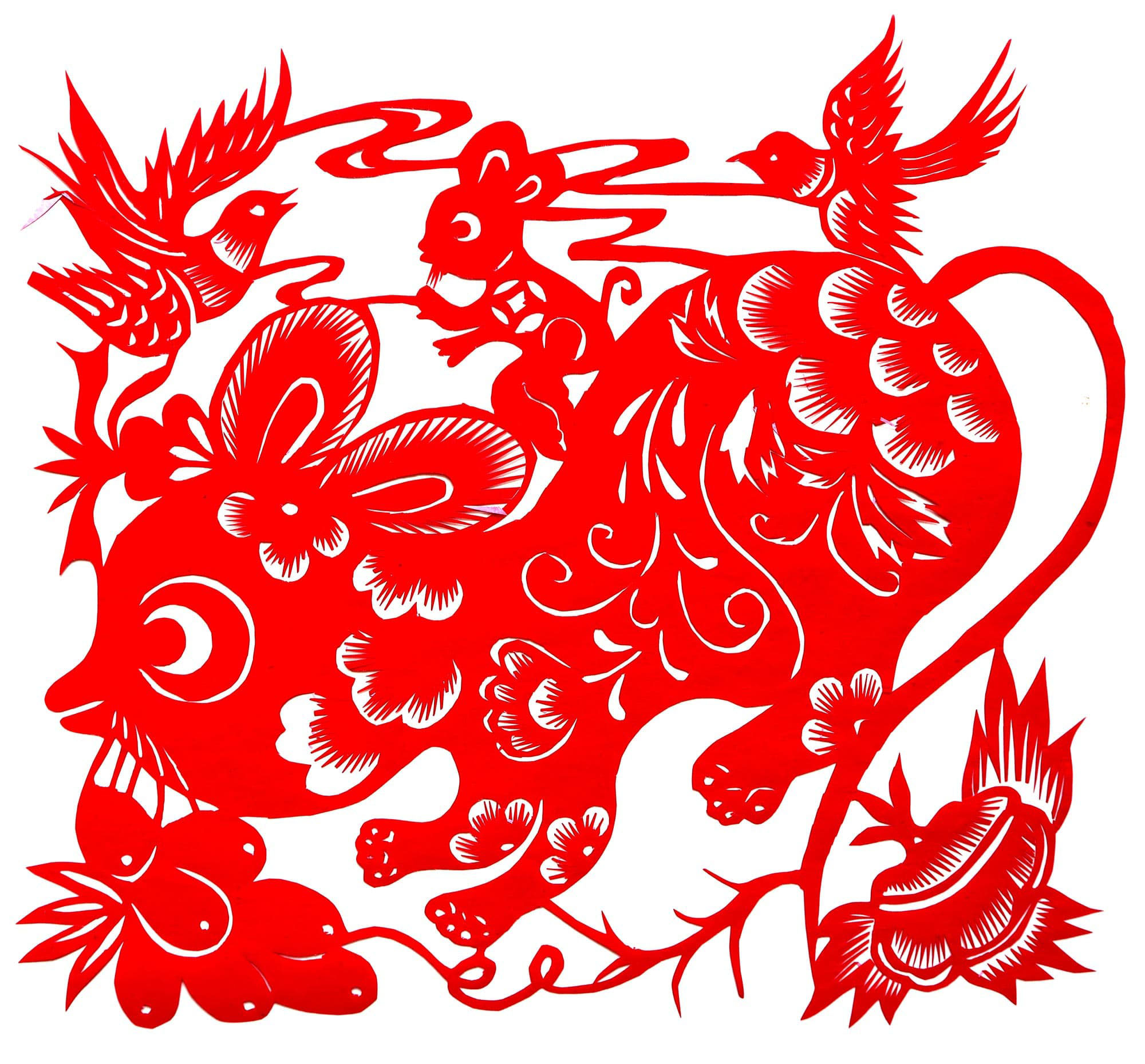 上小学时她就喜欢剪纸,母亲在山上干农活时,她放学回家进不了门,就一个人坐在碾子旁学着剪剪花,没有纸就把写过作业本的纸撕下来剪,开始剪一个简单的蝴蝶、花花,后来用铅笔画好后再剪出来。她平时就注意书包上的纹样,被面上的图案,过年时关注村上家家户户贴的窗花,看得多了,一般的纹样大的造型就记下来,剪的时候就能画出来。学剪纸没有拓过别的样子,都是自己冒画冒剪。剪的内容多是花草、动物。上小学时在学校也剪,村上的人都知道她会剪花,结婚过年,都拿着纸让她给剪花,她利用课余时间和晚上给剪,剪完后赶紧给人家送去,人家看了她的窗花,都说剪的好,听见大人们的表扬,心里可高兴了。上中师后就减的少了,毕业后在农村小学任教,任教期间只是过年时剪一些窗花。谁结婚给谁剪一些喜花,学校放假时把自己剪的窗花送给学生们,让他们过年贴在窗子上。