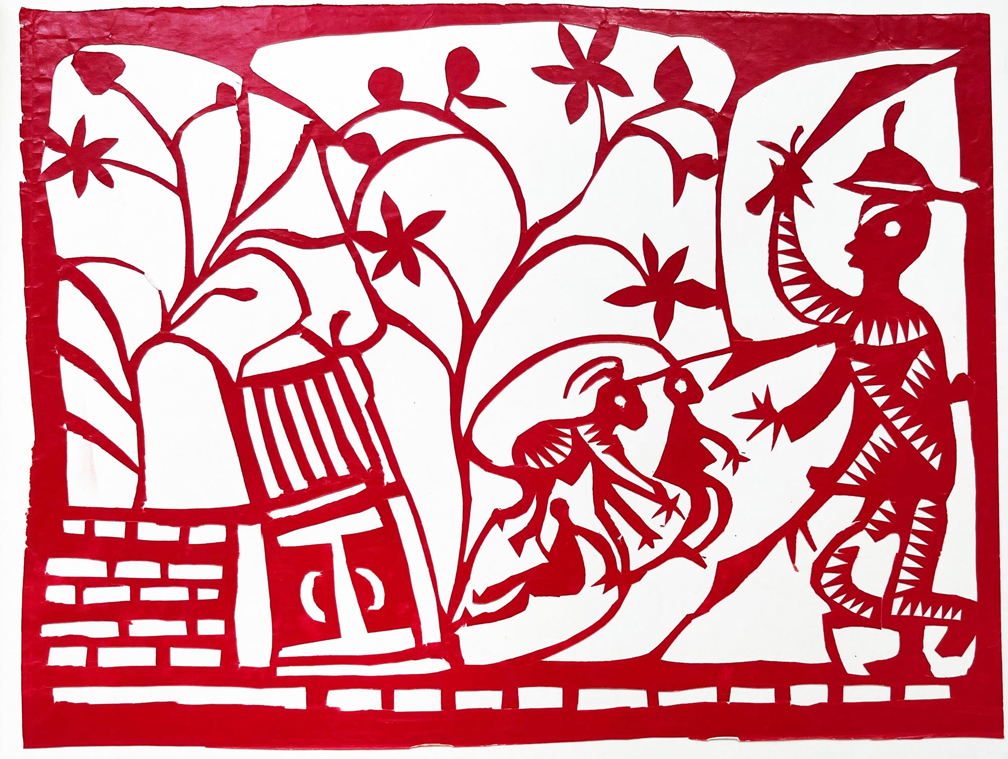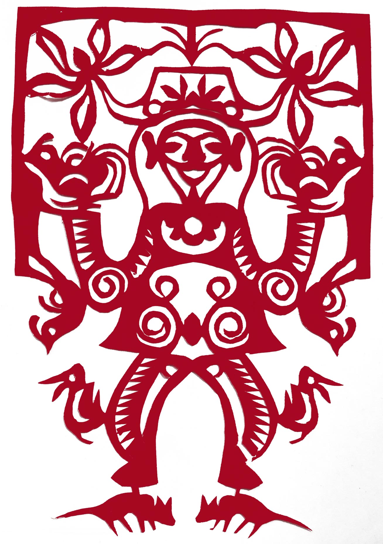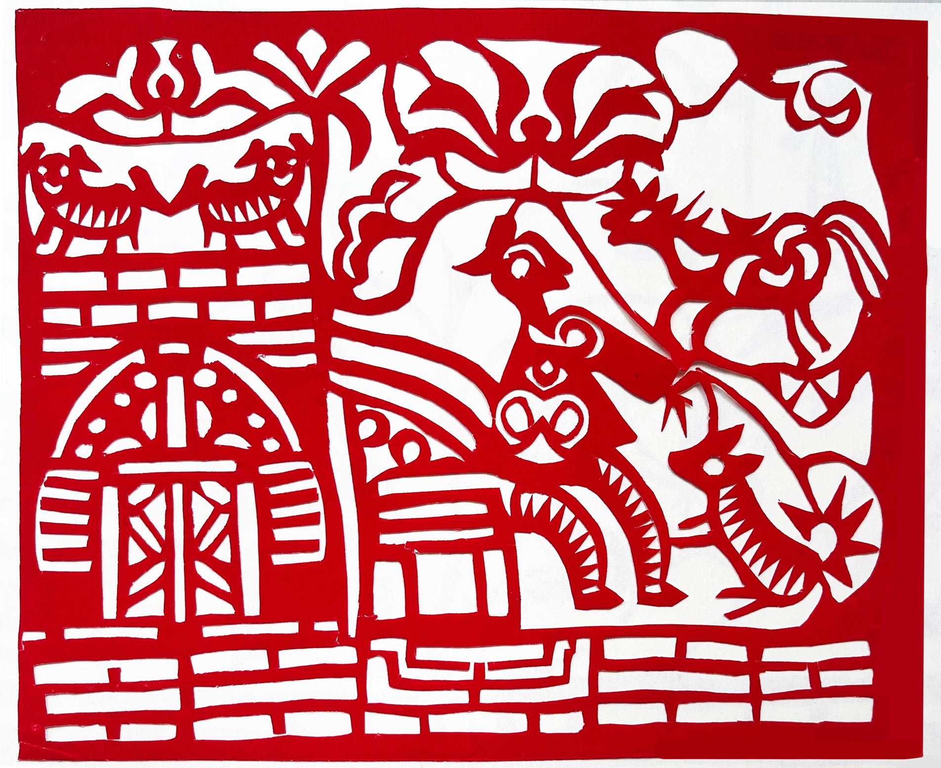 她的作品粗犷豪放,古朴典雅,是山西唯一能代表汉代画像石风格的一位剪纸大师。