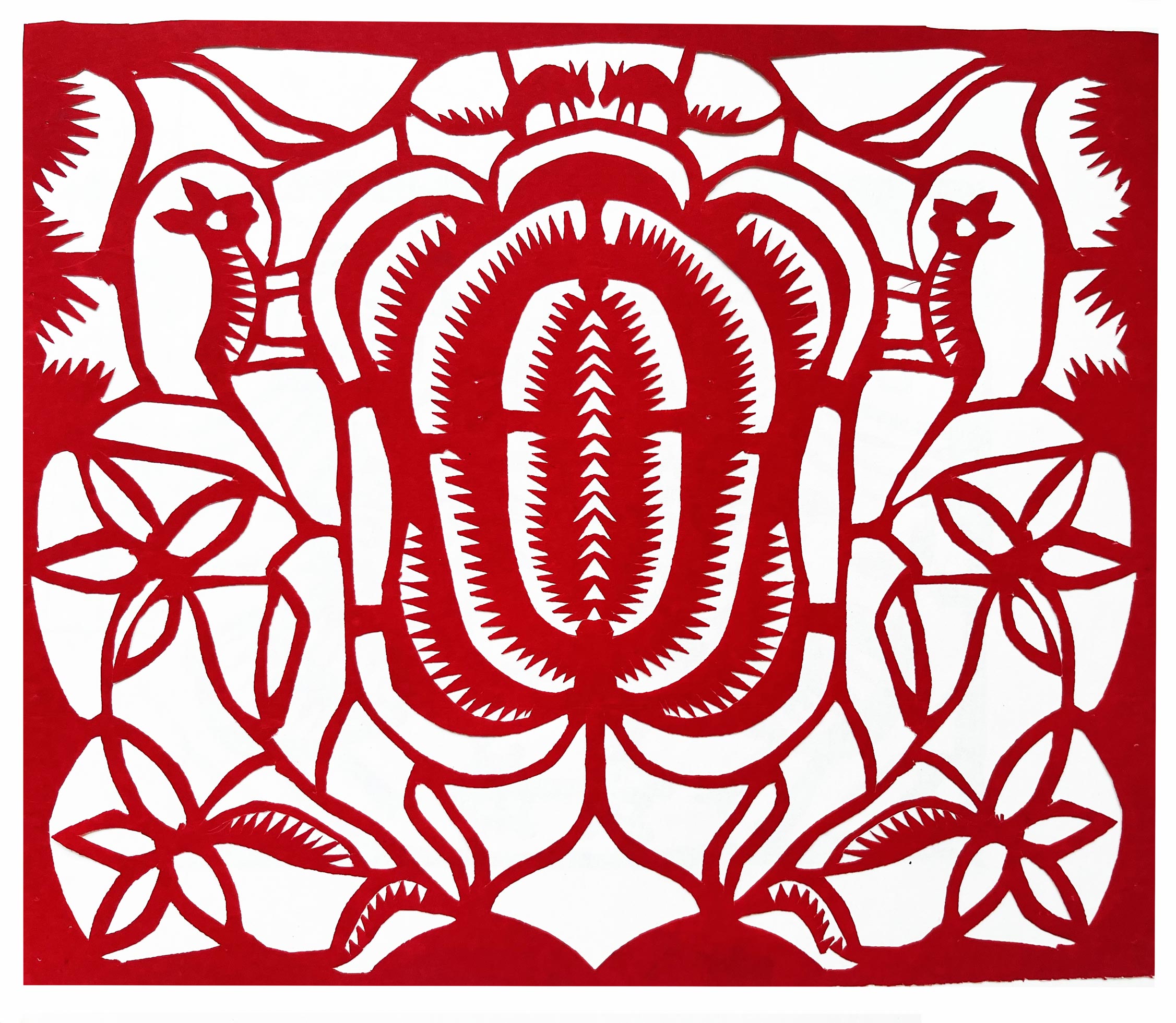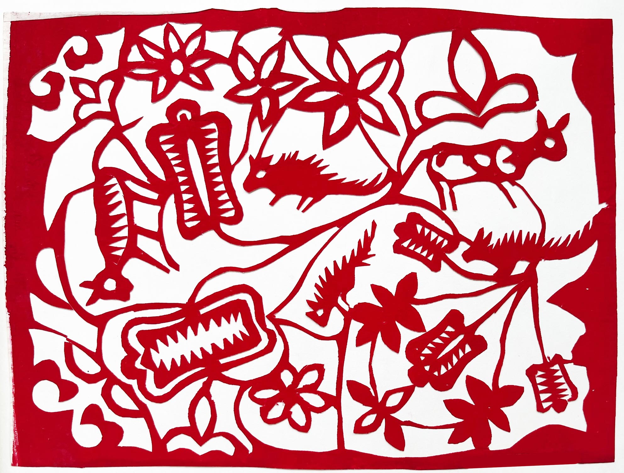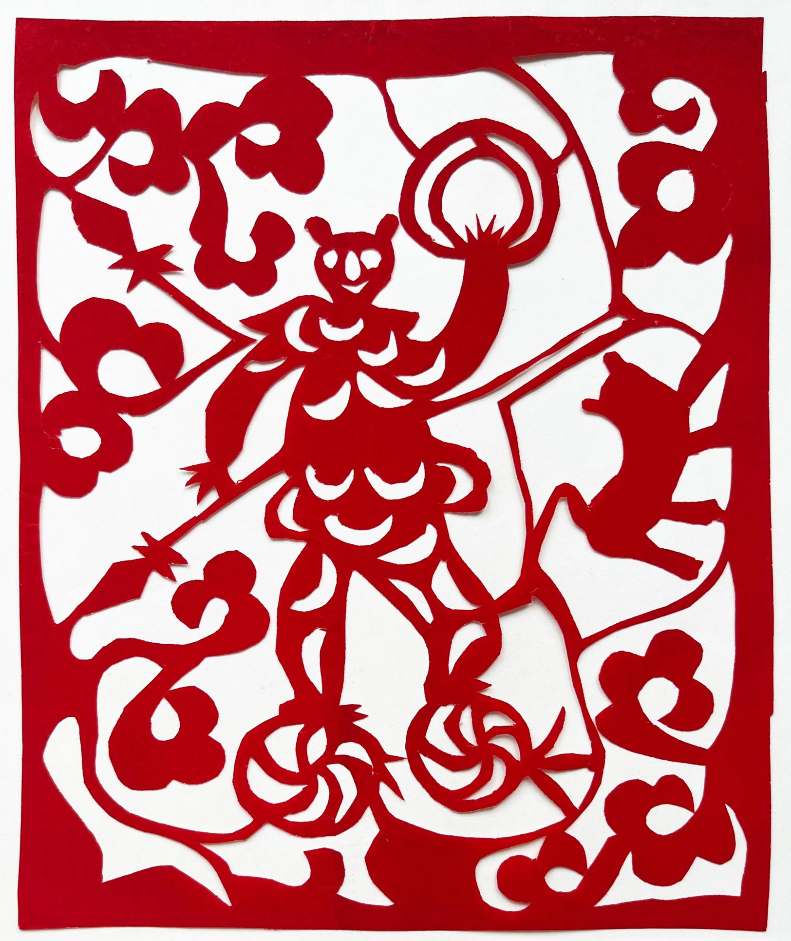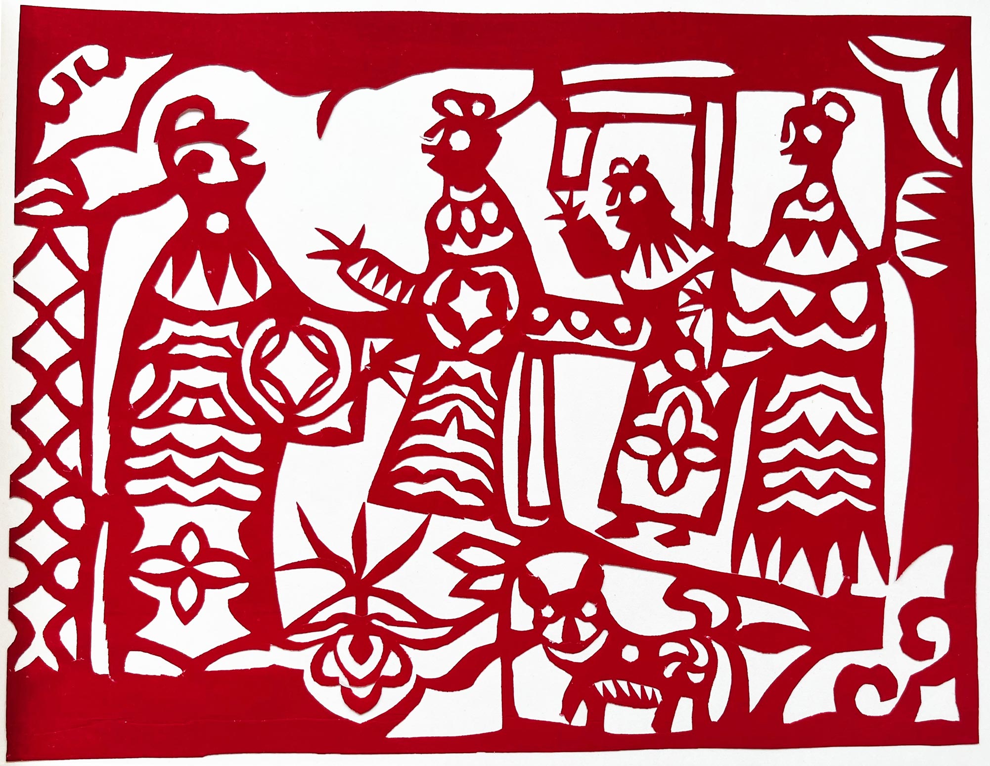 她的作品粗犷豪放,古朴典雅,是山西唯一能代表汉代画像石风格的一位剪纸大师。