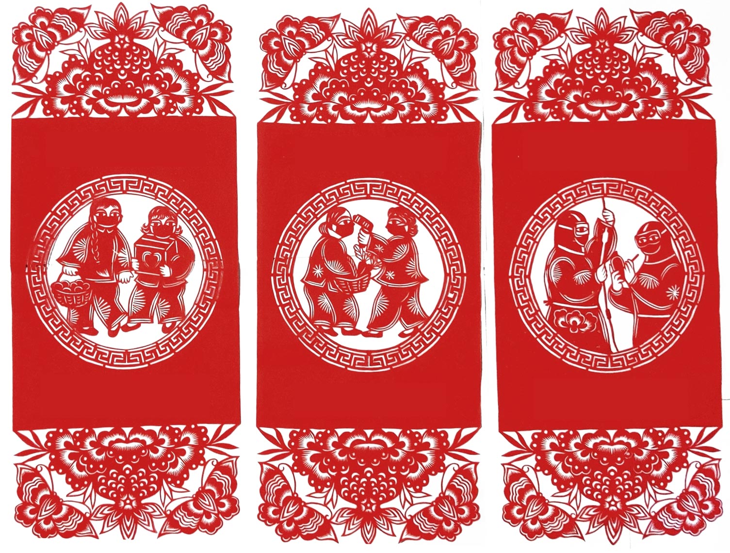 突出艺术特色:韦东梅剪纸作品粗犷质朴、拙中见巧,造型夸张、简练,寓意深刻、内涵丰富