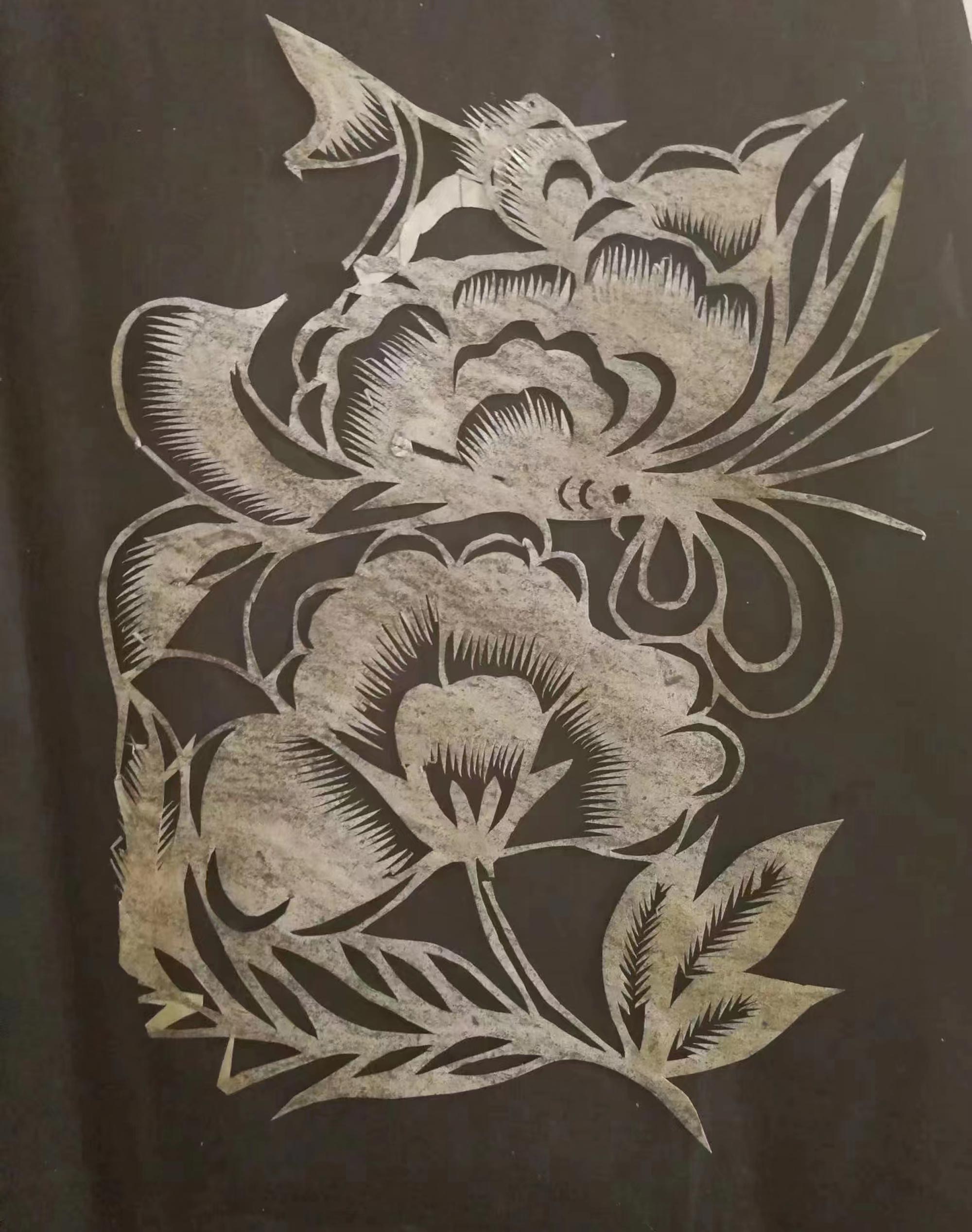 1958年随丈夫走西口来到了包头,前后一共生下了三个儿子,两个女儿,是远近闻名心灵手巧的好媳妇。因为孩子多,家里只有丈夫一个人工作,还要供五个孩子读书,所以经常除做家务后,还要给左邻右舍帮忙做衣服、缝被子,给结婚的、过满月的、剪喜花,绣虎头帽,做虎头绣花鞋……为了贴补家用,每逢过年的时候,白天走街串巷卖窗花,晚上熬夜剪各种各样的窗花,天上飞的,地下窜的,从来都不用画稿,拿起来就能剪出漂亮的窗花。每天剪窗花累得感觉眼珠都快掉出来了,为了挣这点儿小钱。真是吃尽了苦头。后来窗户没有了,随着年龄的增长,眼睛也看不见了,就开始剪一些结婚用的大团花,那时候家里也没有照相机,遗憾没有留下太多的照片。
