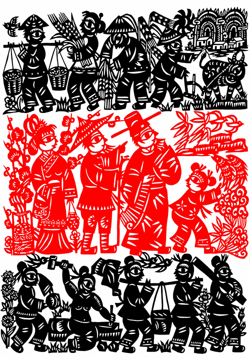 何贤顺,男,1970年生,汉族,出生于在浙江省台州临海市岭根乡呈岐村的一户农民家庭,祖上历来讲究“耕读传家”。1988年师从台州市海洋剪纸非遗传承人郭献忠老师学习剪纸,平时喜欢自学国画和油画,钻研民间艺术,由于现代教育与都市化生活,造就了恣肆的性格,剪纸造型简约概括、构图显得大气豪放;作品较大型,为适应篇幅,重视剪纸的纹饰上下功夫;善于表现浙江的风土人情,以民俗类作品为多。