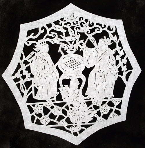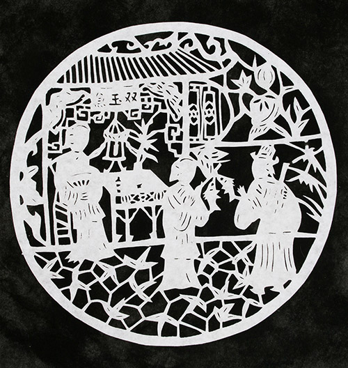 1982年—1985年.跟二姨张宝钗学剪纸,掌握浦江剪纸技艺;
