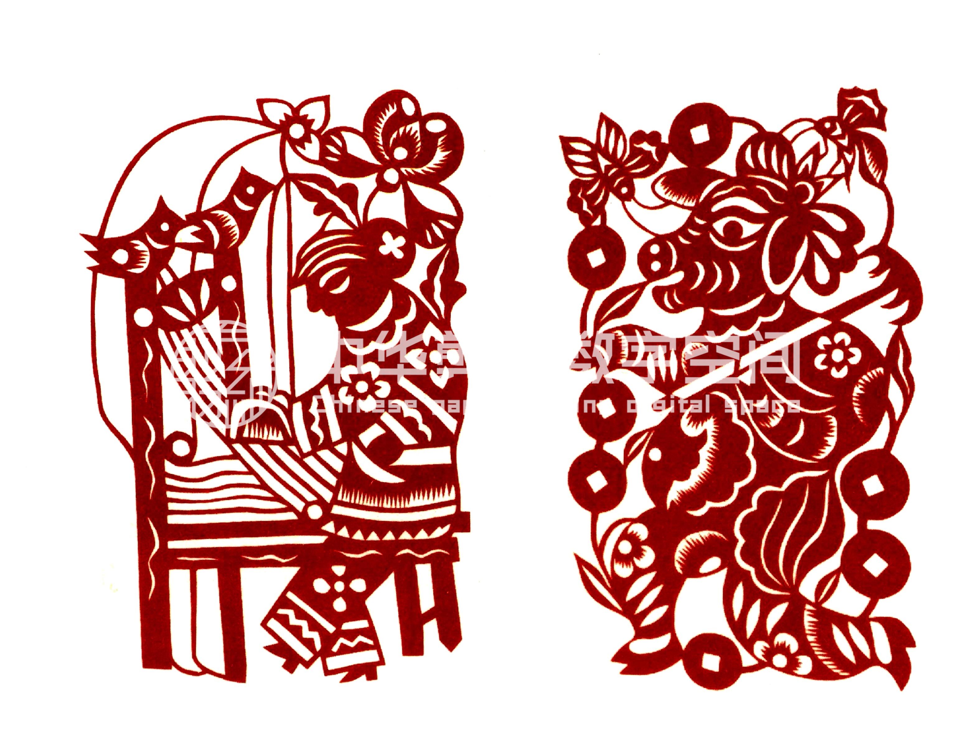 马秀英十二岁时已会剪纸,每年春节,她同母亲一起把窗子糊成八卦对花窗,把碗架用云子花,对子花打扮一新,还把筷篓用红花绿叶的牡丹进行装饰。当时村上妇女有相互比巧的习俗。初一,全村妇女都串门看花窗,因她家的花窗和碗架云子花儿剪的精巧美观,色彩和谐搭眼,变化多样,全村人都争着来看。过十五元霄节,糊的兔娃灯、鱼灯、八卦灯,上边用剪纸装饰,挂在大门外,路过的村民无不驻足观看。母亲忙时,她便待在二妈家让二妈教她剪绣花样,剪动物。13岁那年,洛川下连阴雨一直不晴,她看见二妈剪了一个“扫天媳妇”挂在院子里,口中还不停的念叨,“扫天呢,扫地呢,扫天上的雾气呢”。祈求老天爷赶快放晴。她回家也剪了个“扫天媳妇”挂在院子里。一次村上人请二妈去给娃禳病,她也跟上去了。见二妈剪了个“红纸人人”压在了娃娃的炕席底下,嘴还不停地念叨,她回家也剪了个“红纸人人”压在了自己的炕席下,母亲发现后,赶紧把“红纸人人”送到十字路口烧掉。后来她才知道,“红纸人人”叫禳病娃娃,没事不可乱剪,否则会给自身带来灾祸。